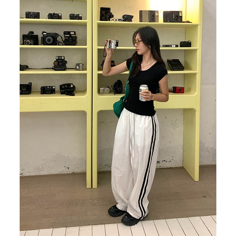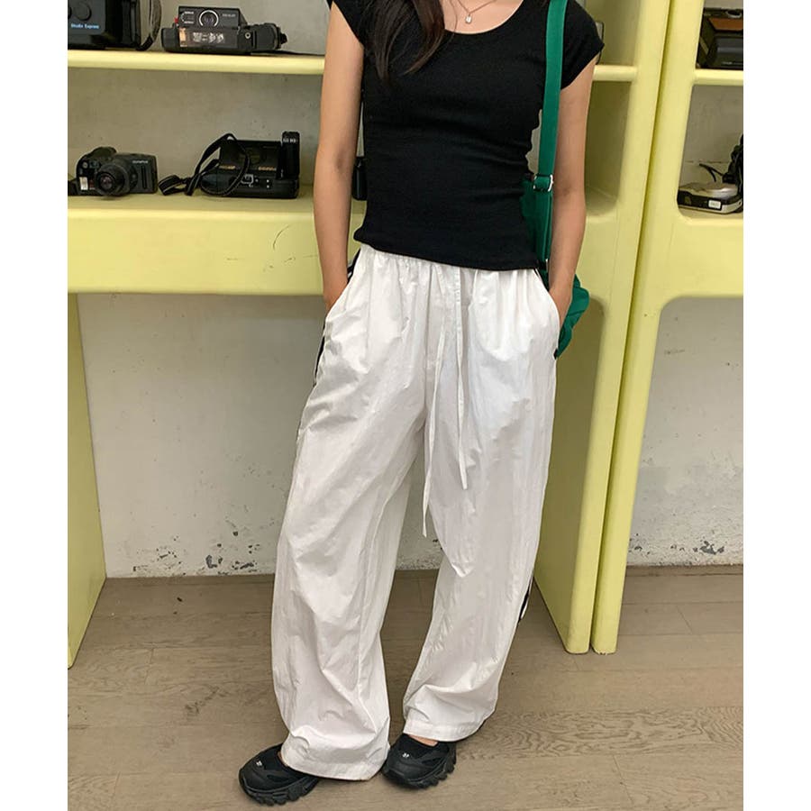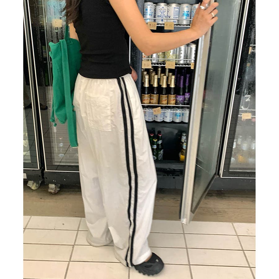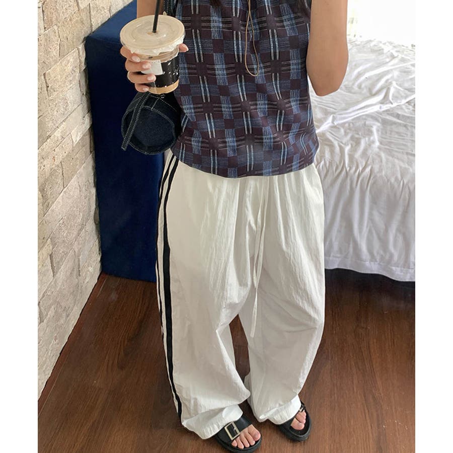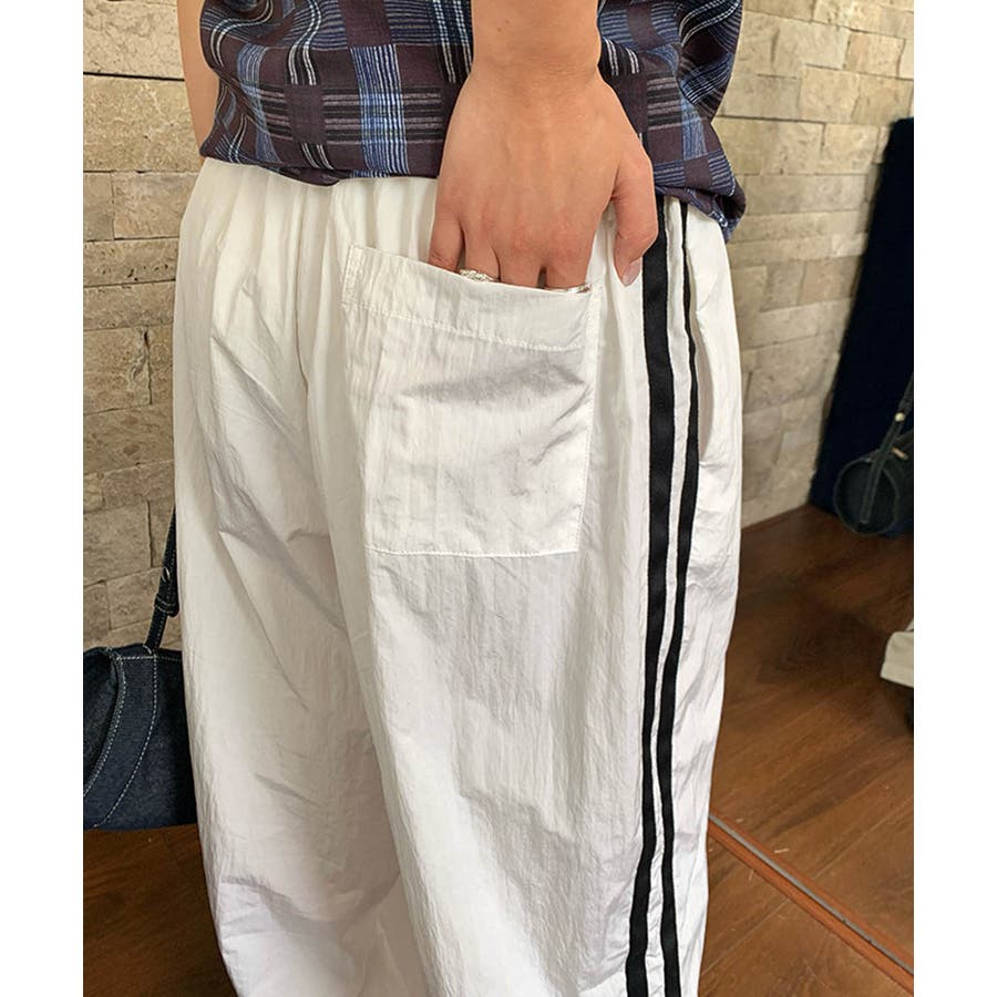 着丈:101cm ウエスト(総ゴム仕様):36-50㎝ ヒップ:116㎝ 裾幅:27.5㎝ 股上:34.6㎝