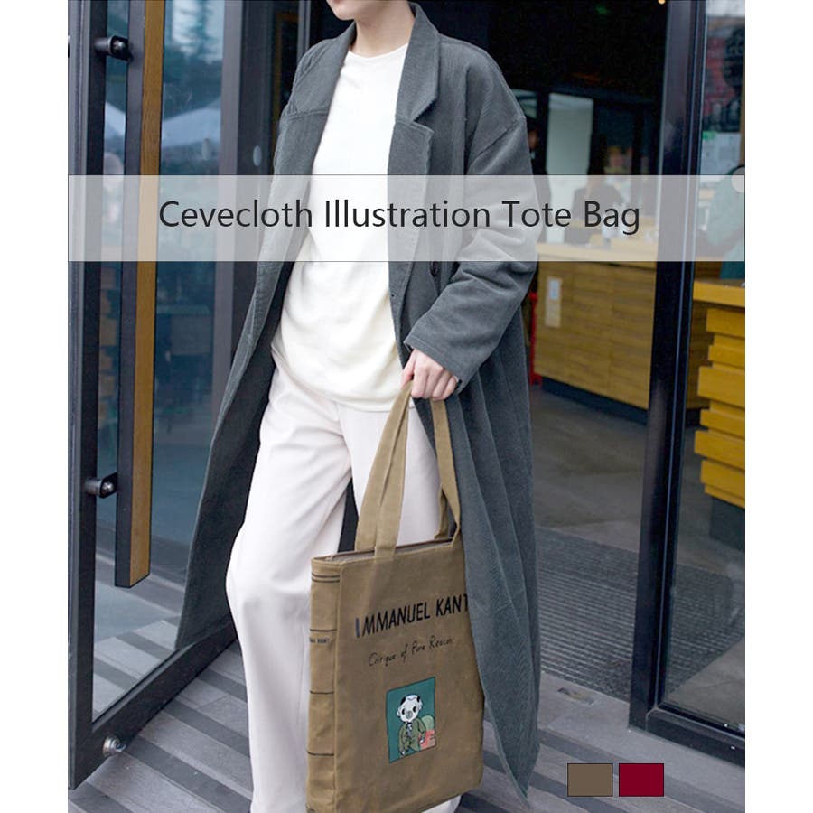 ワックス撥水加工コットン地ブックイラストトート韓国ファッションレディース