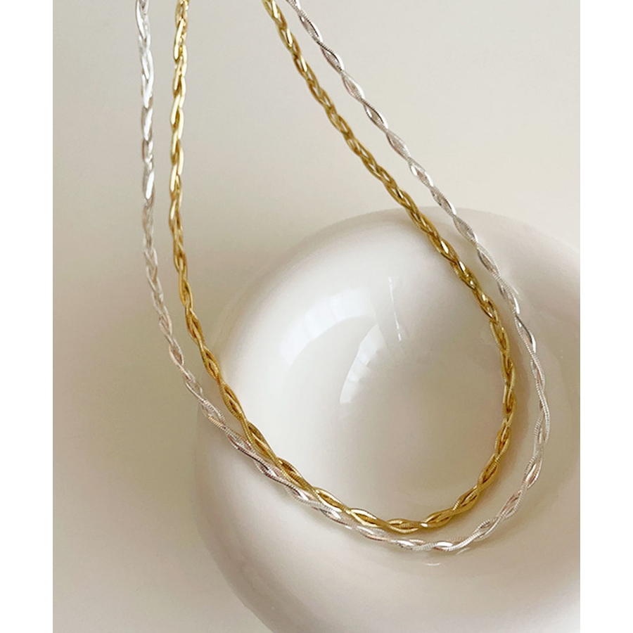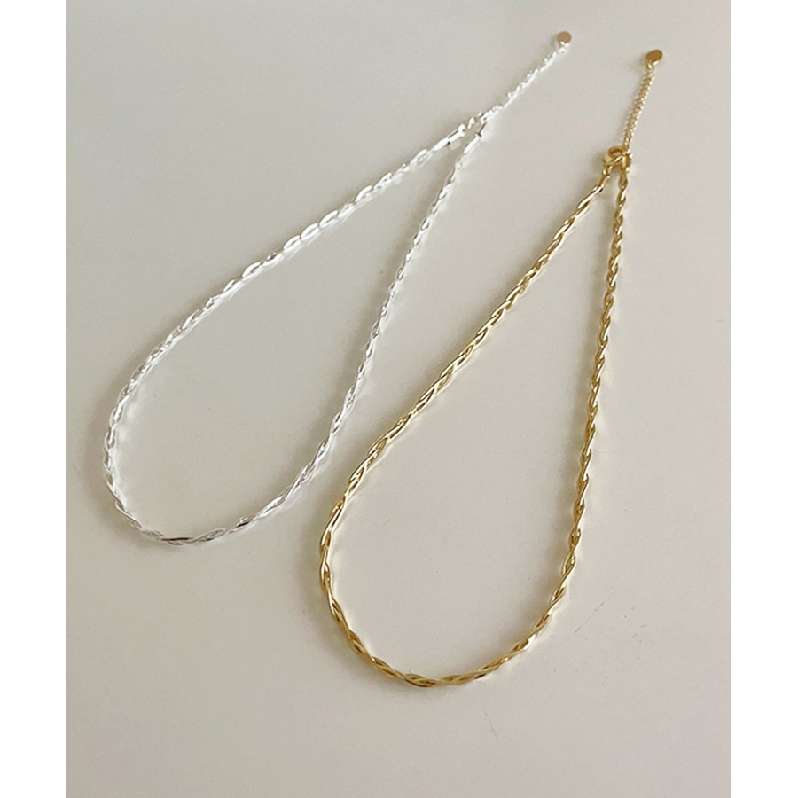 コーディネートに華やぎを添えてくれる、変形チェーンを使用したネックレス。Tシャツやブラウスなど肌の露出が増えてくる季節に、アクセサリーの華奢さが際立ち、女性らしさを引き立ててくれるデザイン。注目度の高まっているツイストデザインや、重ね付けのしやすさも魅力。