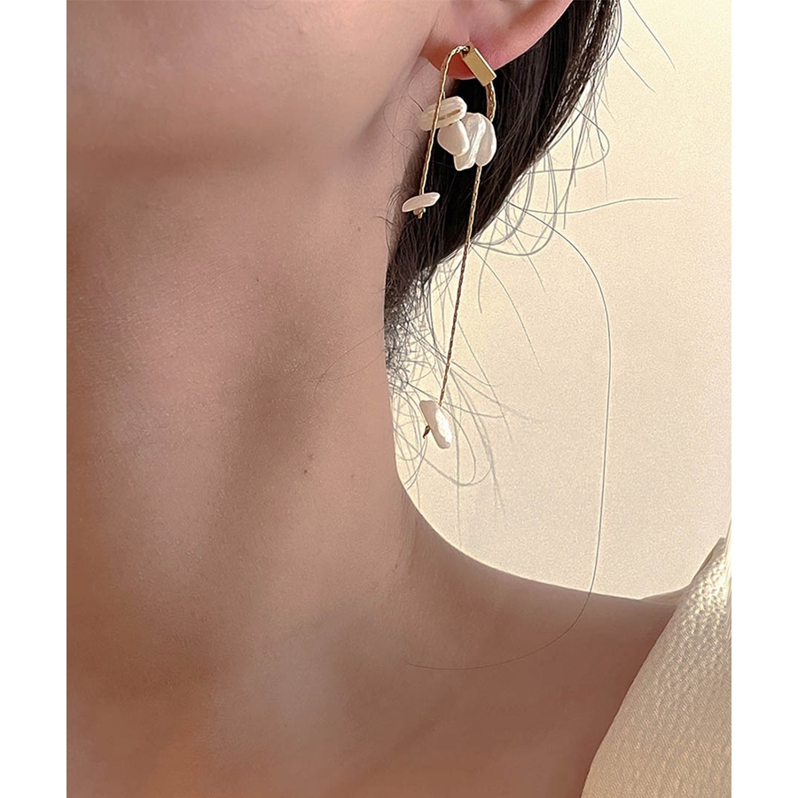 「フリル」という形状自体が、柔らかさとフェミニンさを兼ね備えており、耳元でひらりと揺れることで女性らしさが際立ちます。