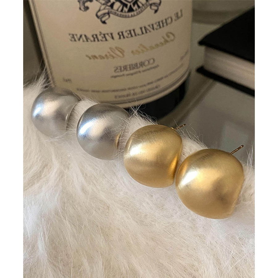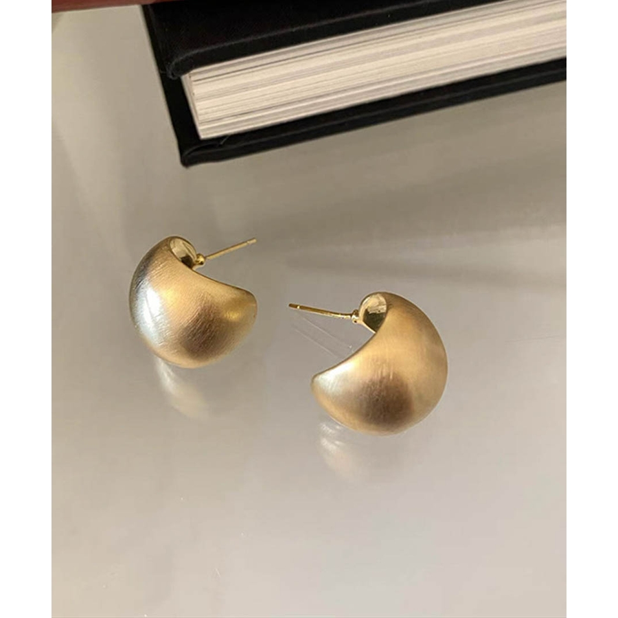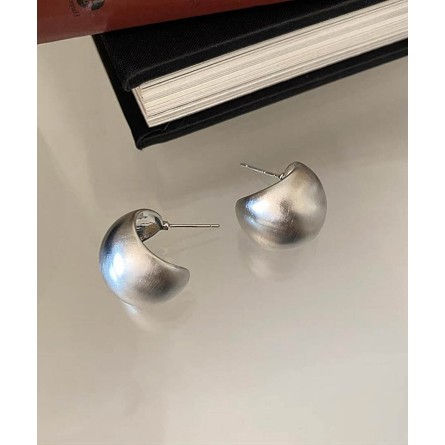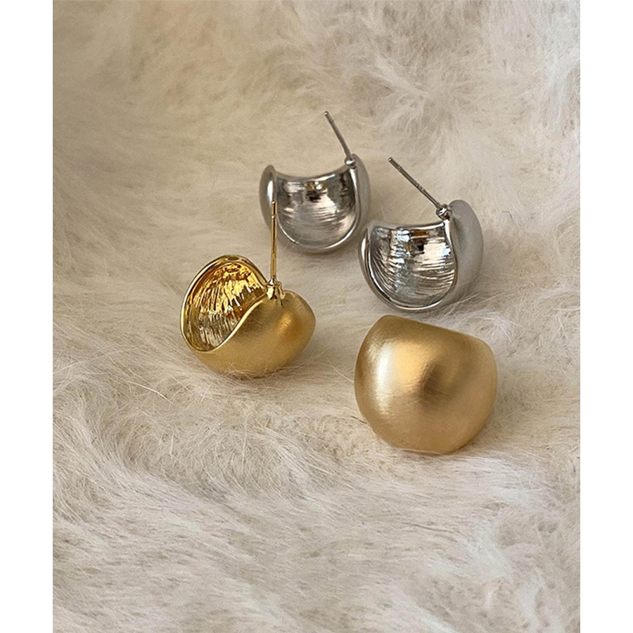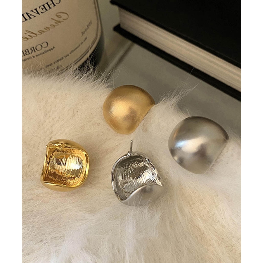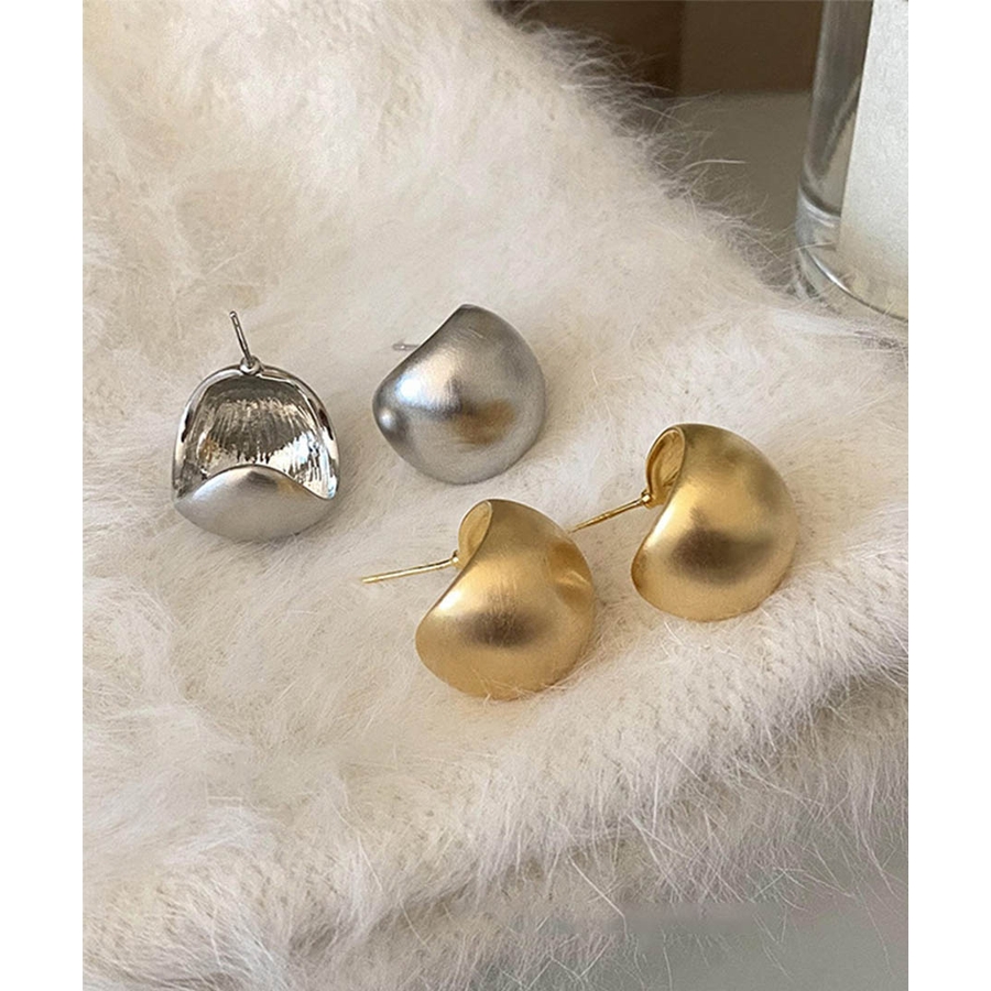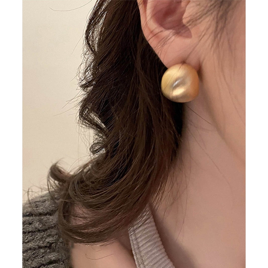 主張しすぎず、流れるようなラインとマルっぽいデザインのマット感のバランスが可愛いイヤリング。 ※空気に触れることで黒色に変化する場合がございます。