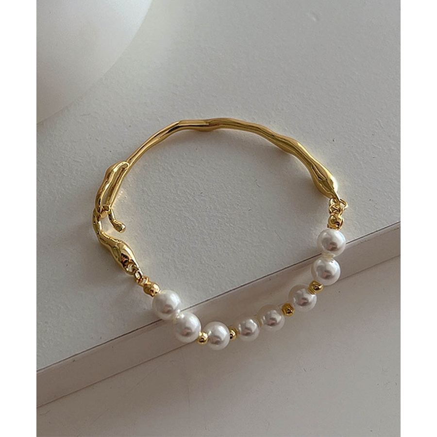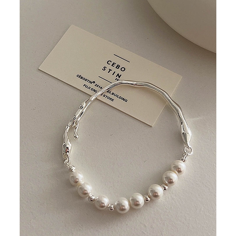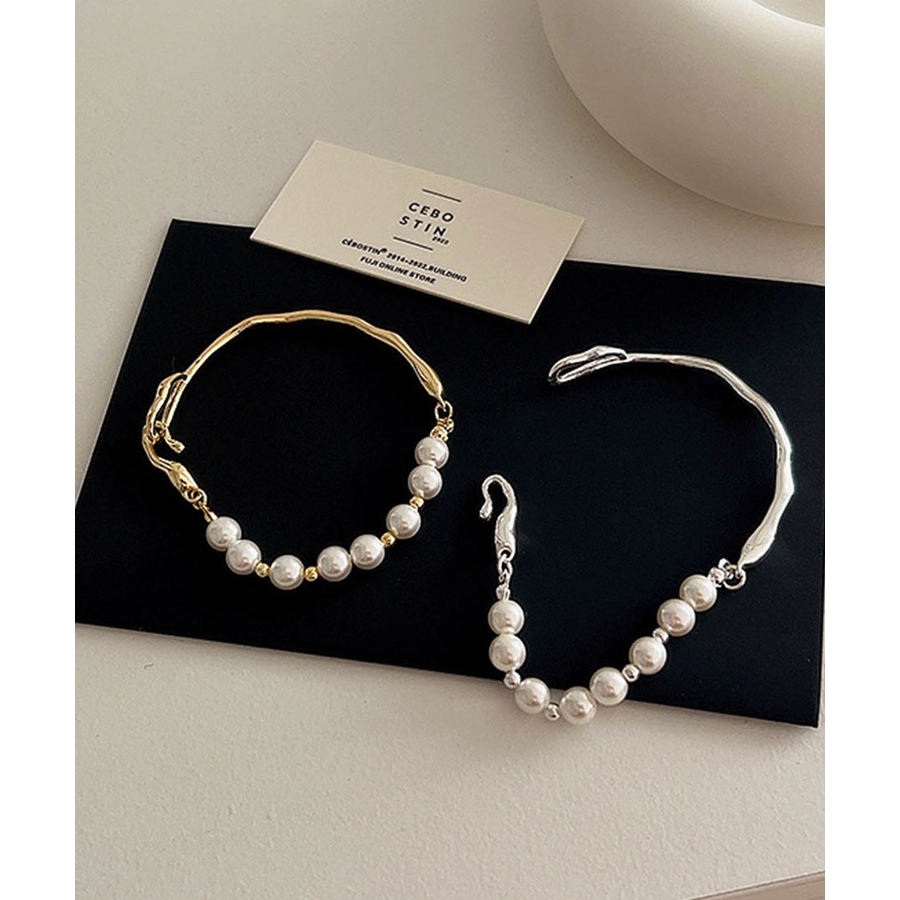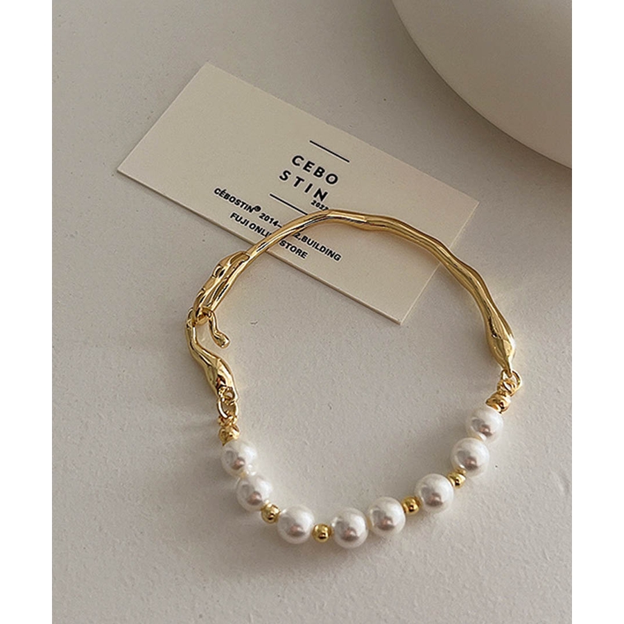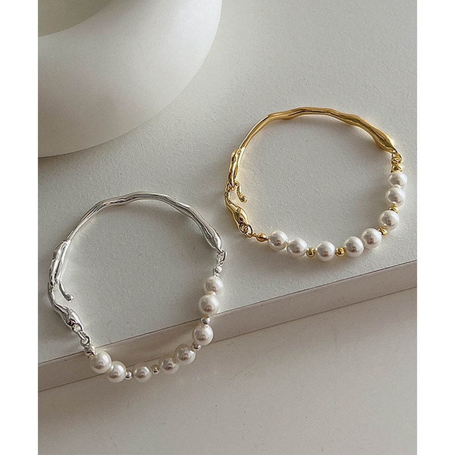 小粒のパールとSILVERや、ゴールドのボールが串綴りとなったバランスが可愛いブレスレット。 ※空気に触れることで黒色に変化する場合がございます。