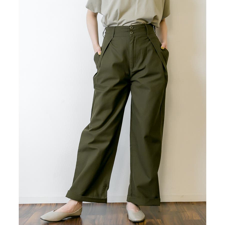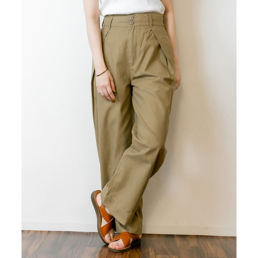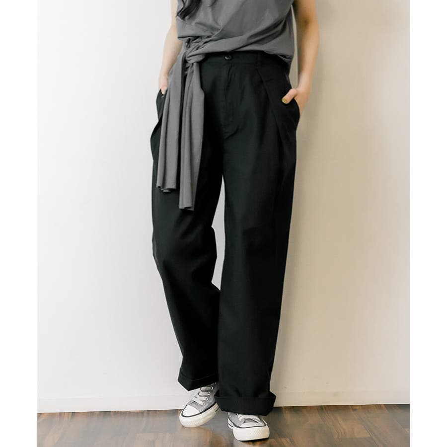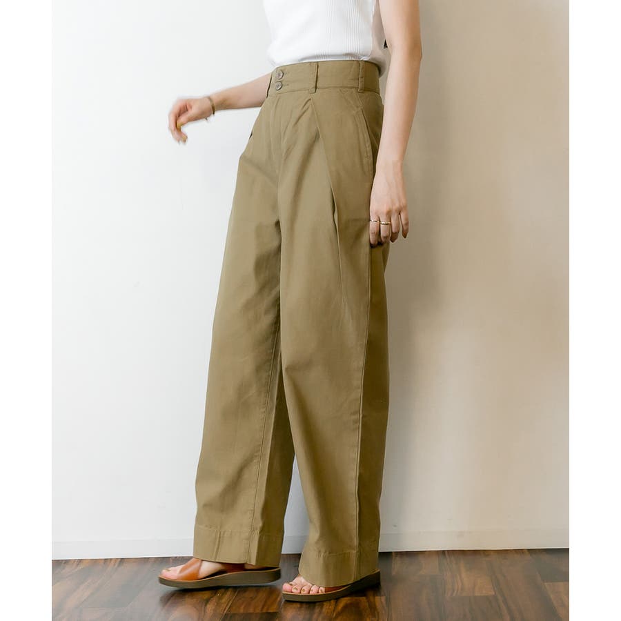 ビックタックのシルエットがきれいなラインのツイルパンツ。
