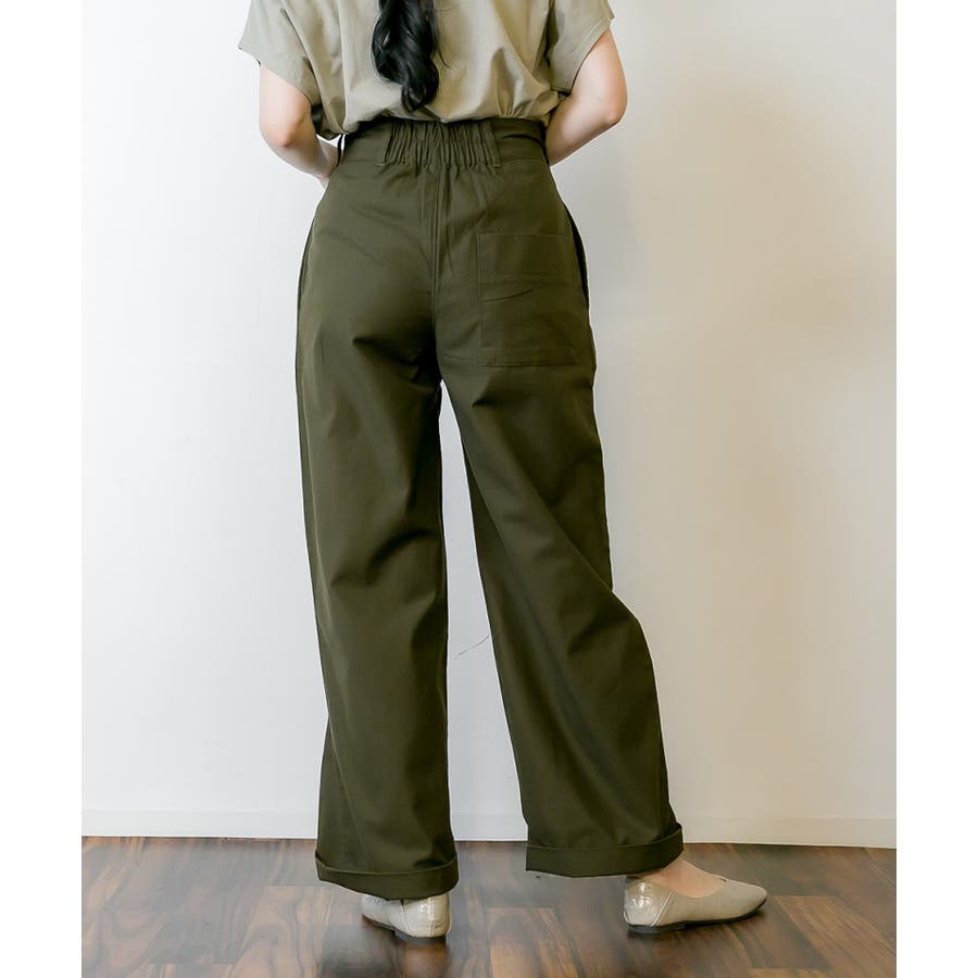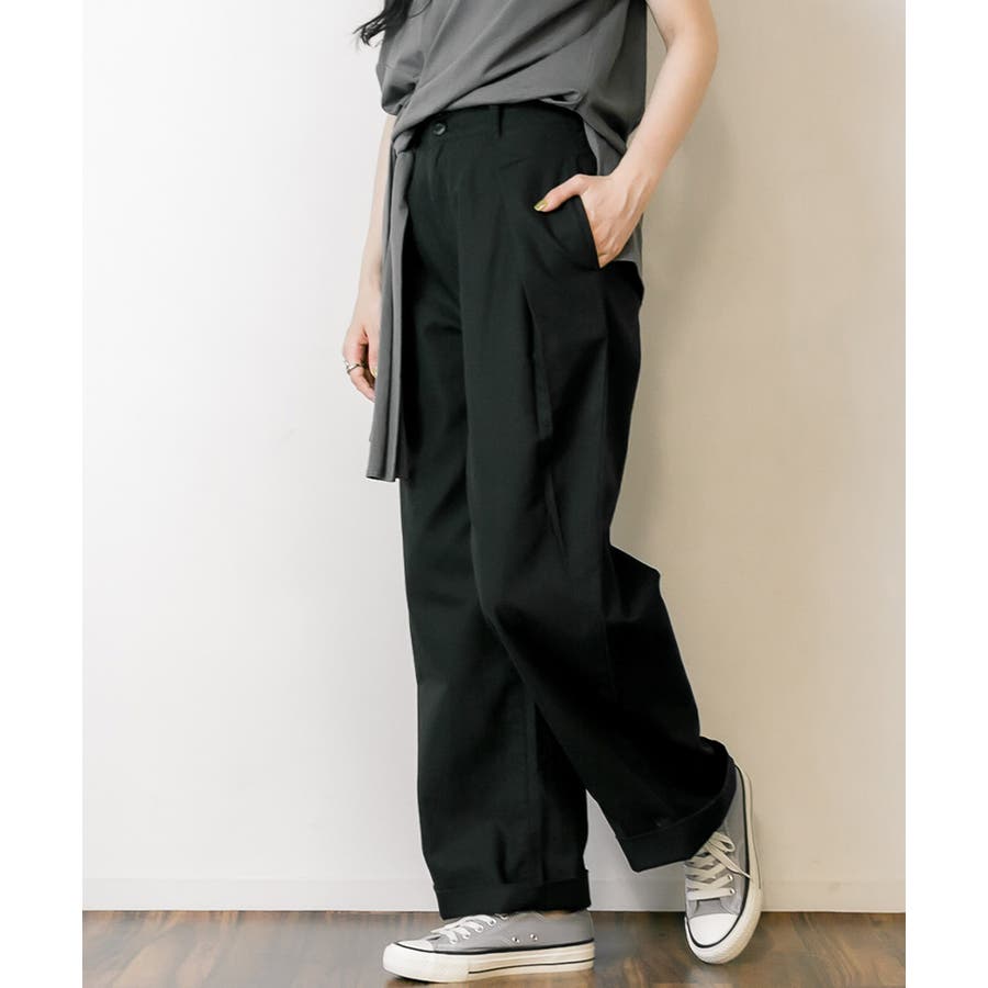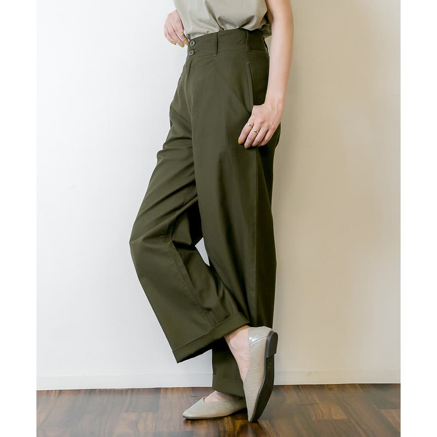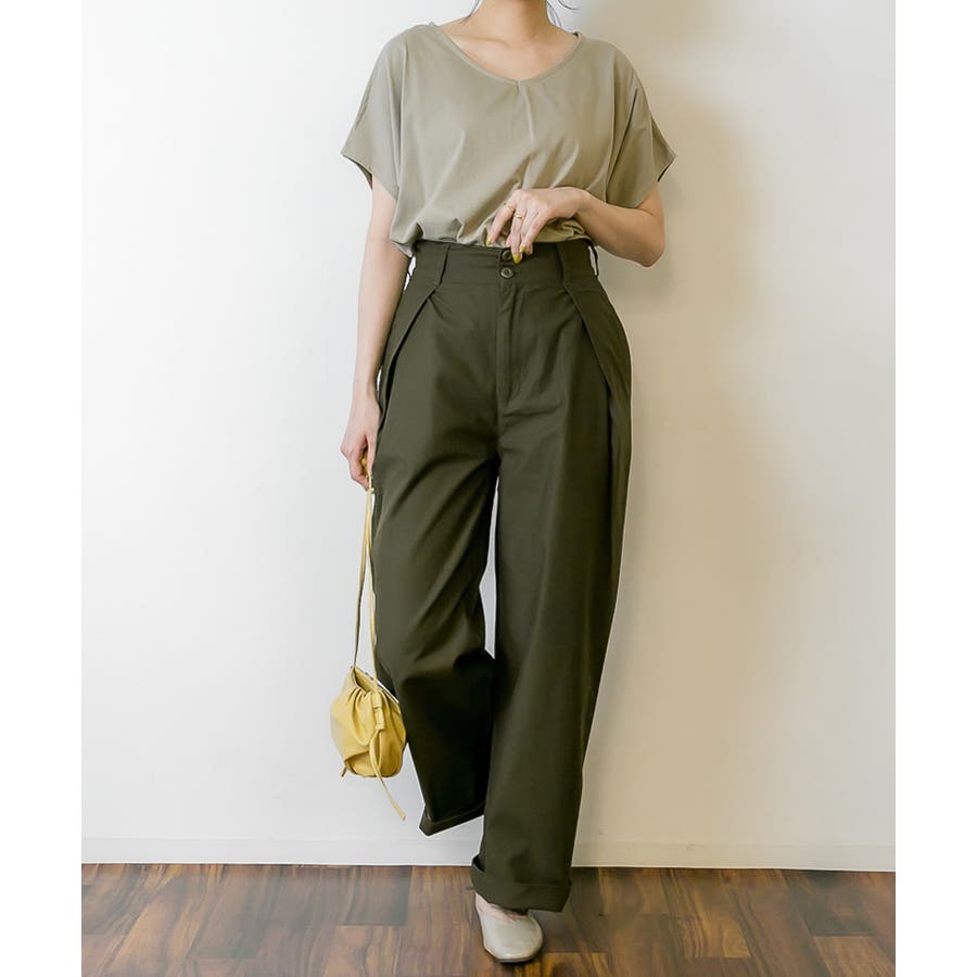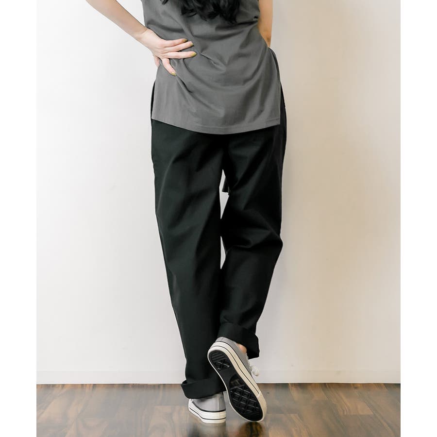 ビックタックのシルエットがきれいなラインのツイルパンツ。