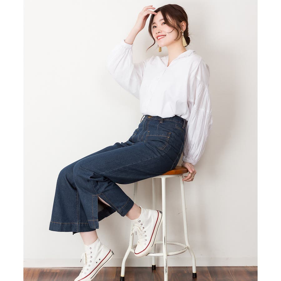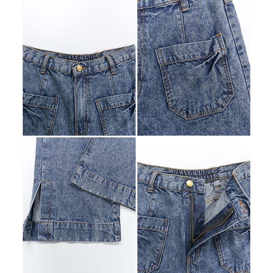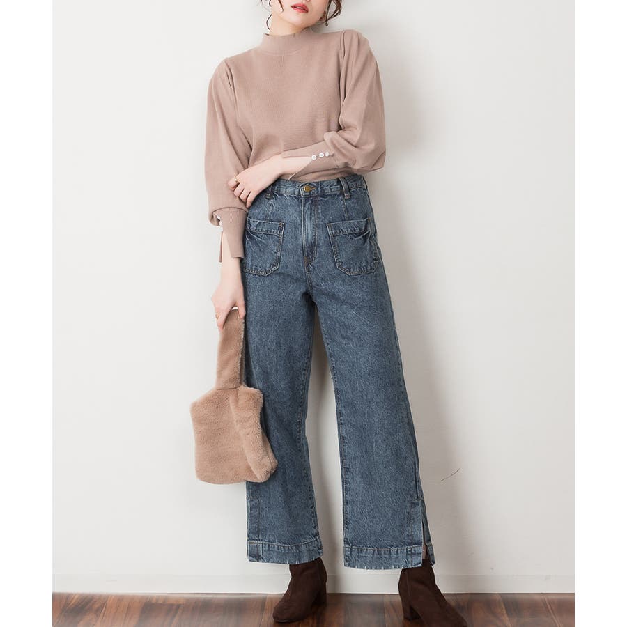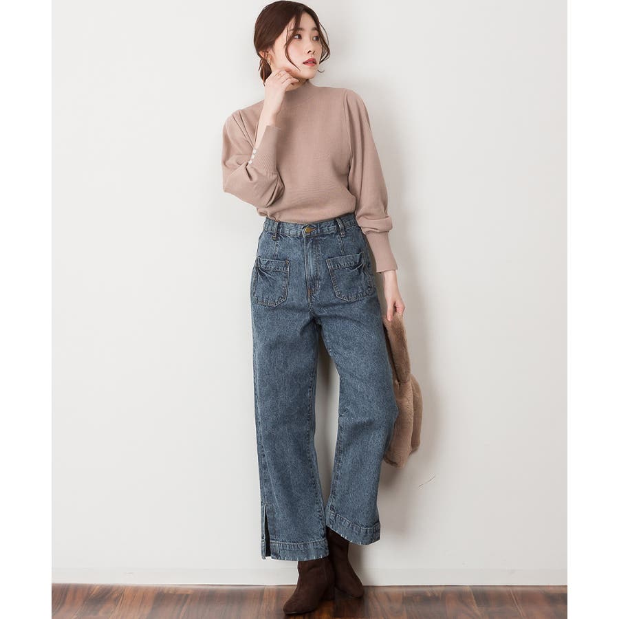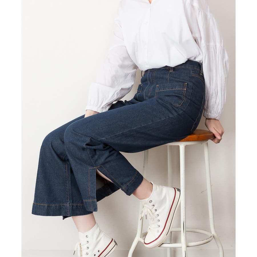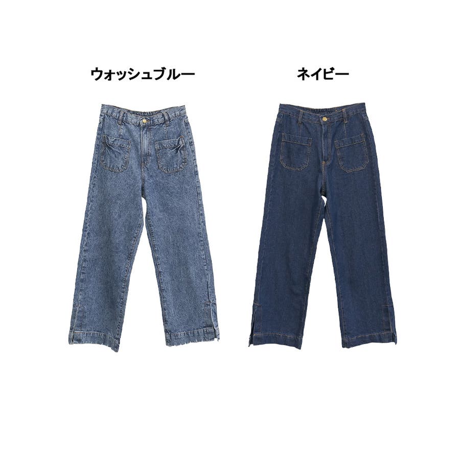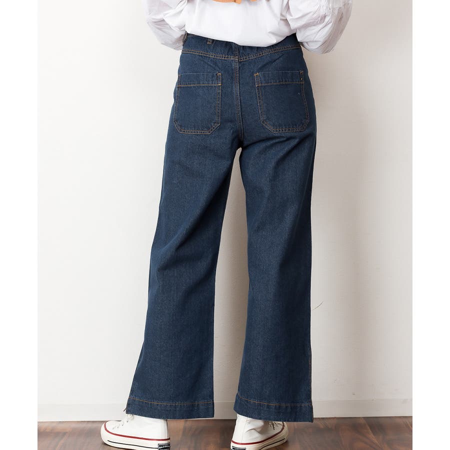 裾スリットデニムストレートパンツ