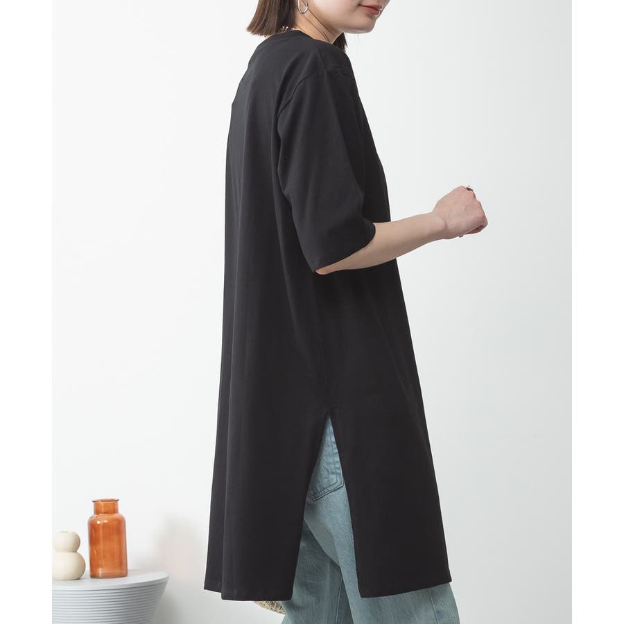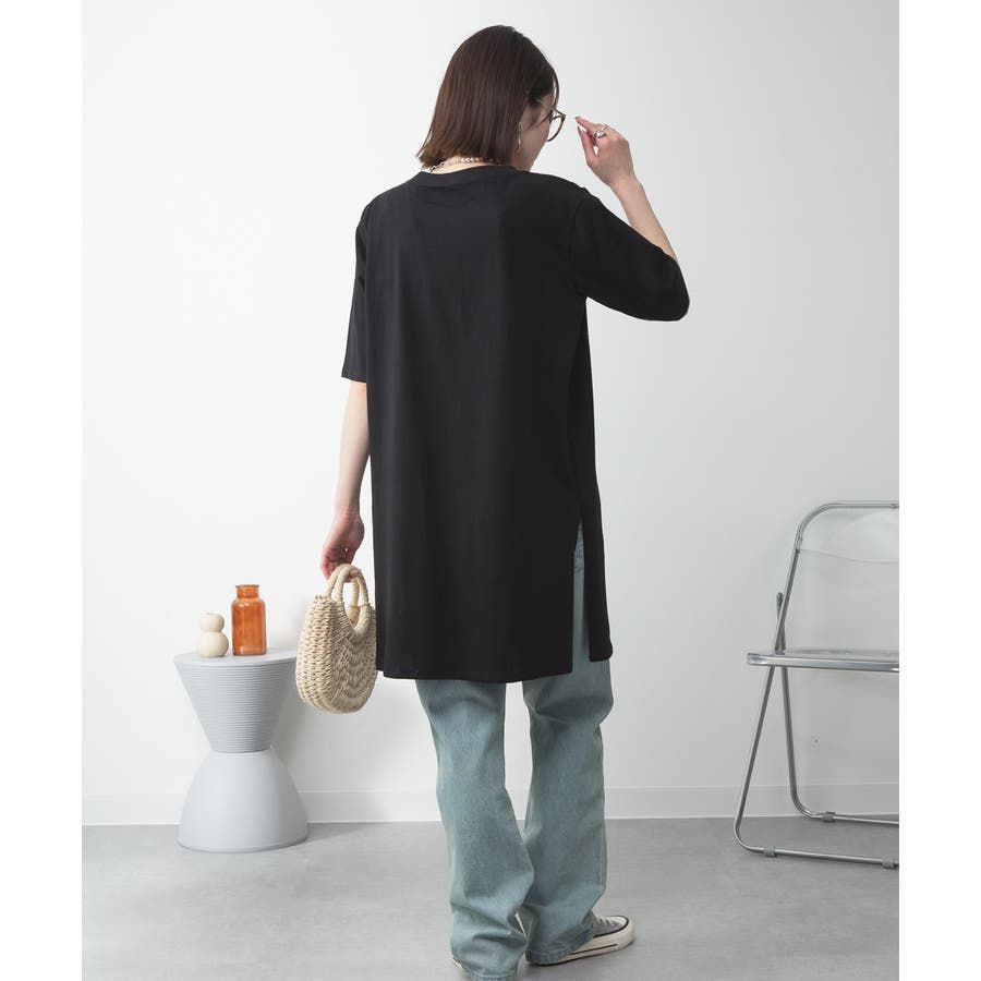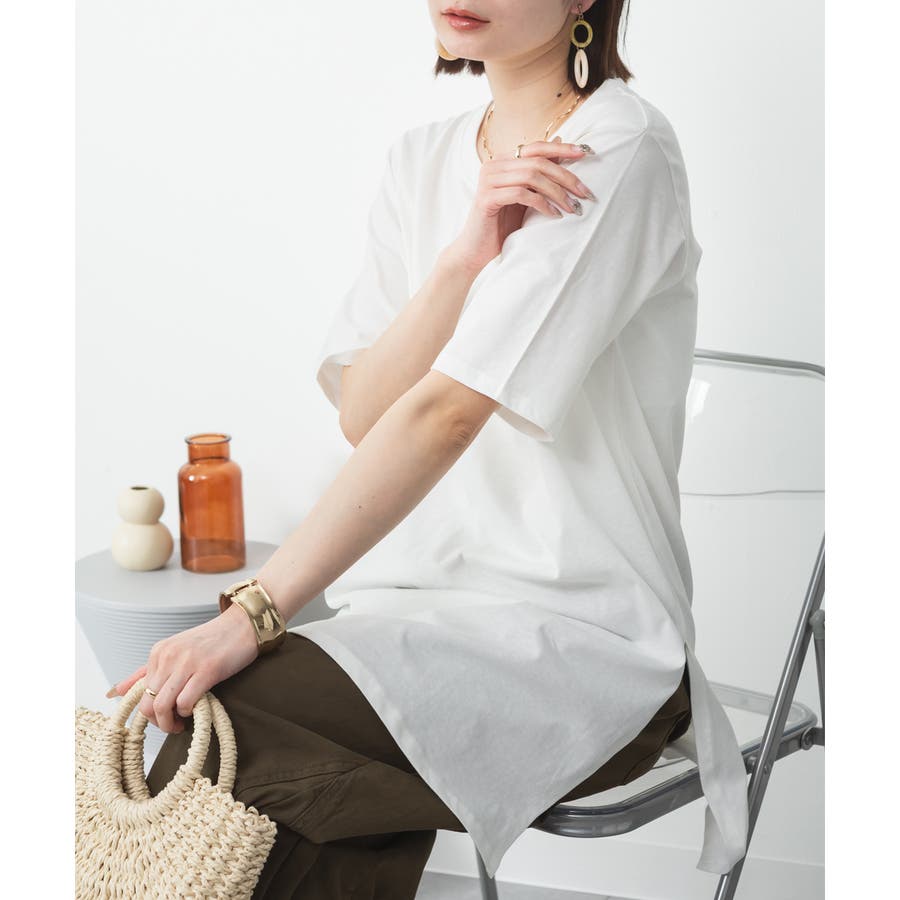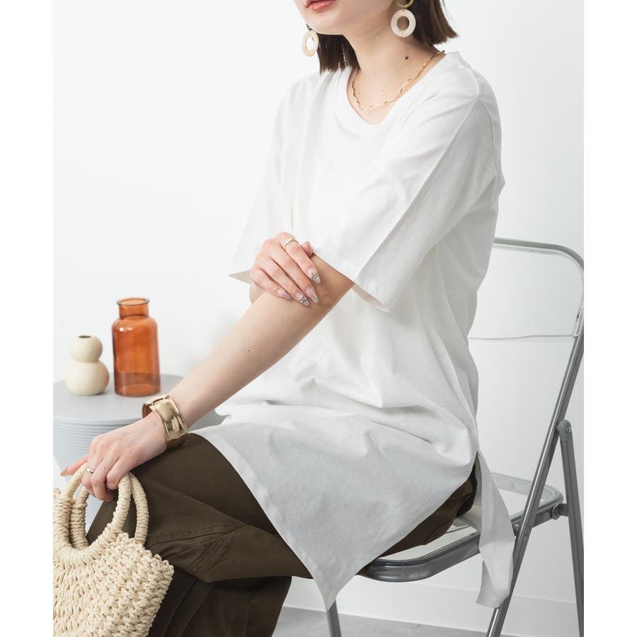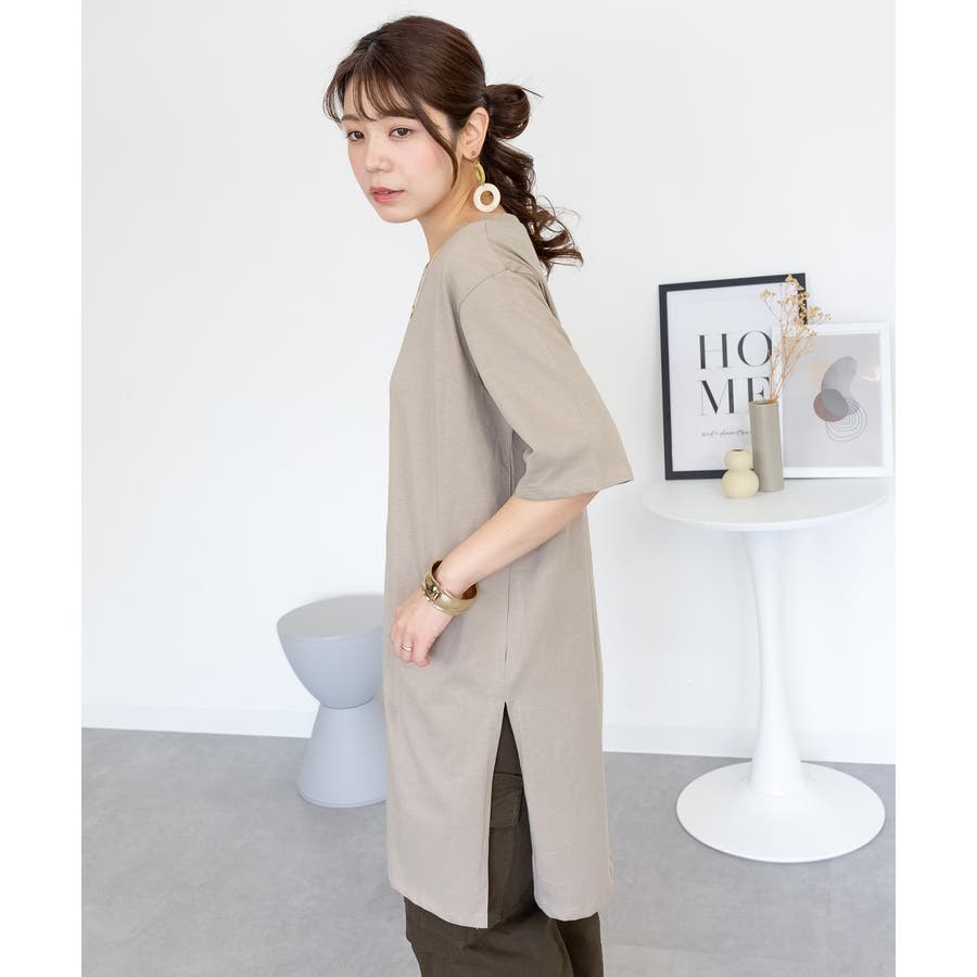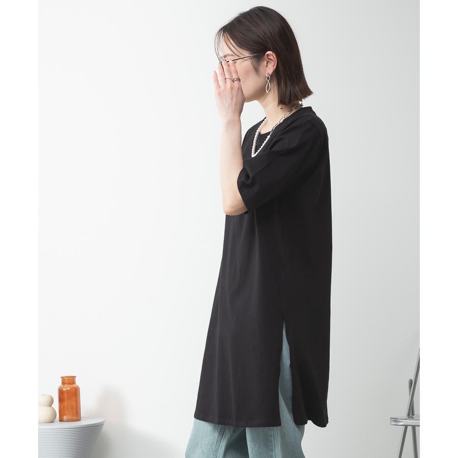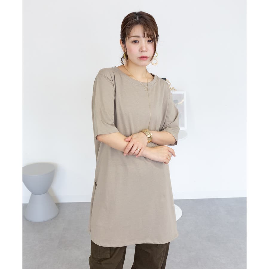 5分袖サイドスリットロングTシャツ