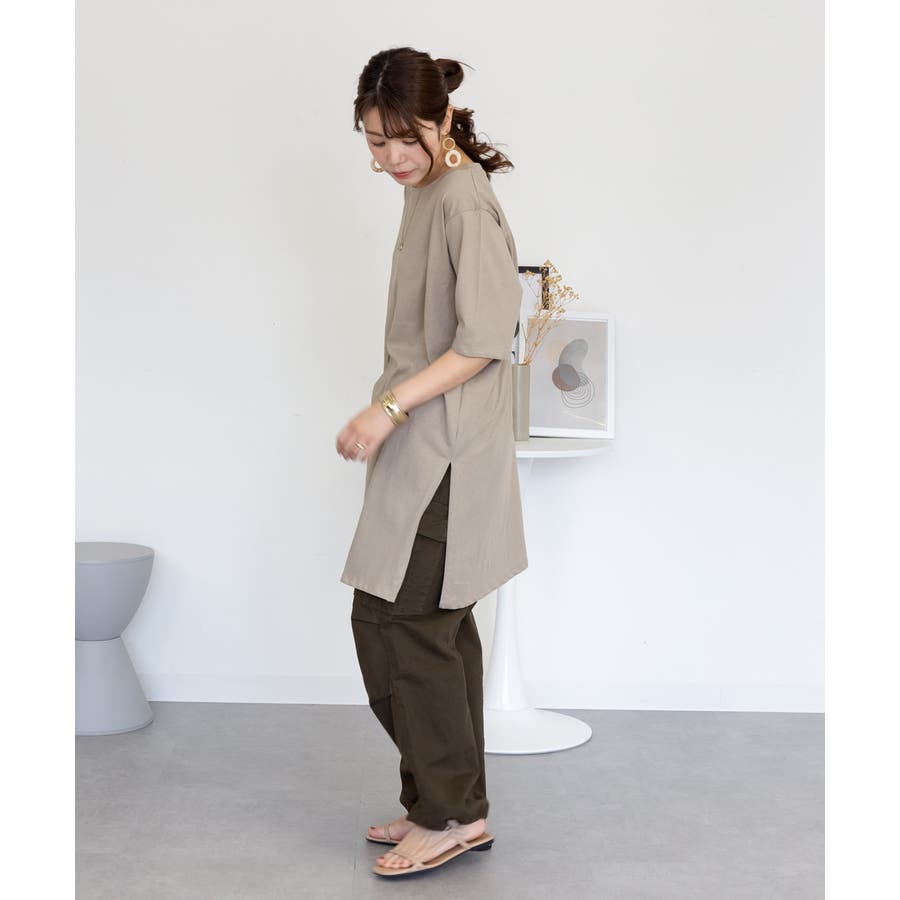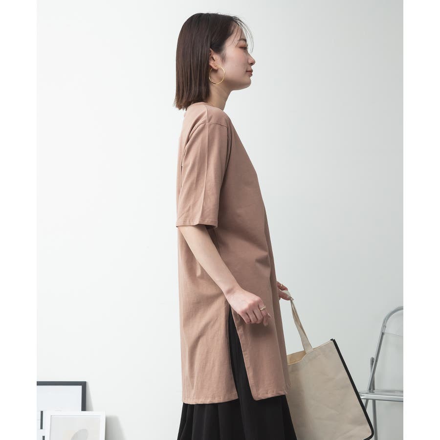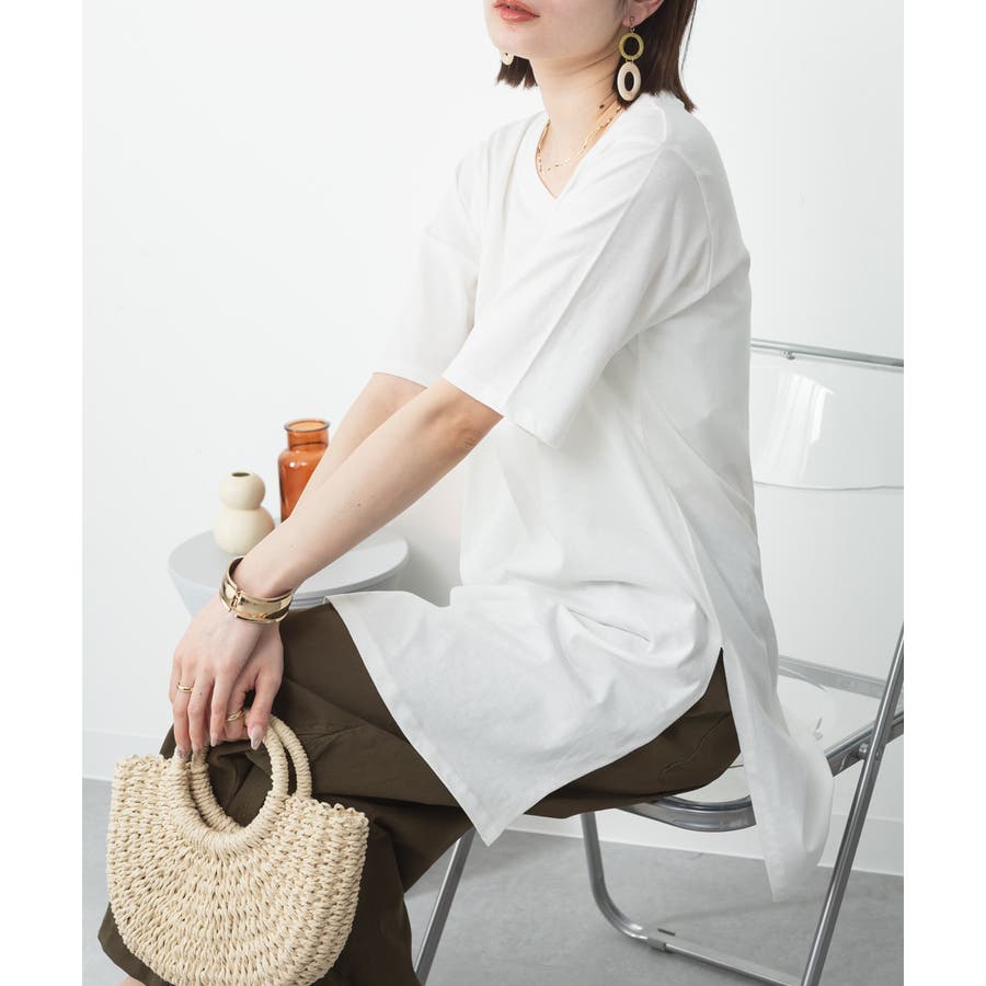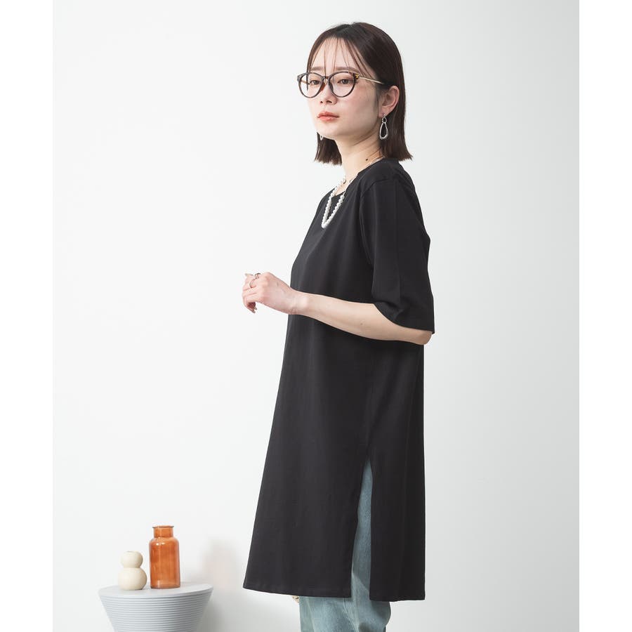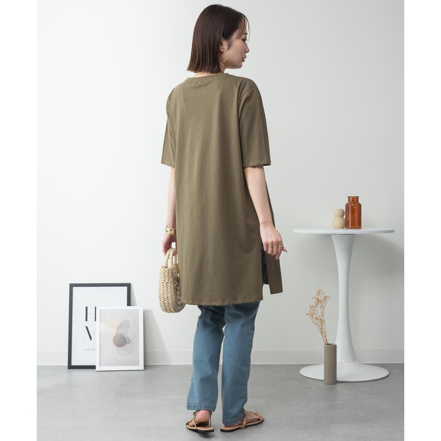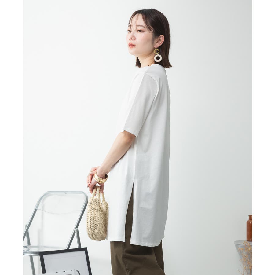 5分袖サイドスリットロングTシャツ