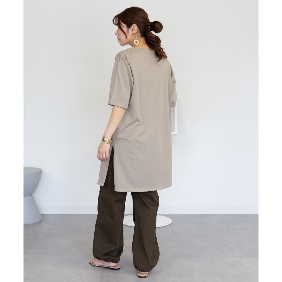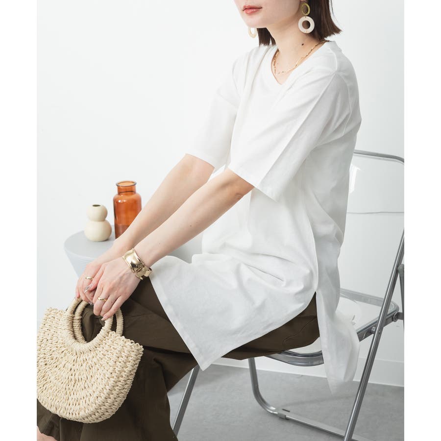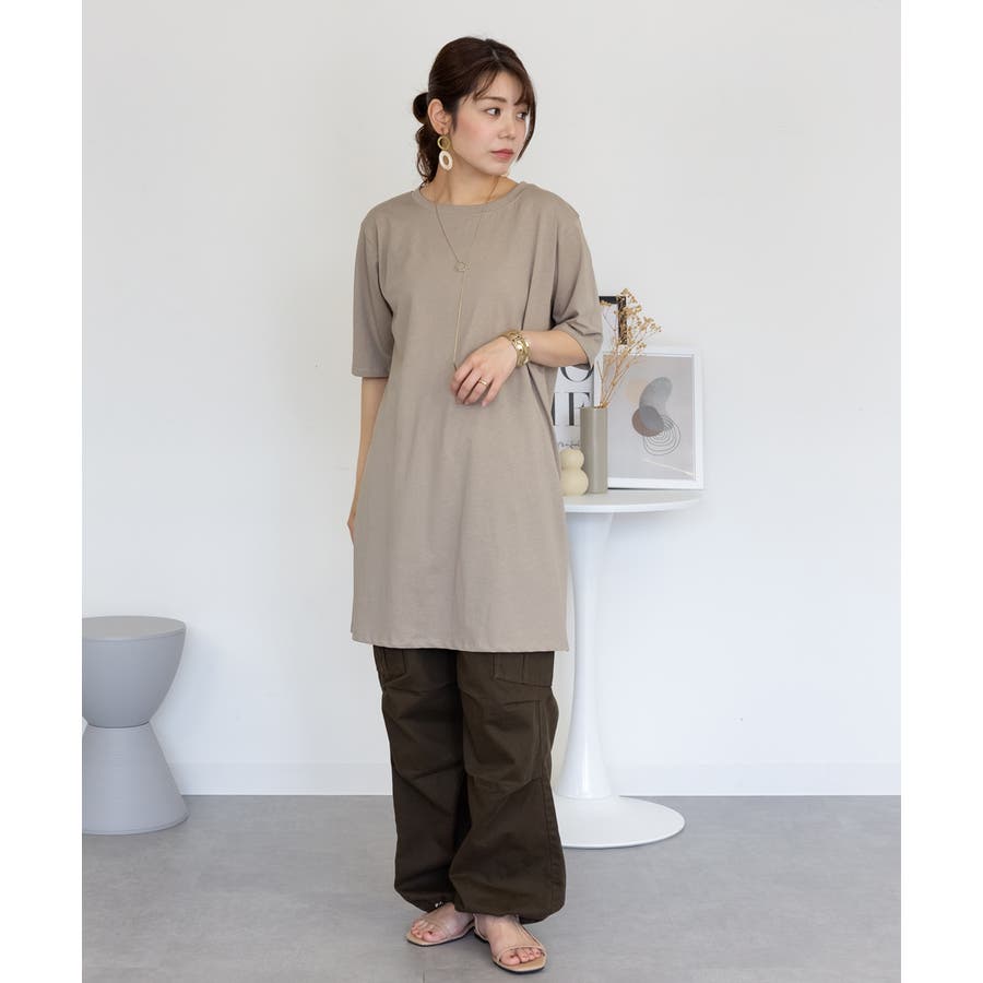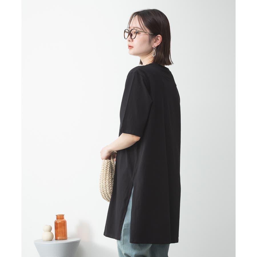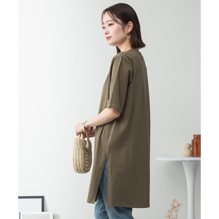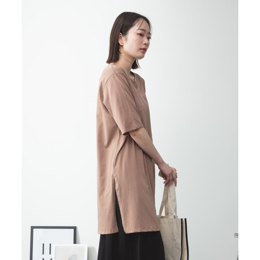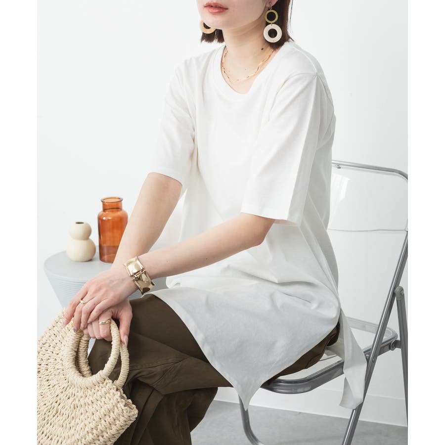 5分袖サイドスリットロングTシャツ