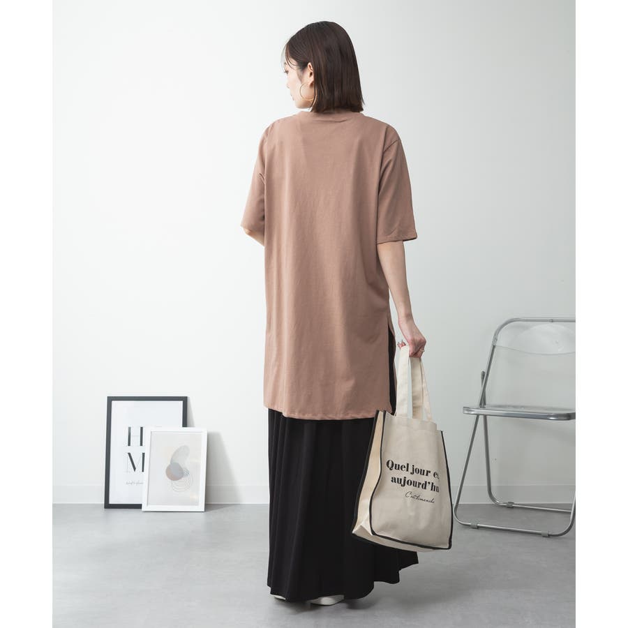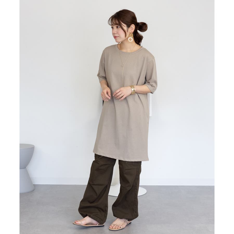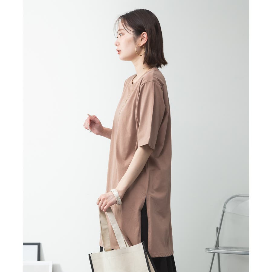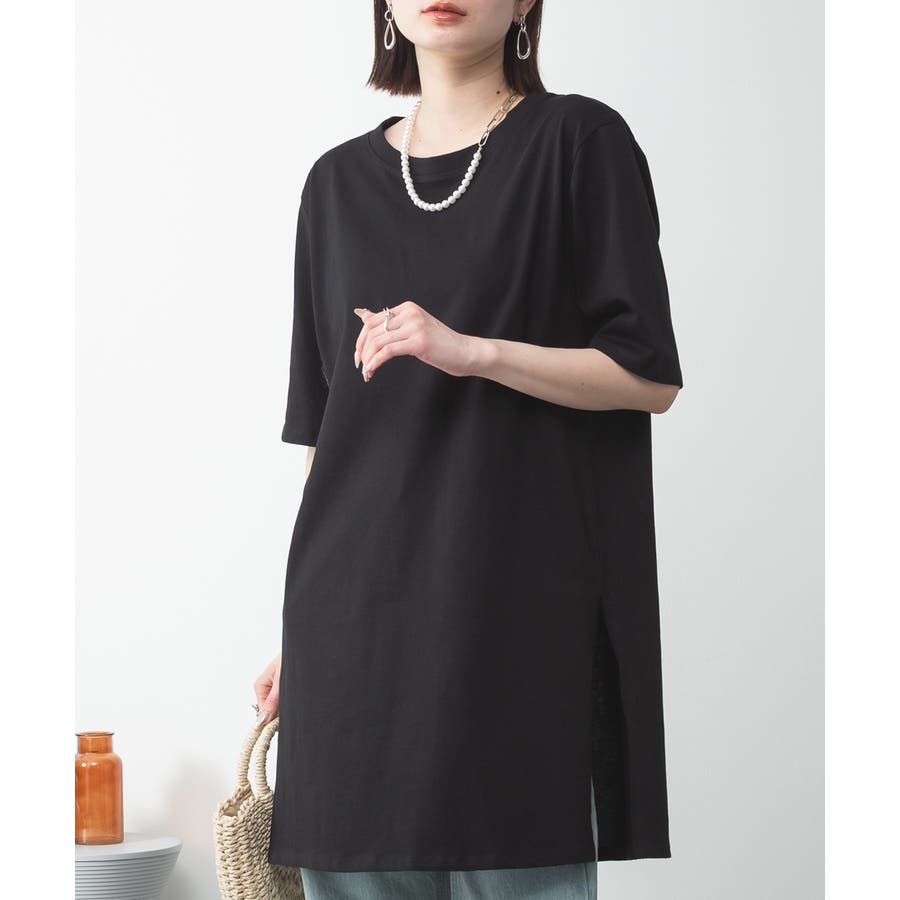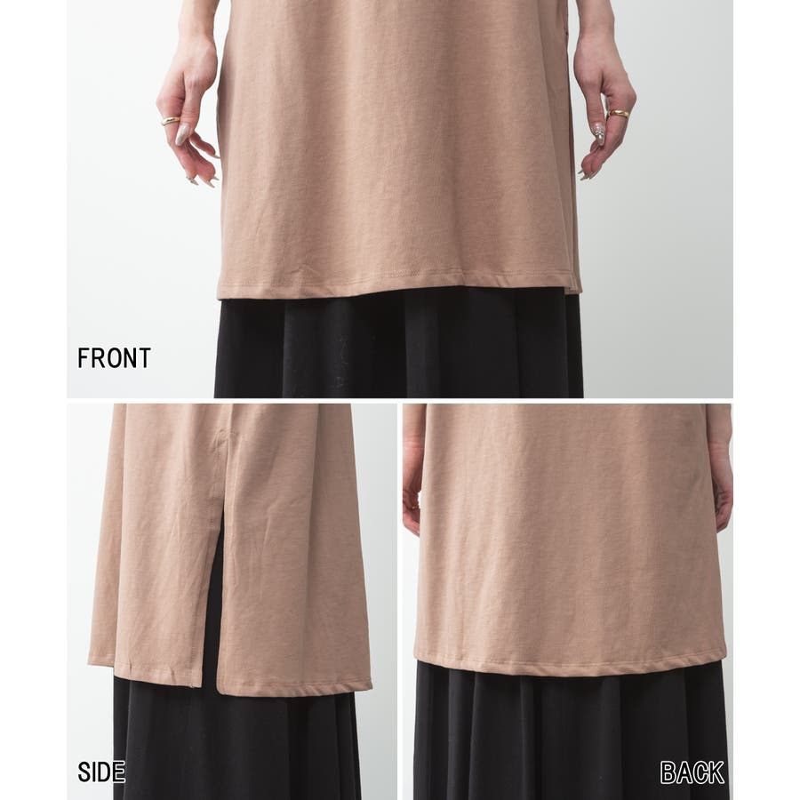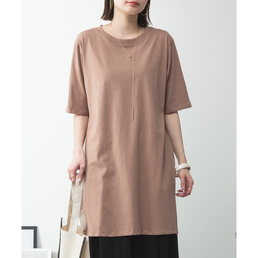 5分袖サイドスリットロングTシャツ