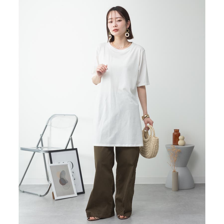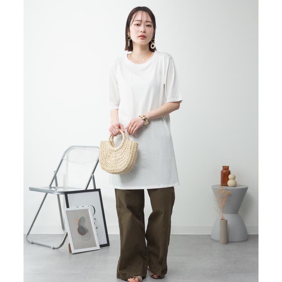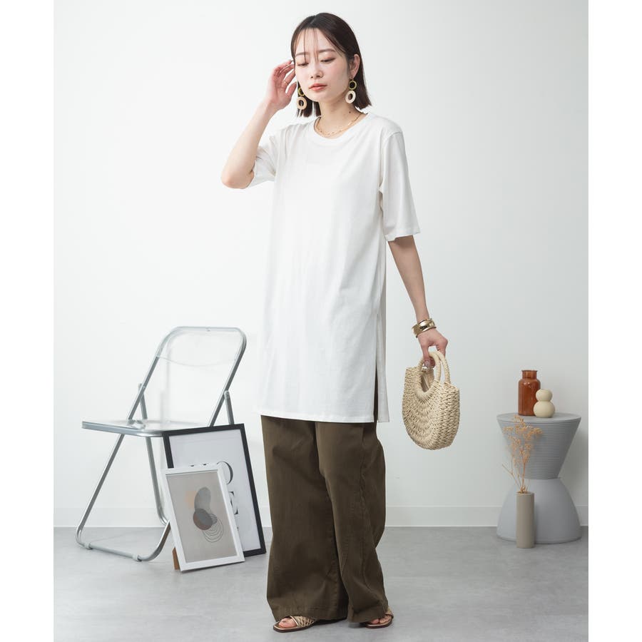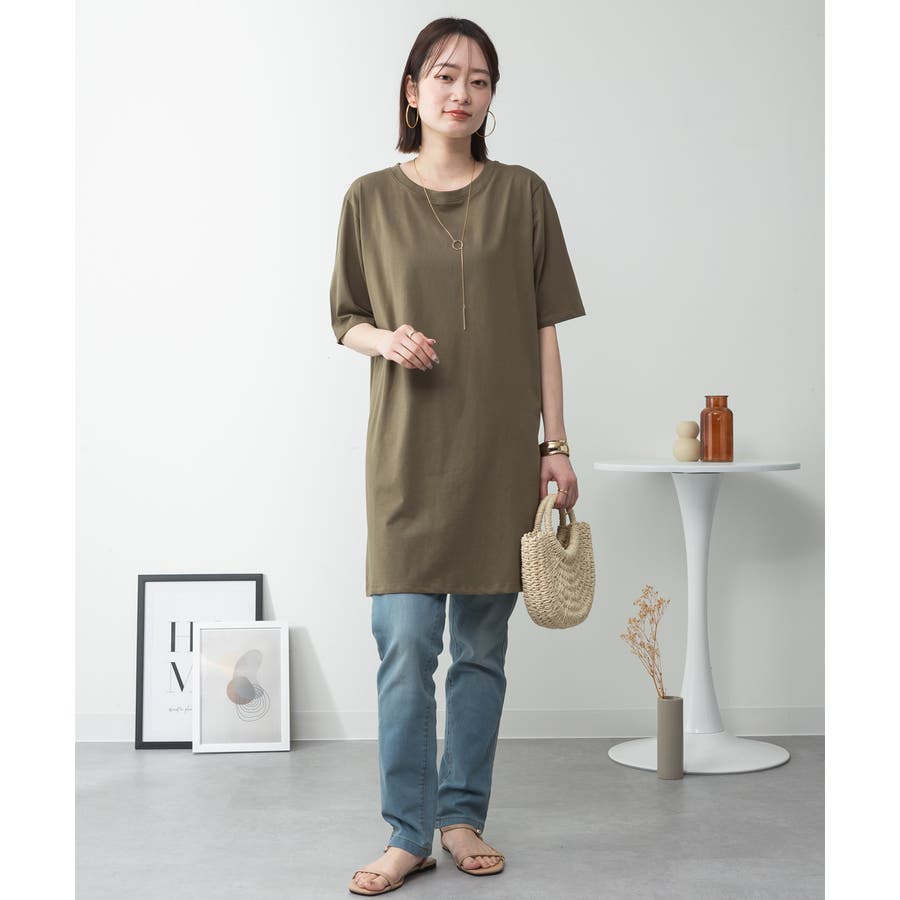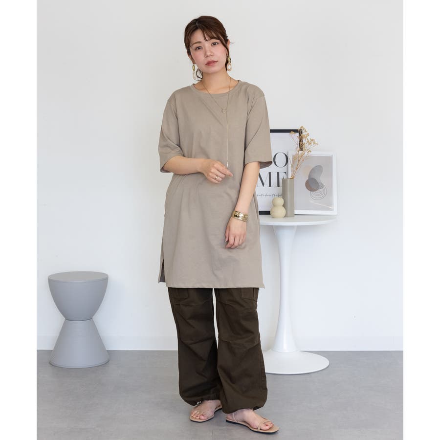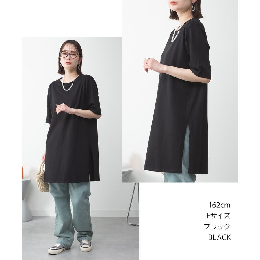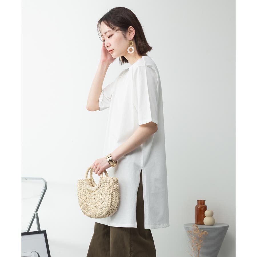 5分袖サイドスリットロングTシャツ