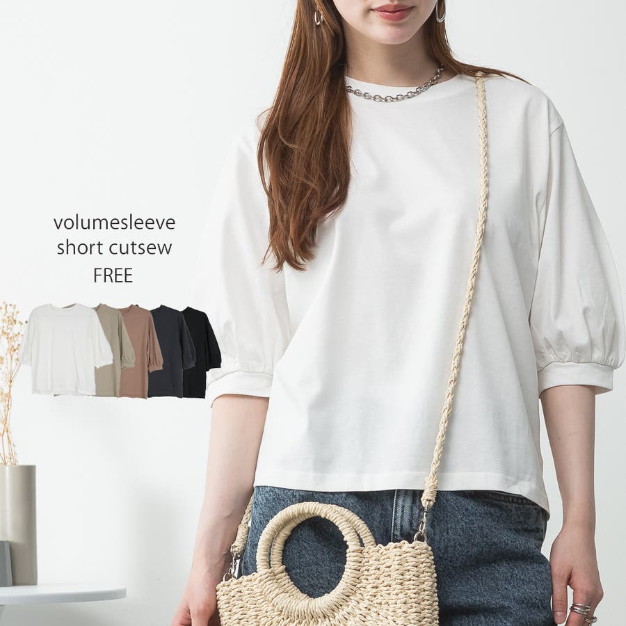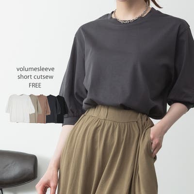 ボリューム袖ショート丈カットソー