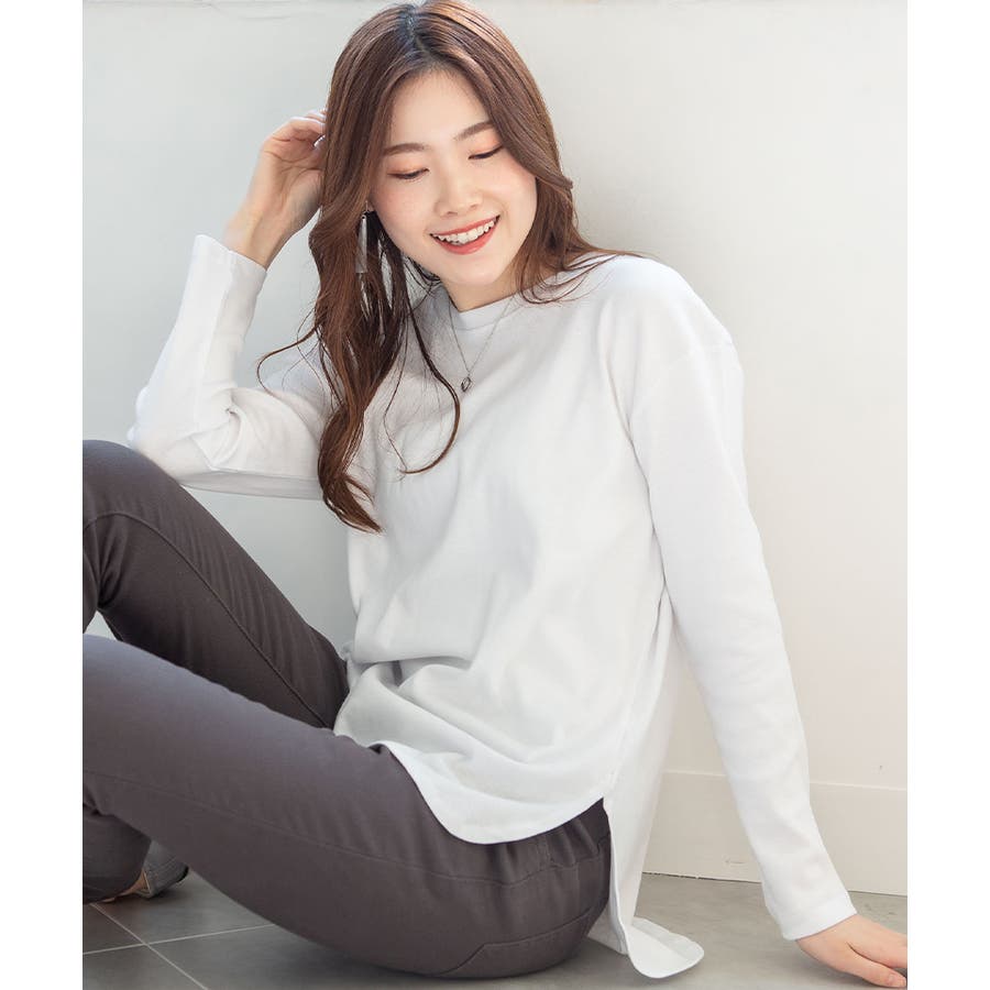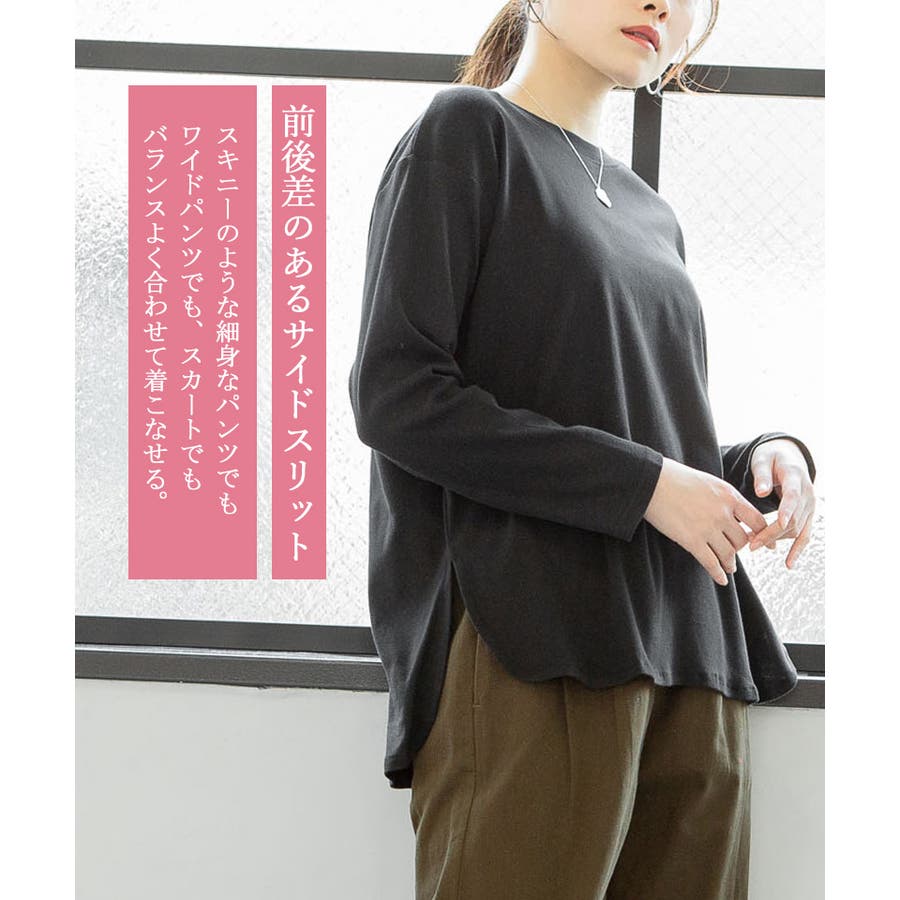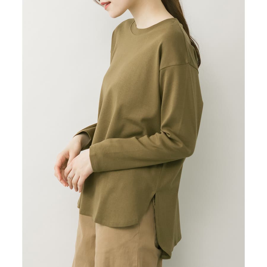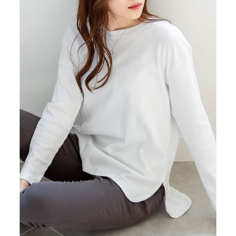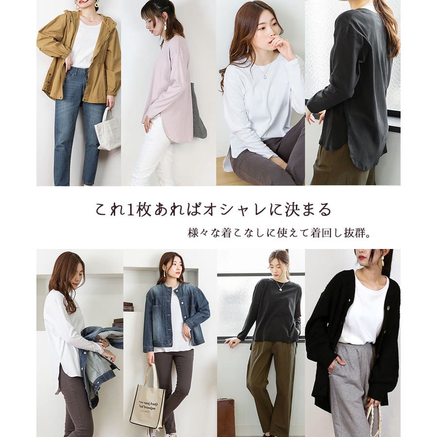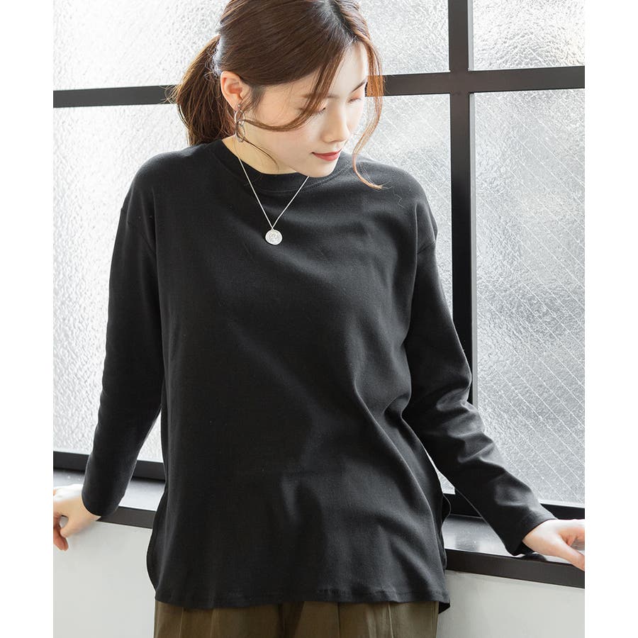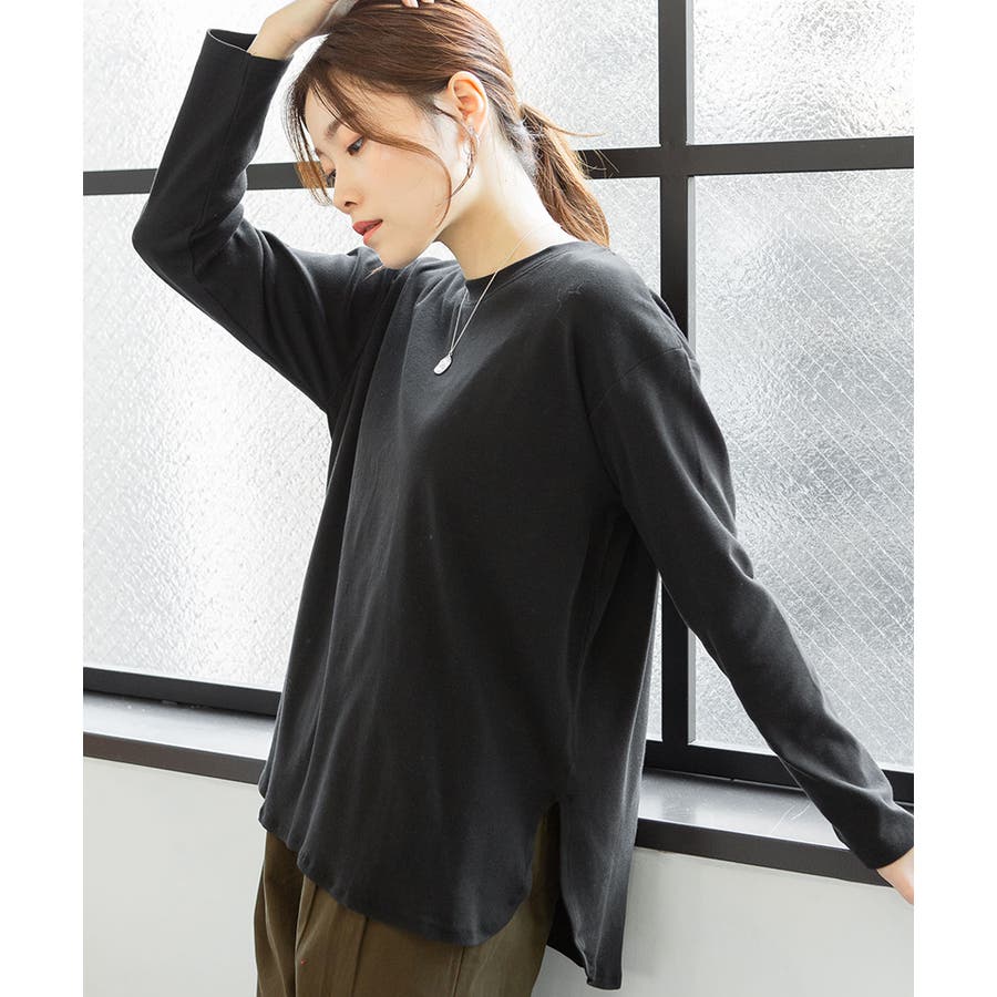 腰骨下まである長め丈なので、屈んだ時に背中が見えにくく、ボトムにインしやすいデザインです。そのままでも着られ、インナーにも活躍する無地の長袖カットソーは何枚でも欲しいもの。