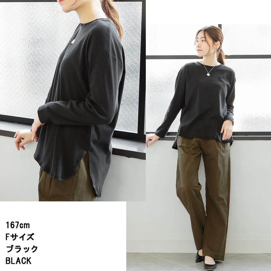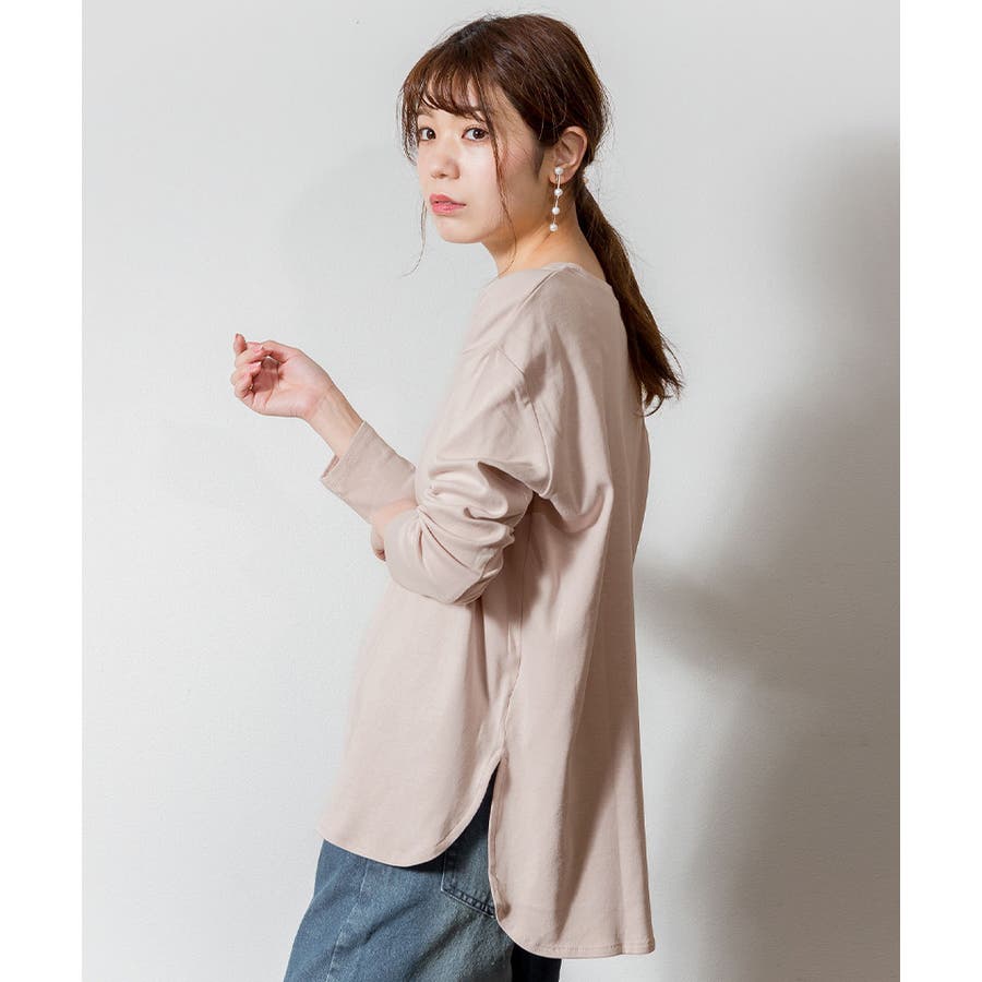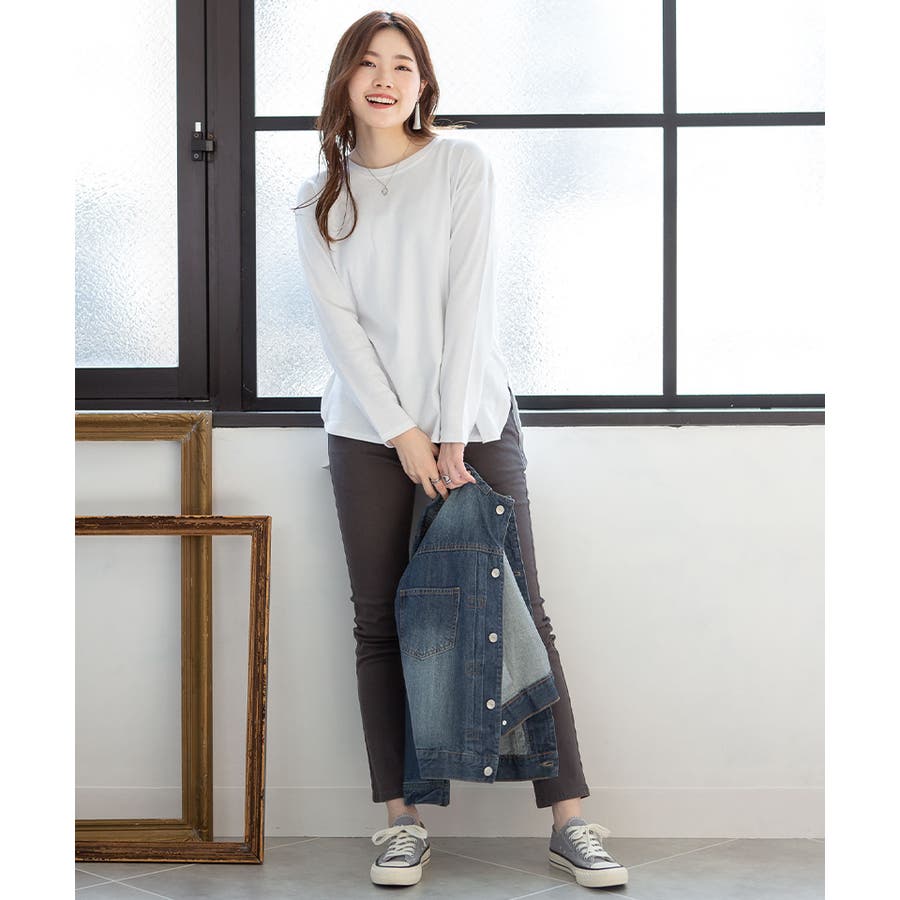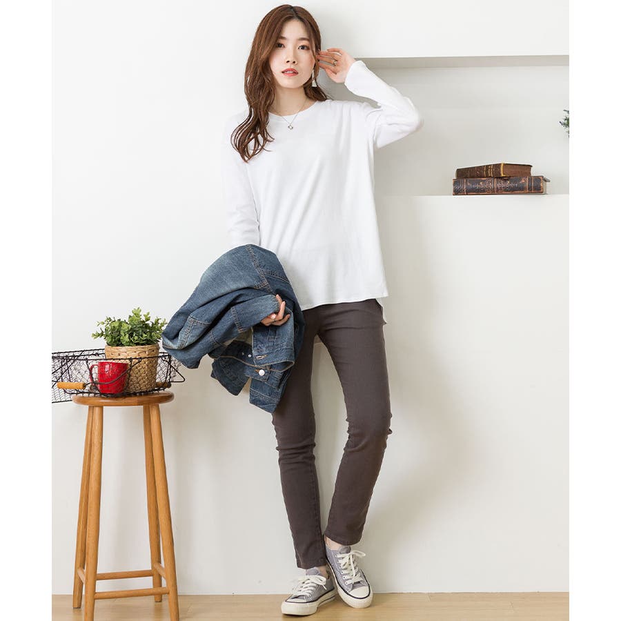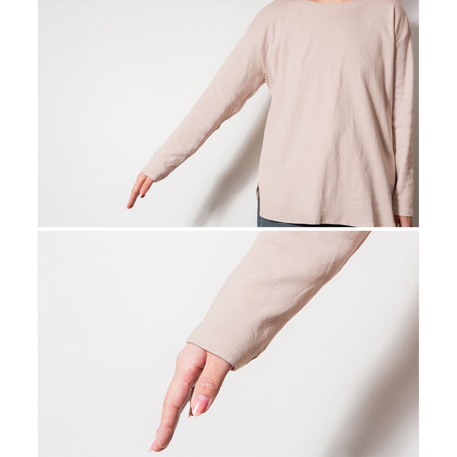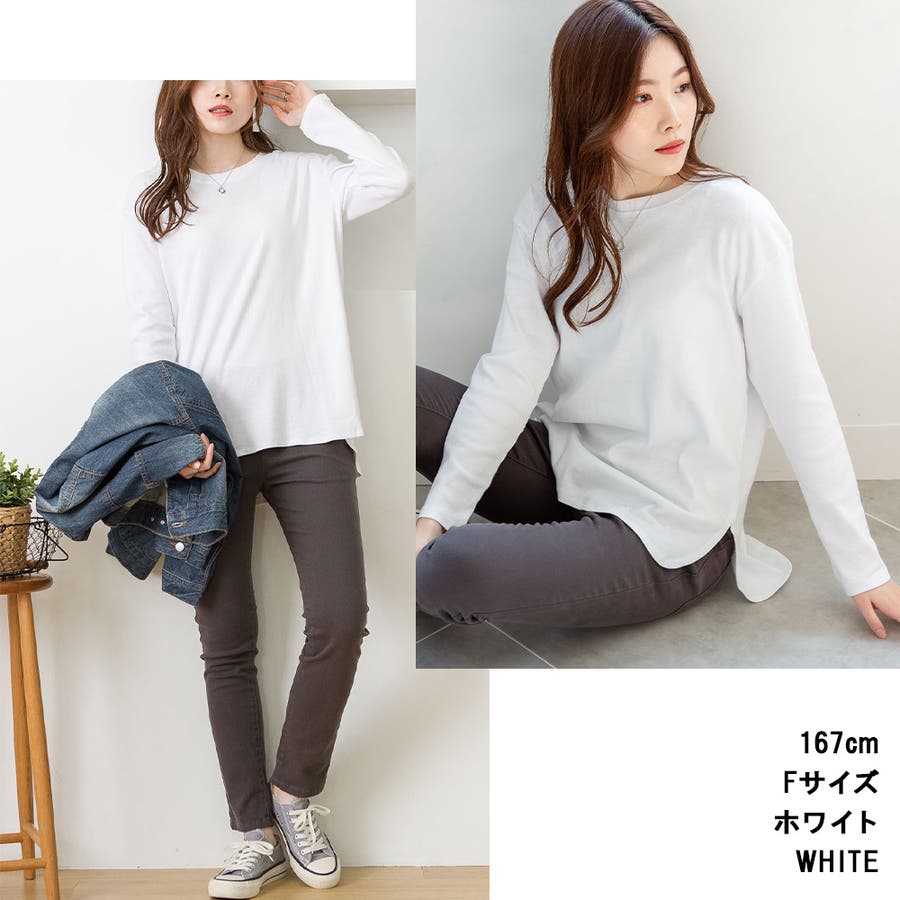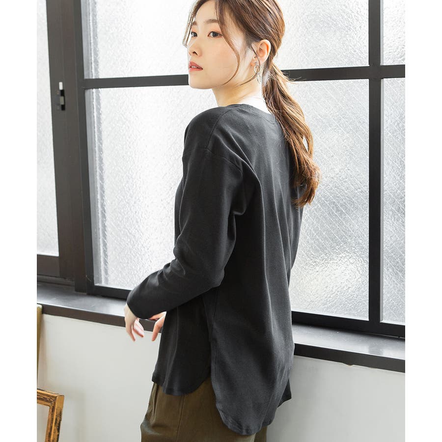 腰骨下まである長め丈なので、屈んだ時に背中が見えにくく、ボトムにインしやすいデザインです。そのままでも着られ、インナーにも活躍する無地の長袖カットソーは何枚でも欲しいもの。