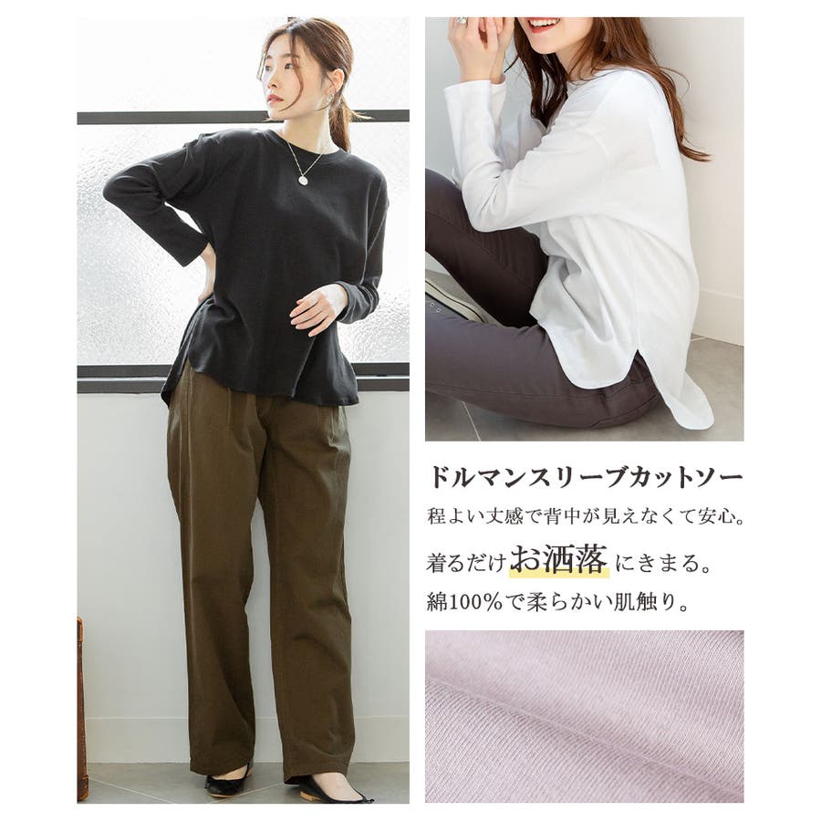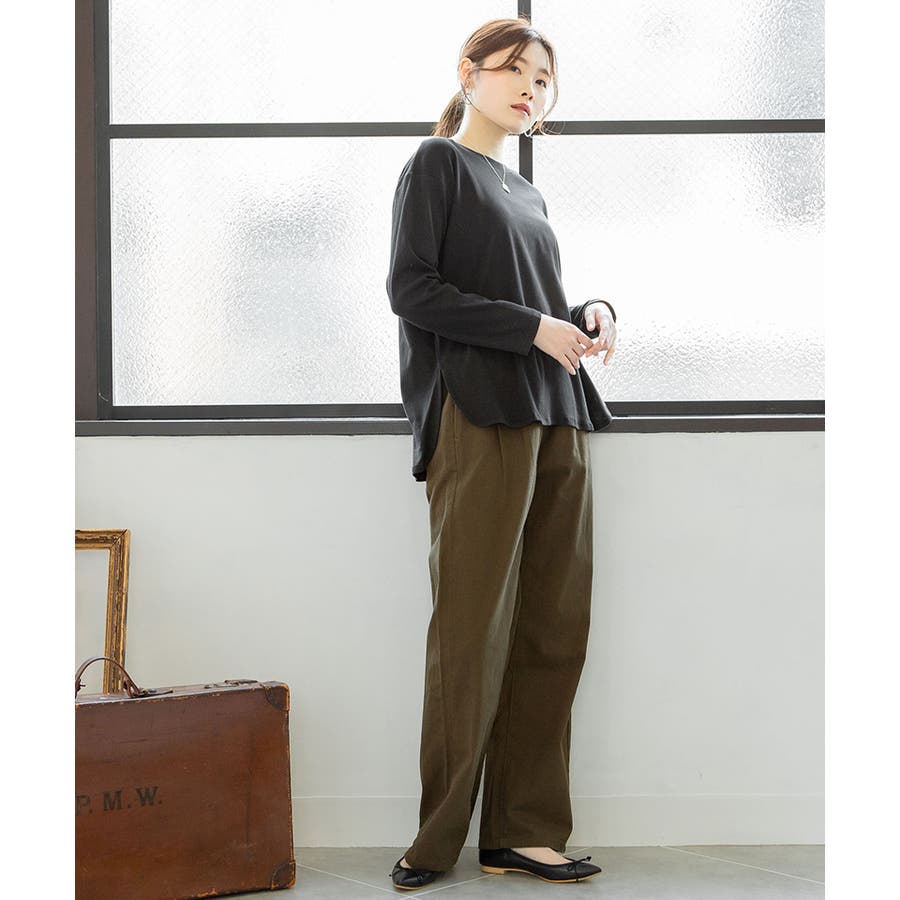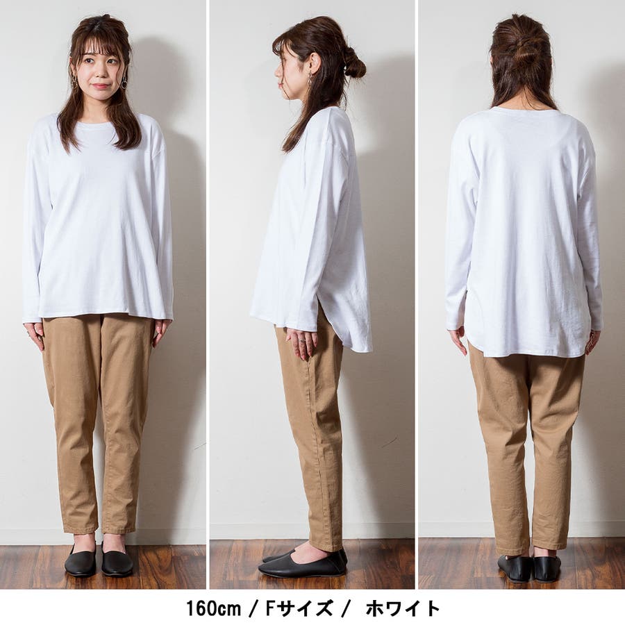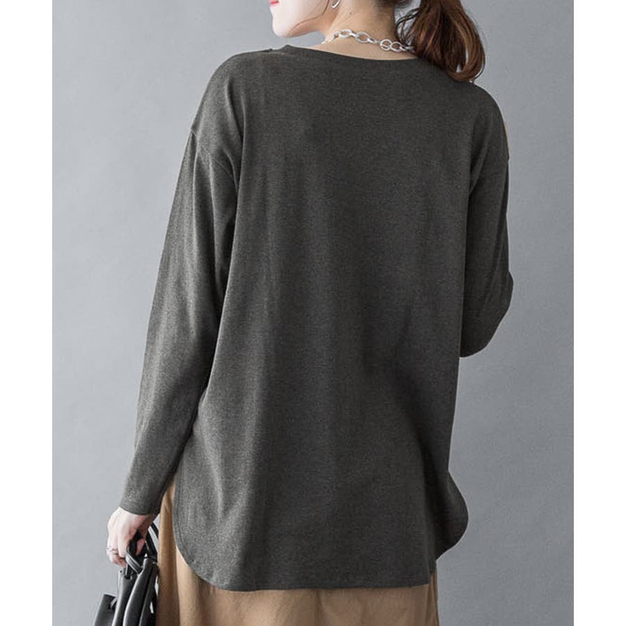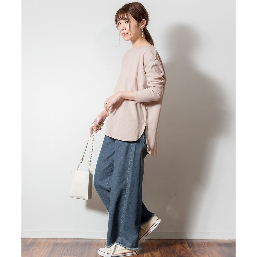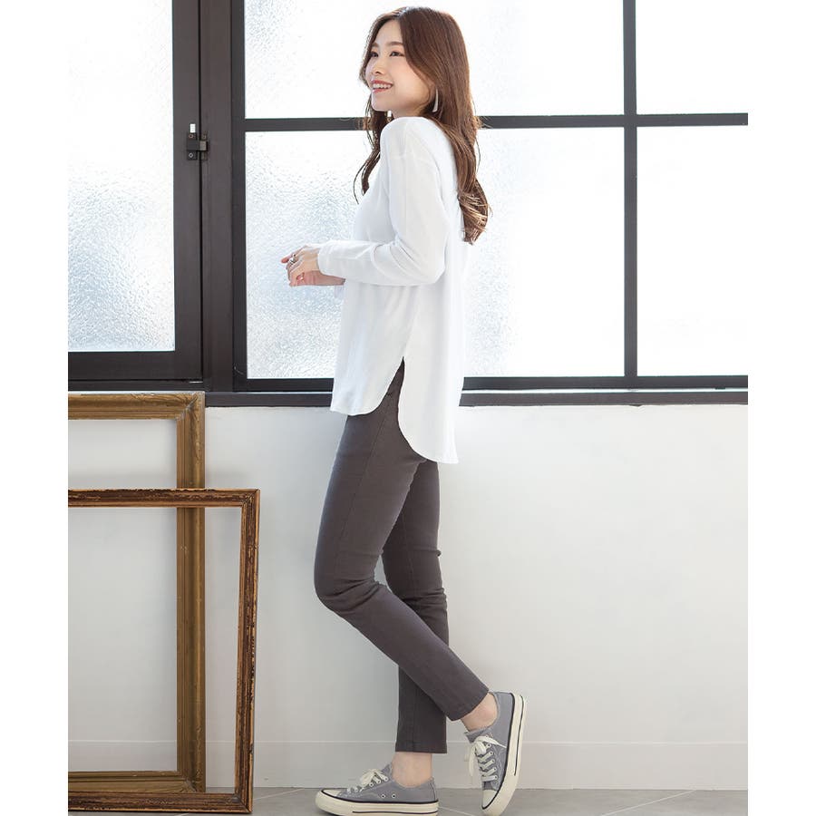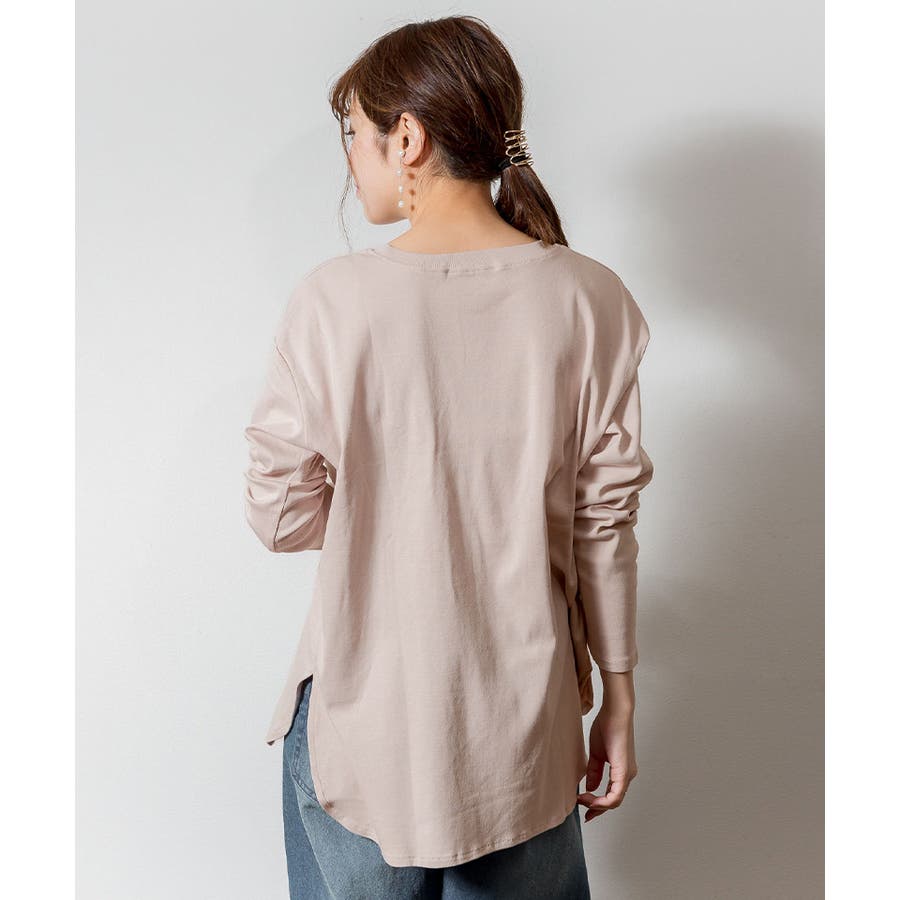 腰骨下まである長め丈なので、屈んだ時に背中が見えにくく、ボトムにインしやすいデザインです。そのままでも着られ、インナーにも活躍する無地の長袖カットソーは何枚でも欲しいもの。