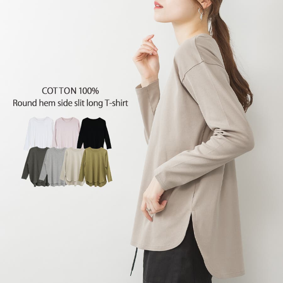 ラウンドヘム サイドスリット ロングTシャツ