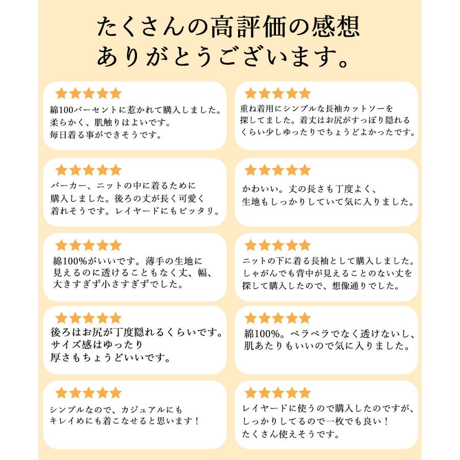 のびのび伸びて優しい着心地定番アイテムのトップスだからこそ、素材にはしっかりとこだわりたい。程よい厚みと伸縮性を持つ「フライス綿」を使用することでいつでも快適な着心地をお届けします。コットン100%でふんわり柔らかな素材を使用しています。