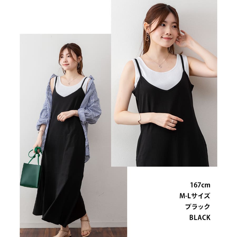 キャミワンピースとしてはもちろん、Tシャツやブラウスを重ねても着用可能なので、幅広い着こなしを楽しめます。