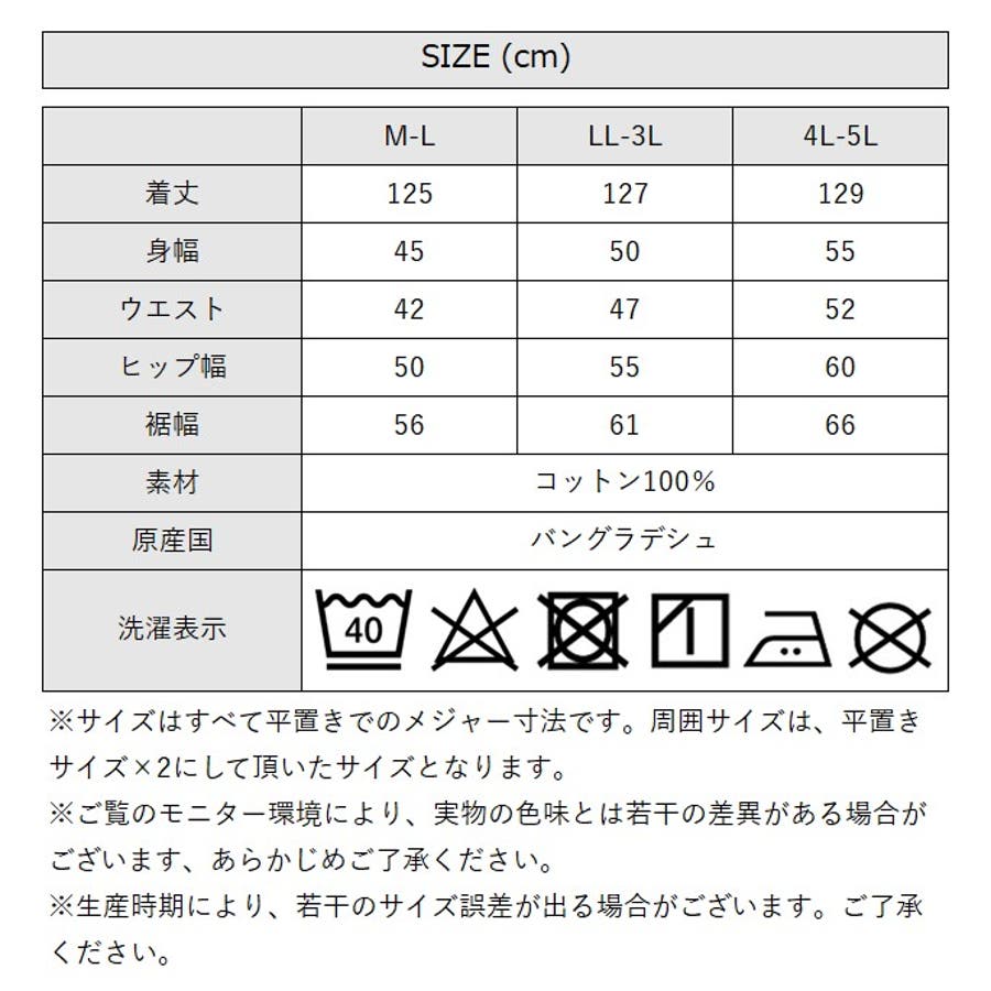 [LL-3Lサイズ]着丈127cm、身幅50cm、ウエスト47cm、ヒップ幅55cm、裾幅61cm