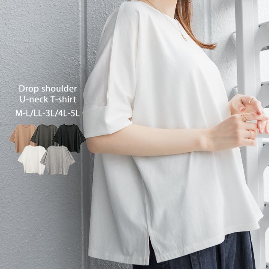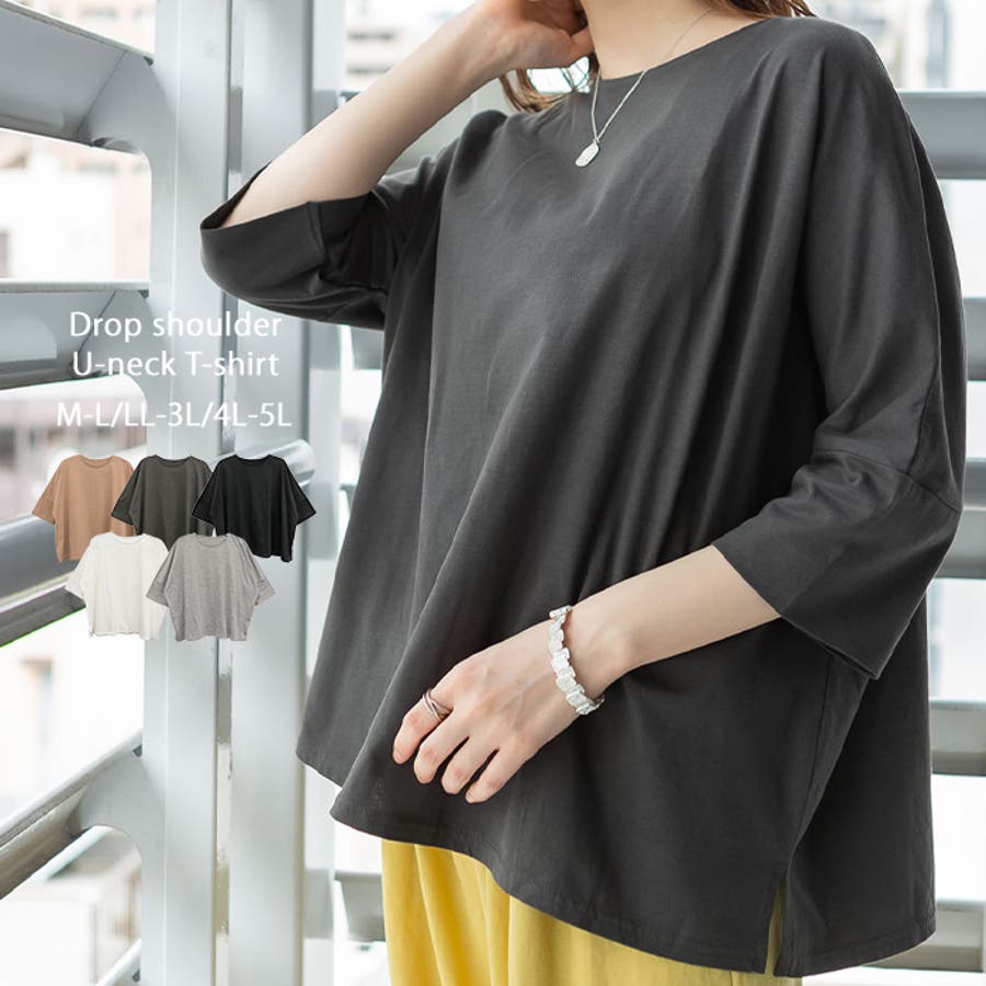 このオーバーサイズのやわらかコットンTシャツは、快適な着心地が自慢です。