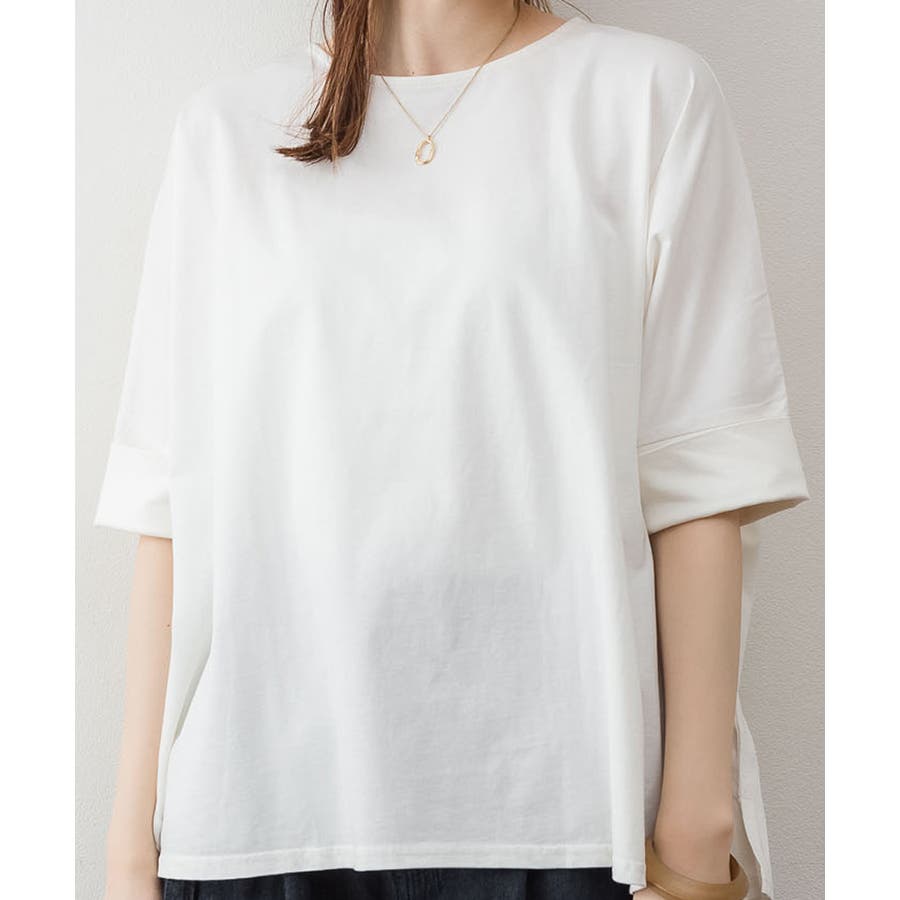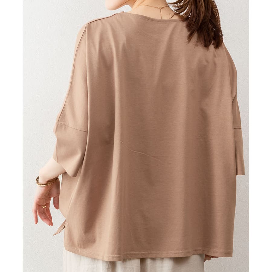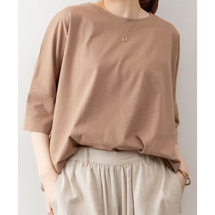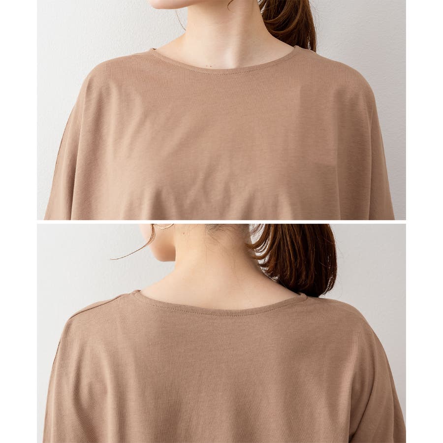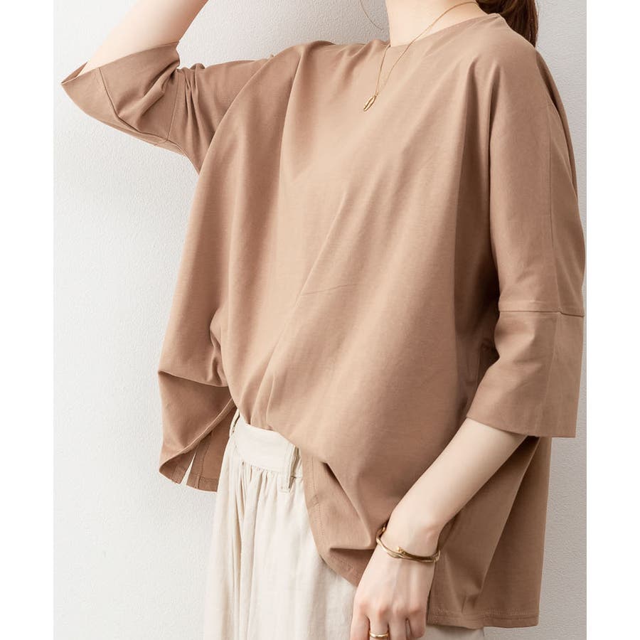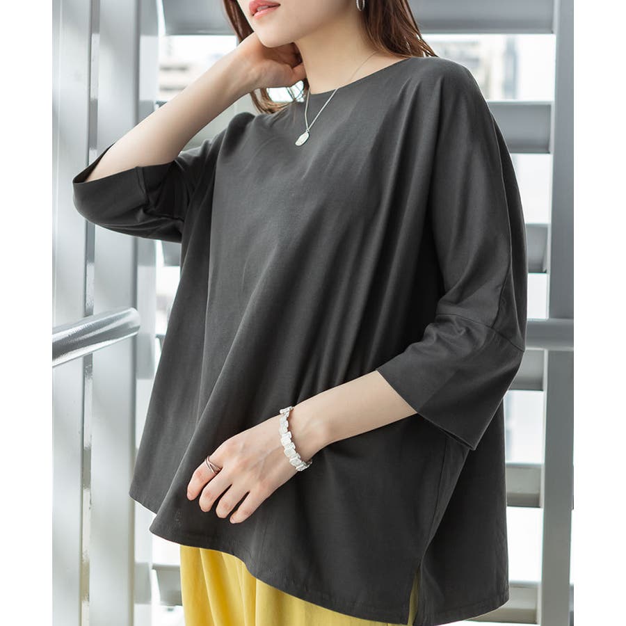 ドルマンシルエットのゆったり身幅で着心地楽ちんで、オーバサイズだからすっきり軽やかに着られる。