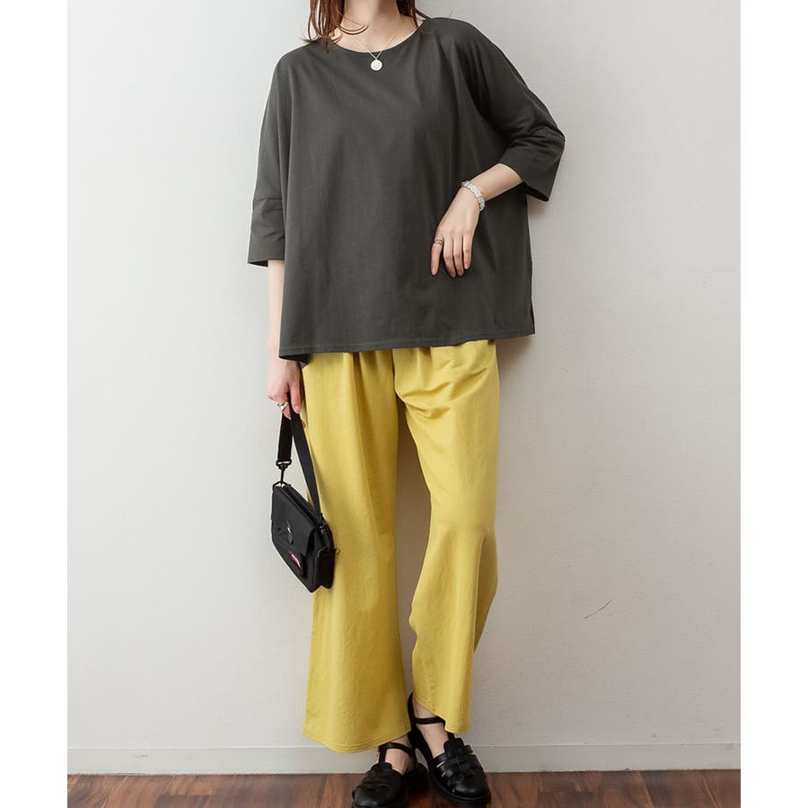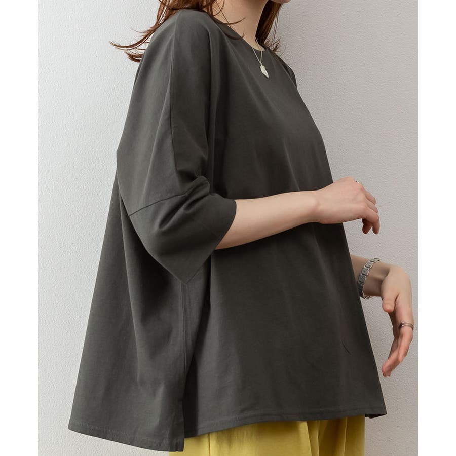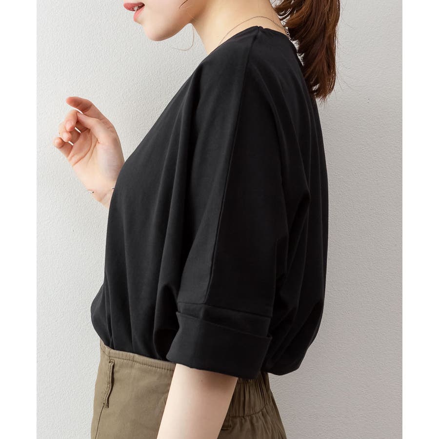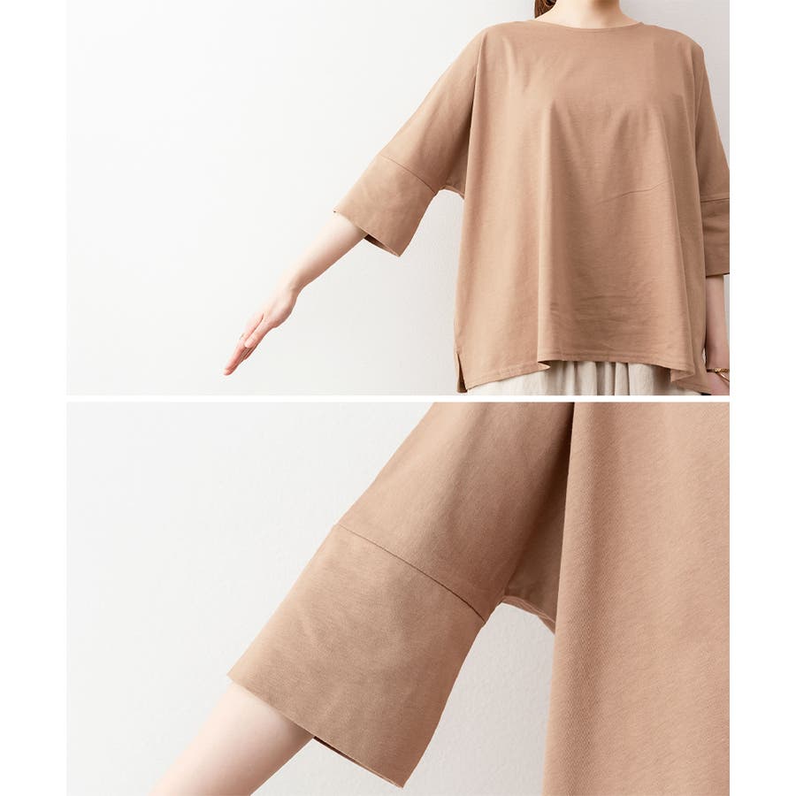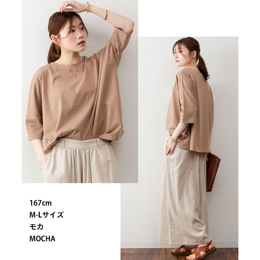 ドルマンシルエットのゆったり身幅で着心地楽ちんで、オーバサイズだからすっきり軽やかに着られる。