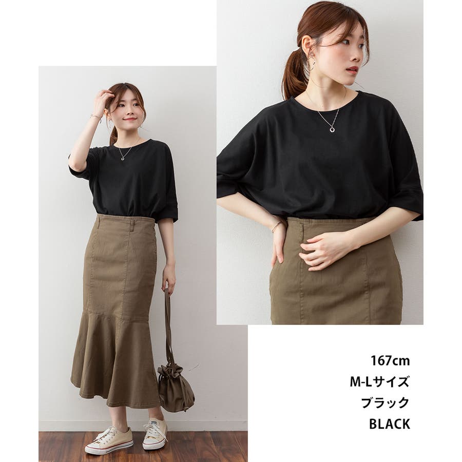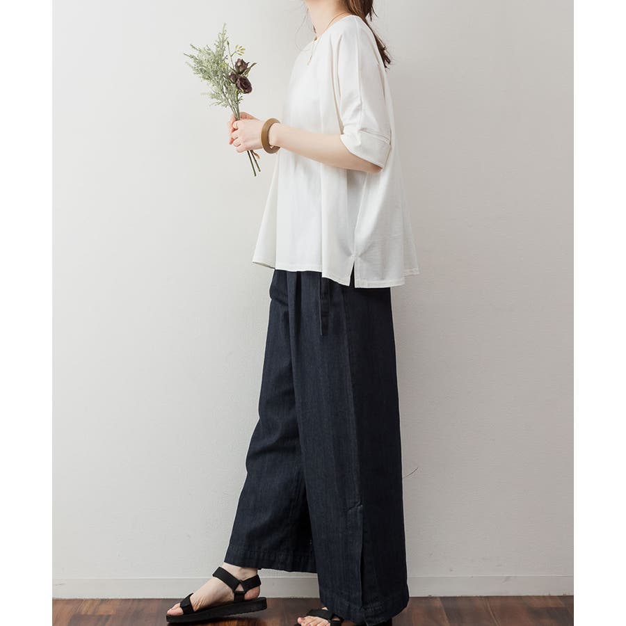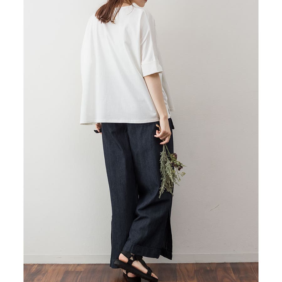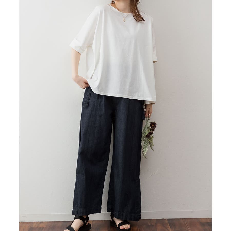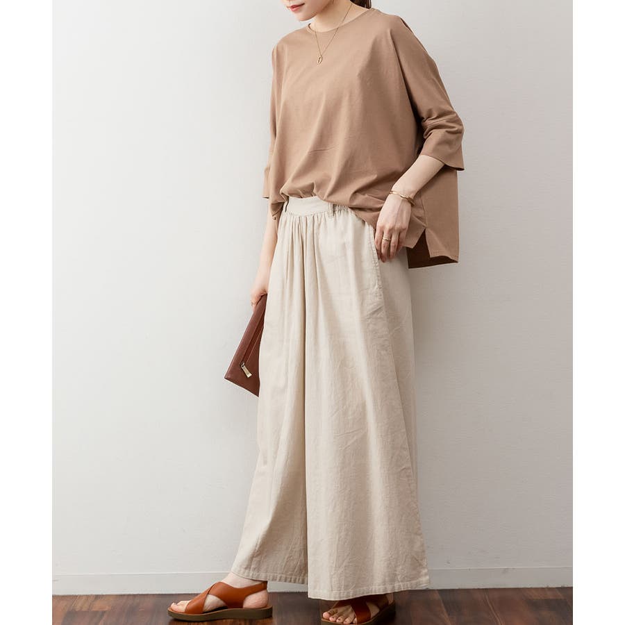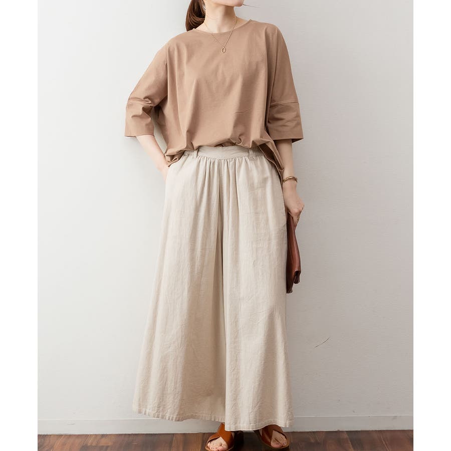 ドルマンシルエットのゆったり身幅で着心地楽ちんで、オーバサイズだからすっきり軽やかに着られる。