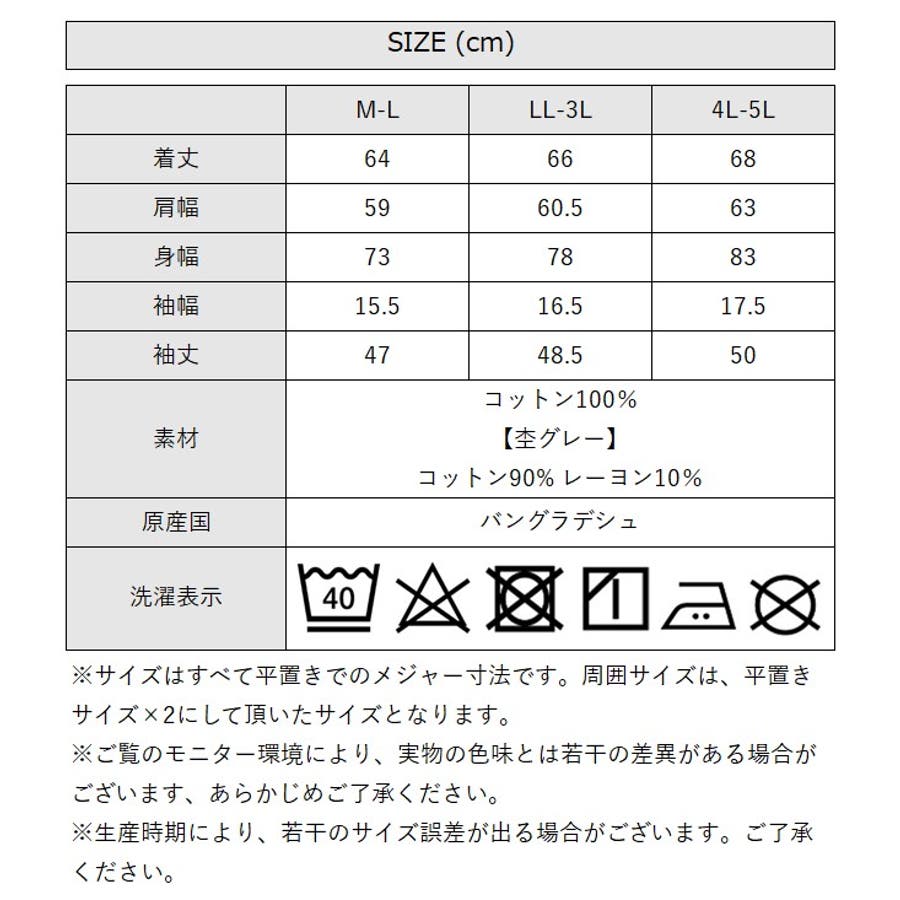 [LL-3Lサイズ]着丈:66cm、肩幅:60.5cm、身幅:78cm、袖幅:16.5cm、袖丈:48.5cm