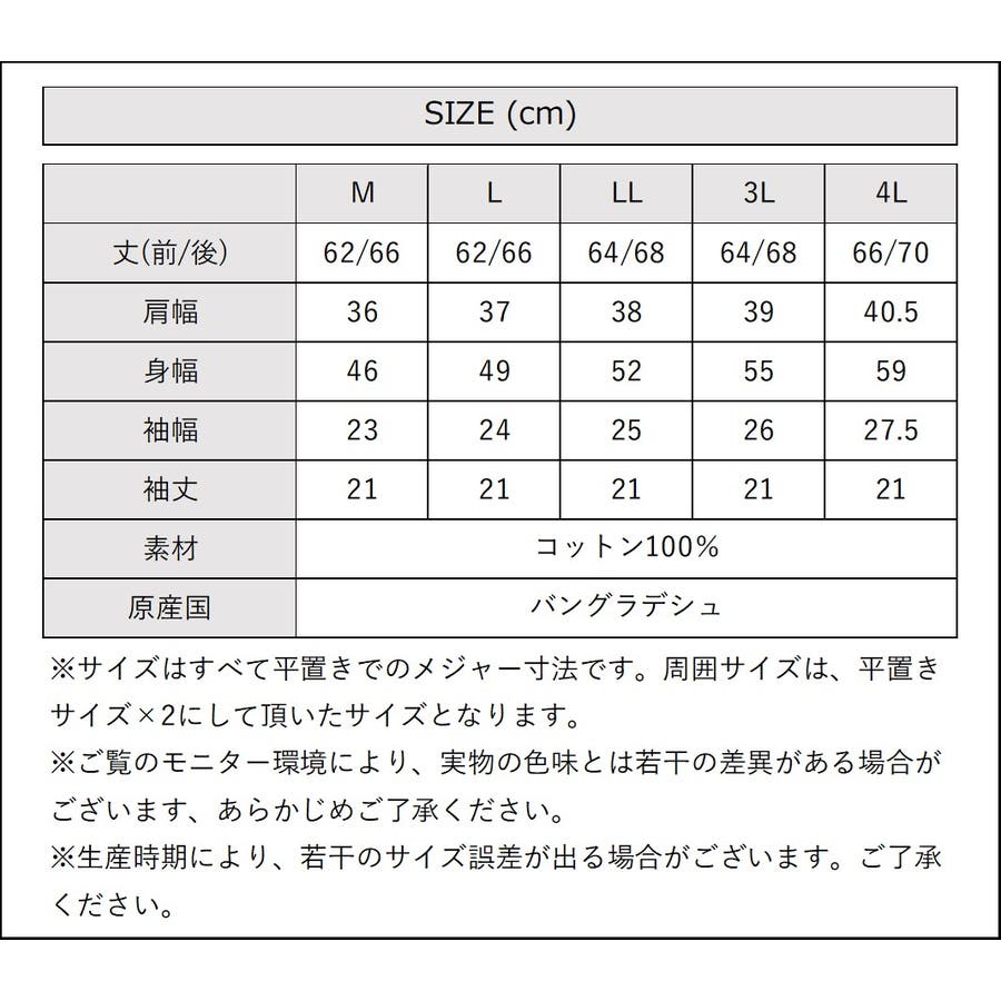 [3Lサイズ]丈(前/後):64/68cm、身幅:55cm、裾幅:55cm、袖ぐり:26cm、袖丈:21cm、袖口幅:24cm