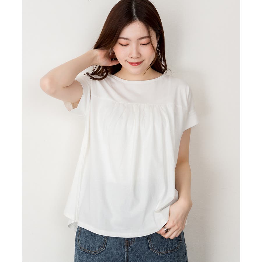 フロントのギャザーがアクセントになったプルオーバー。