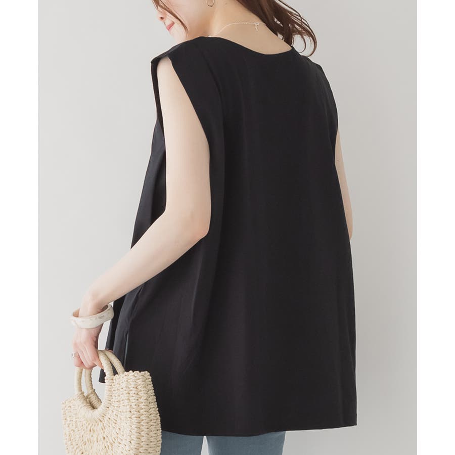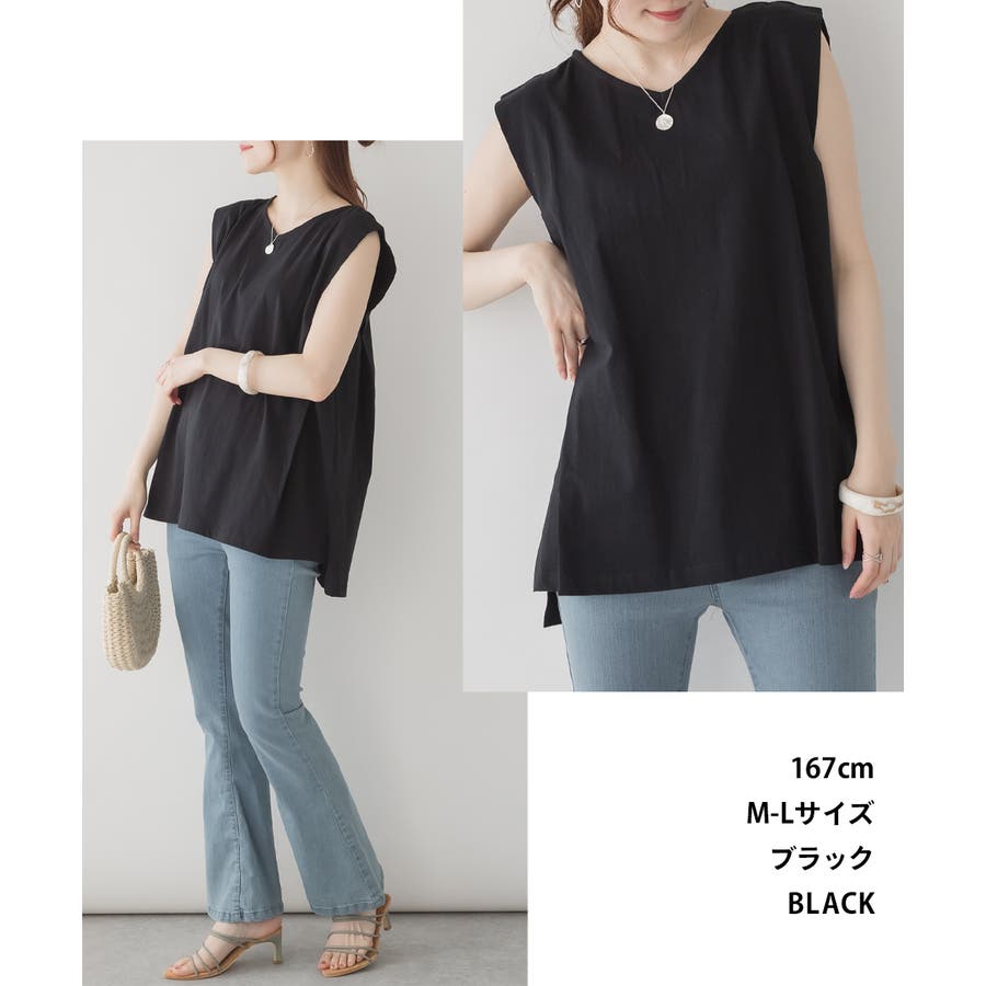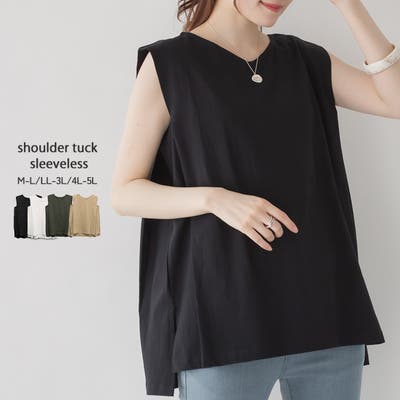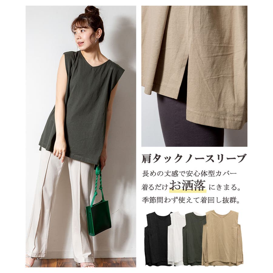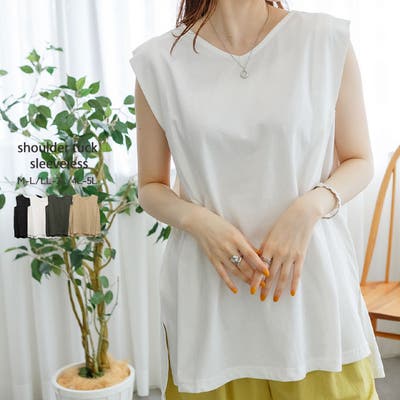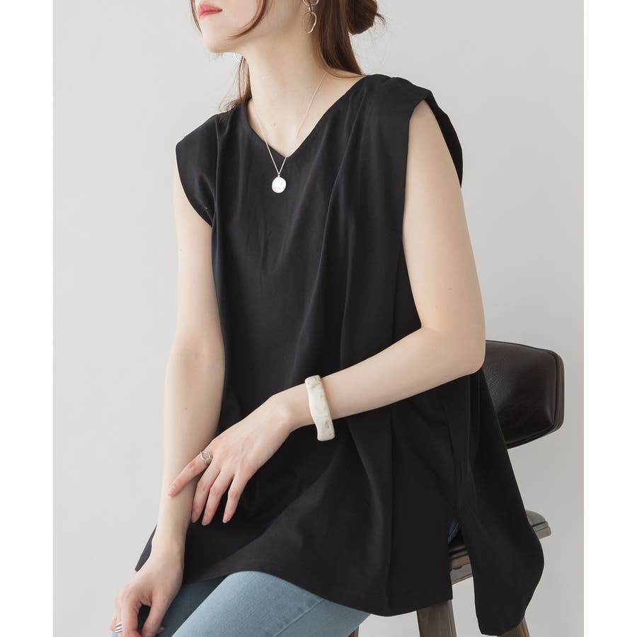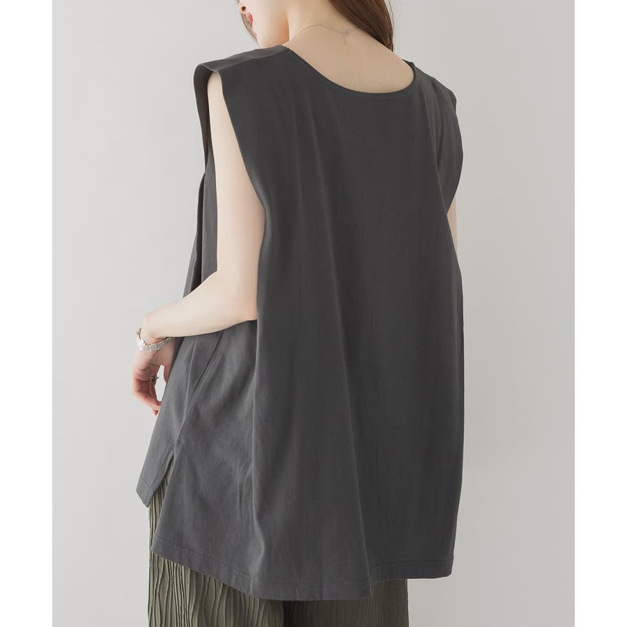 パワーショルダーなシルエットが旬な印象のノースリーブカットソー。