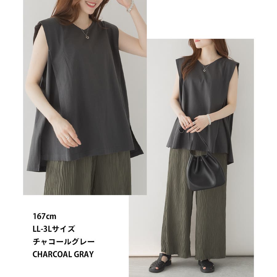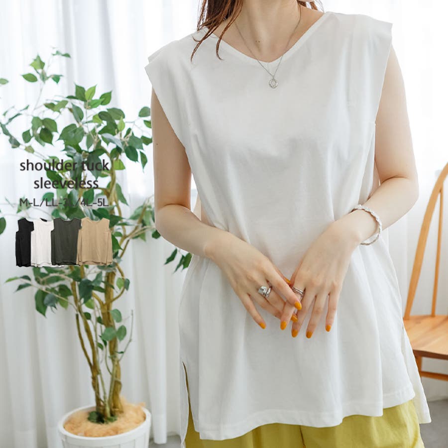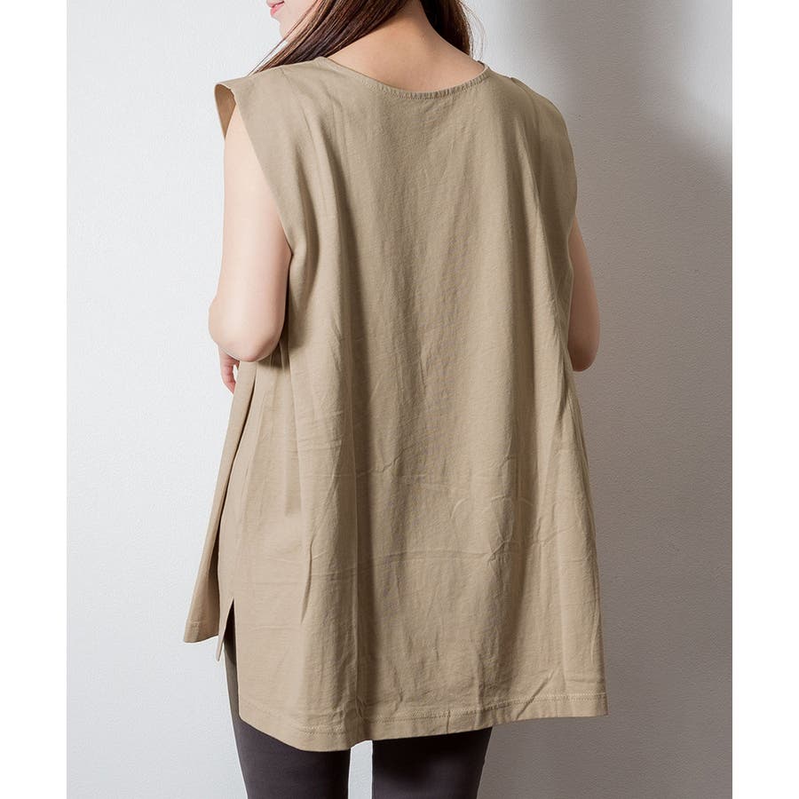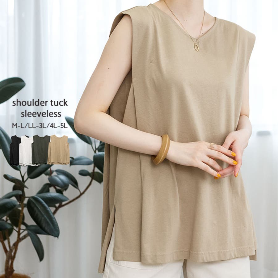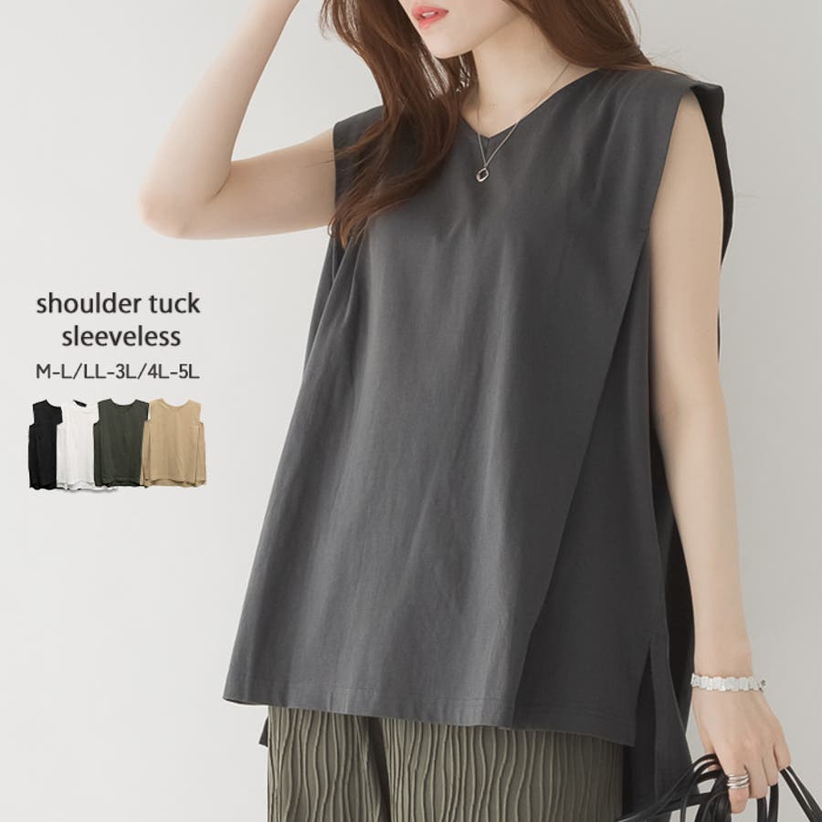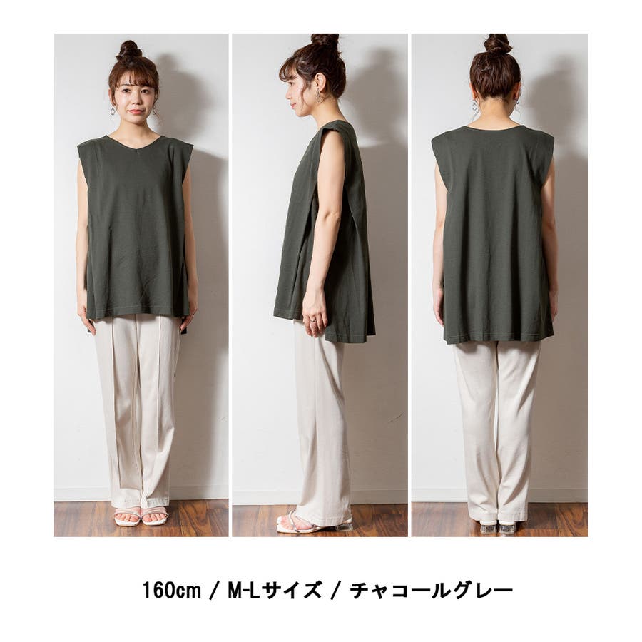 パワーショルダーなシルエットが旬な印象のノースリーブカットソー。