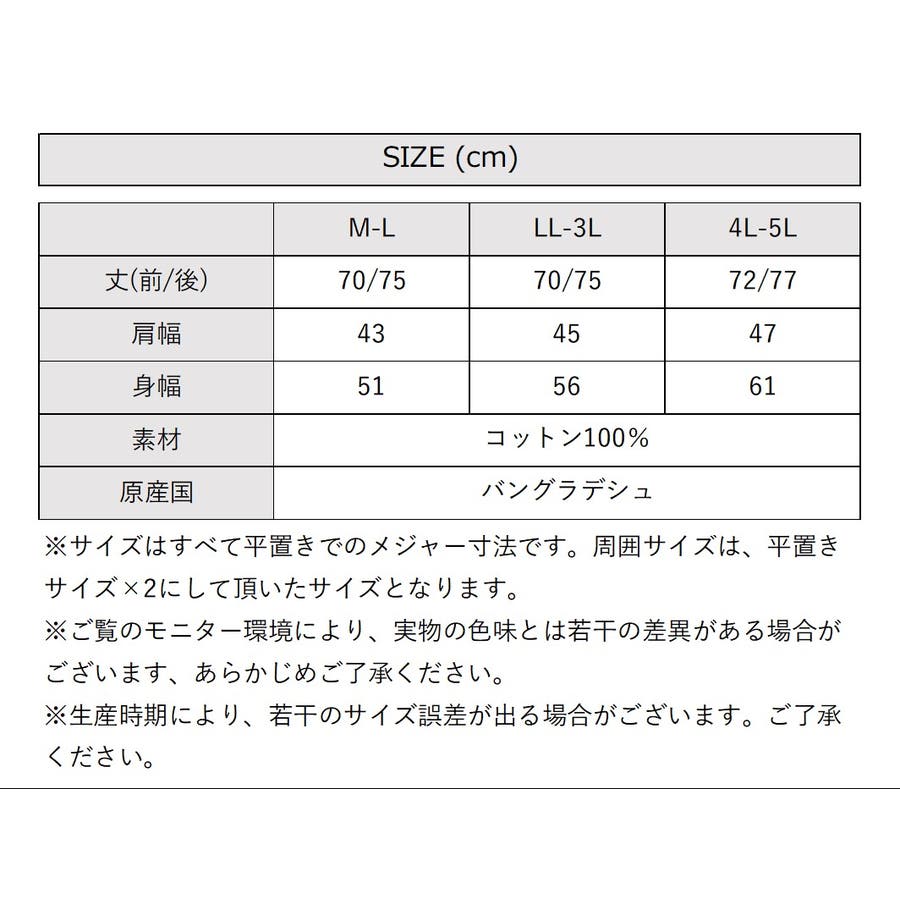[LL-3Lサイズ]丈(前/後):70/75cm、肩幅:45cm、身幅:56cm、裾幅:56/77.5cm