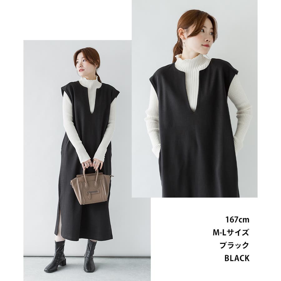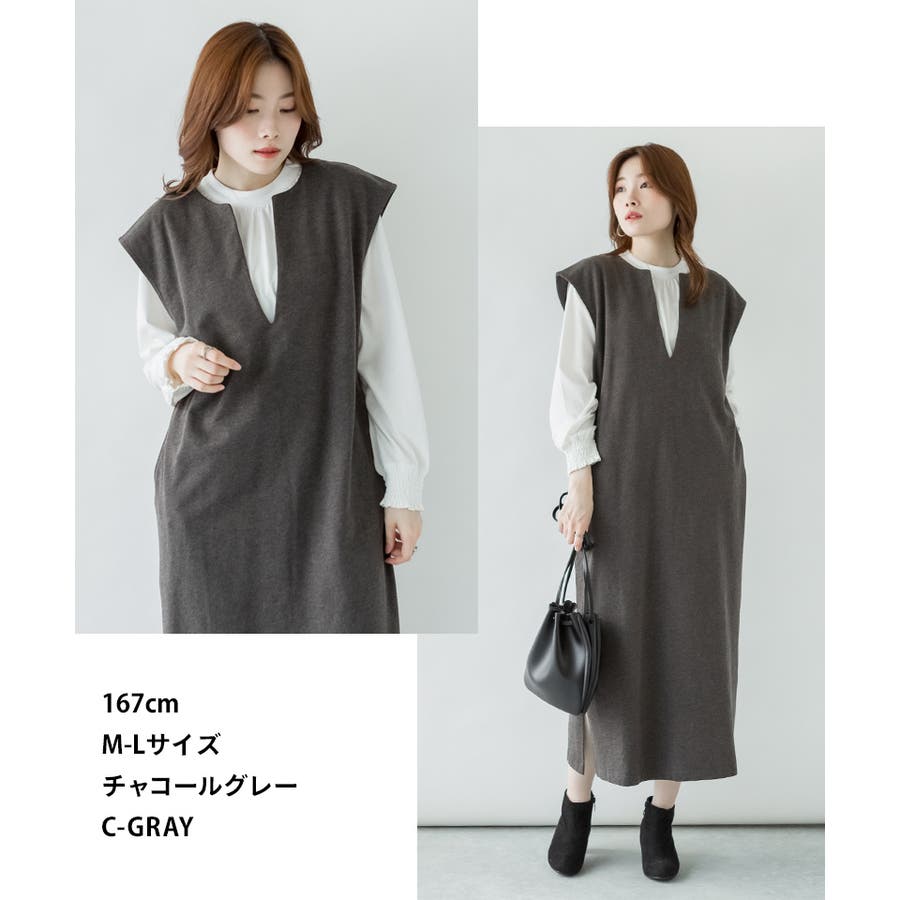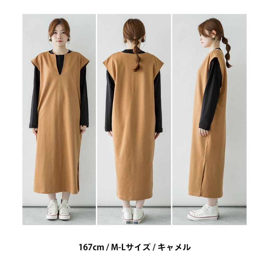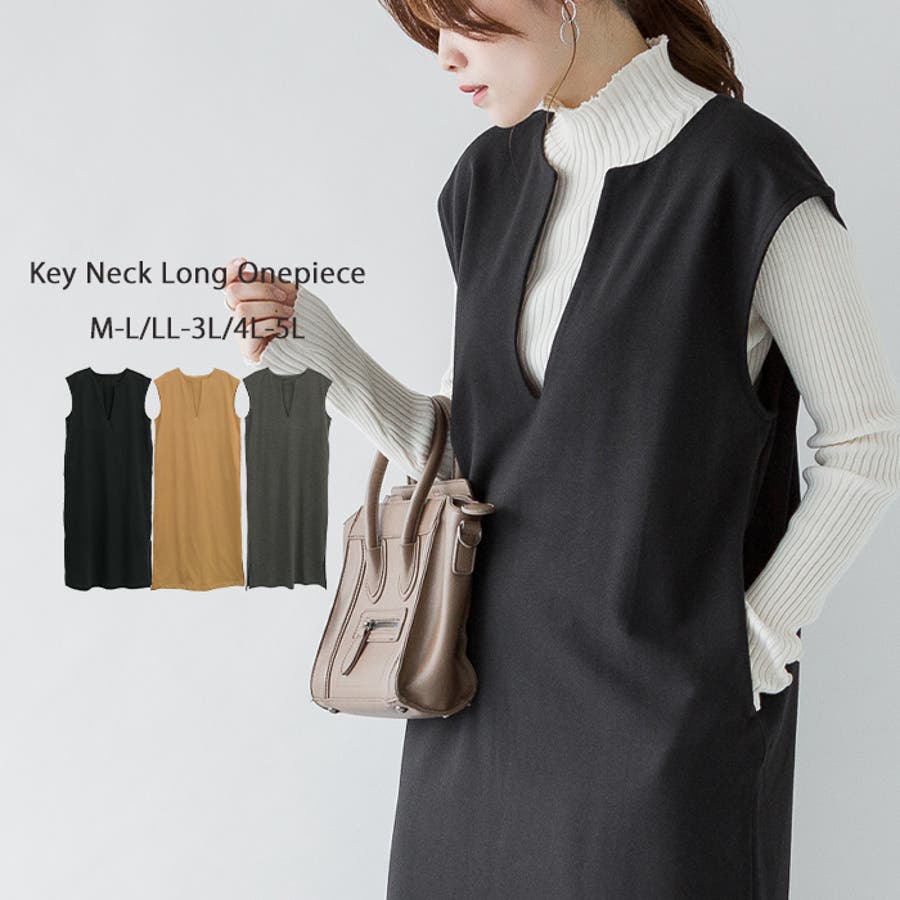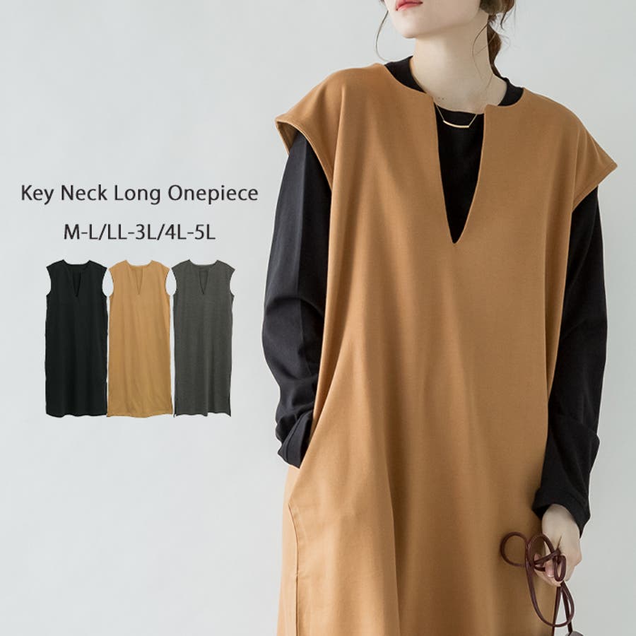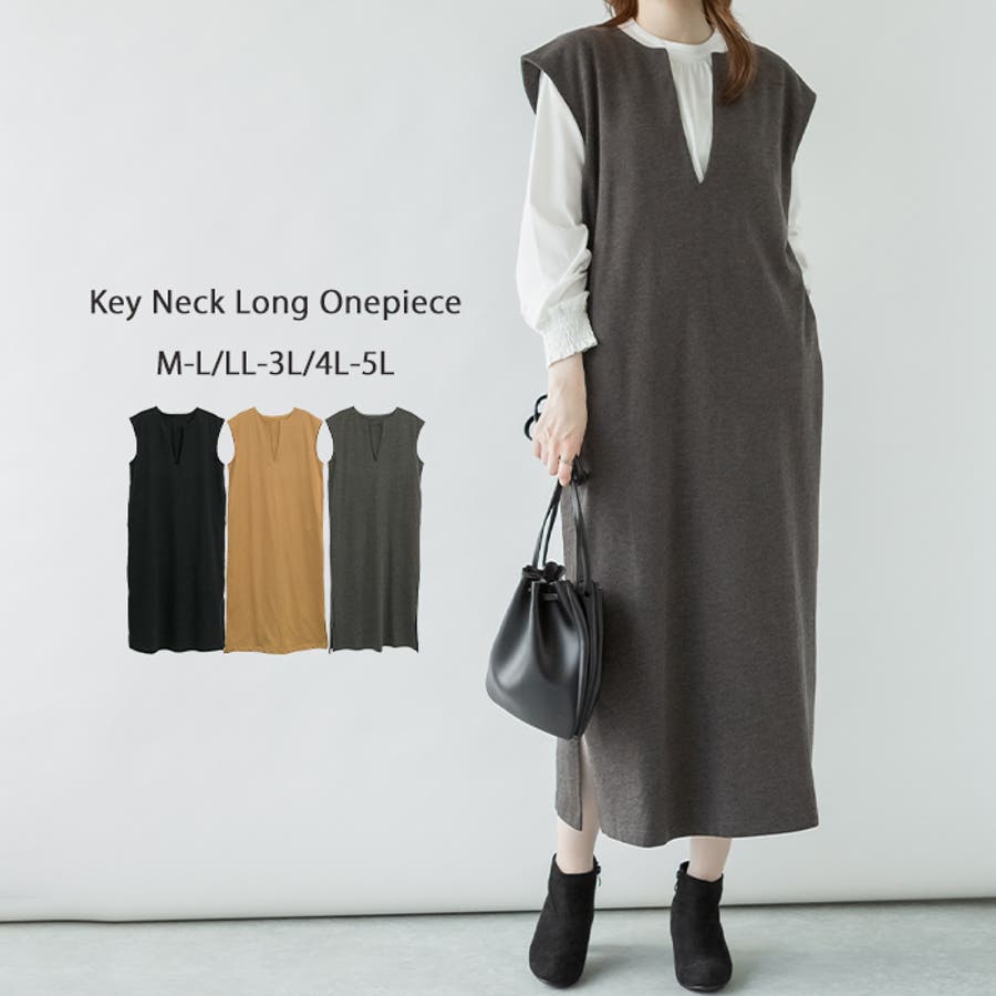キーネックロングワンピース