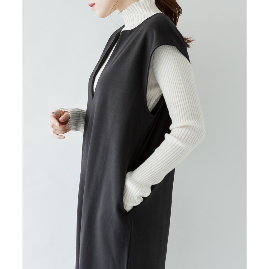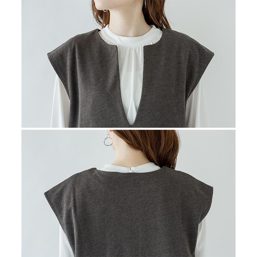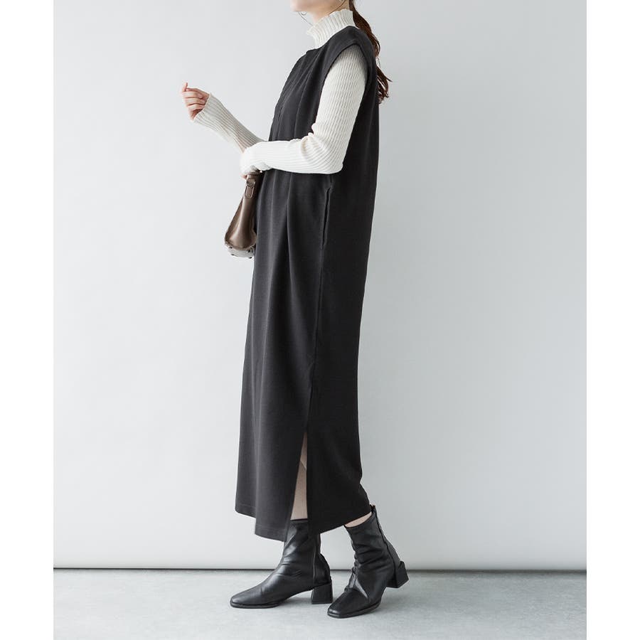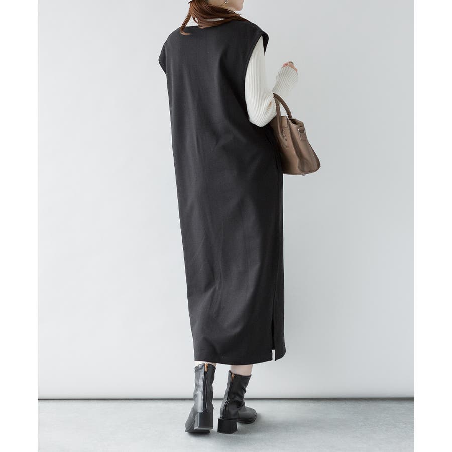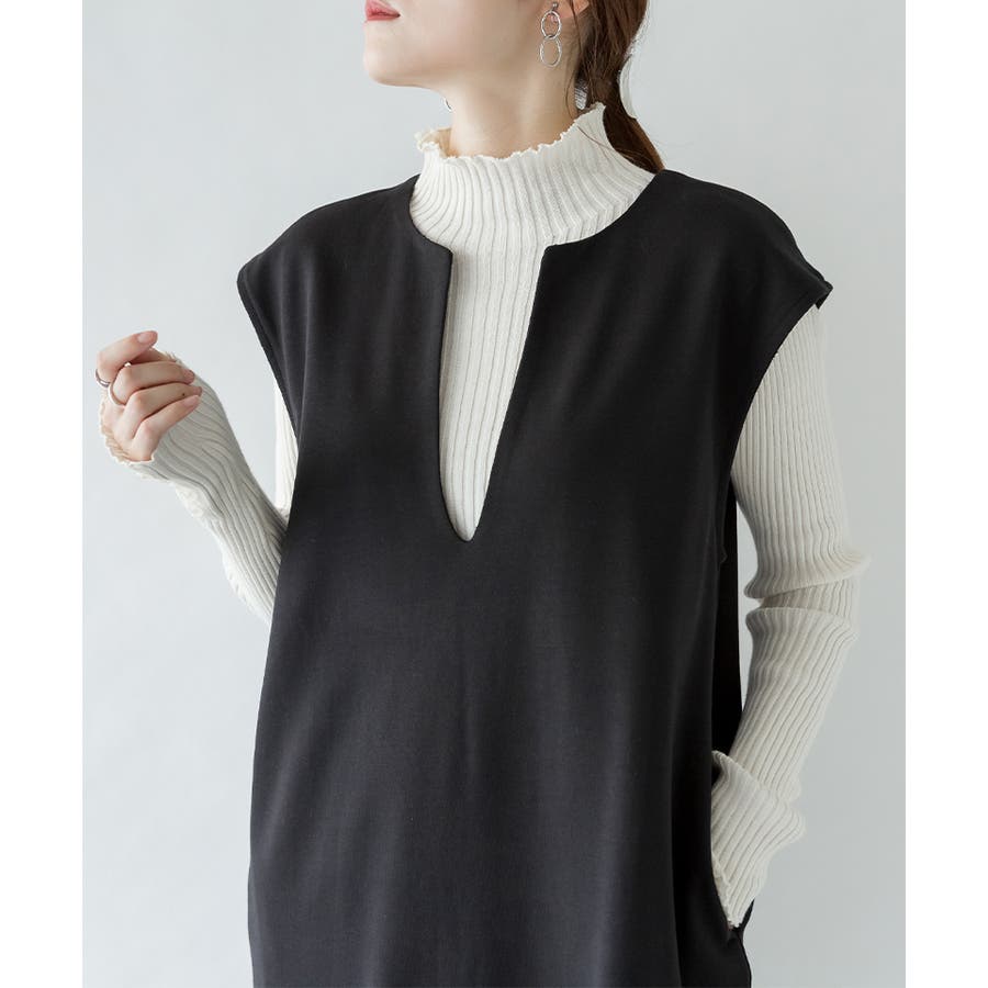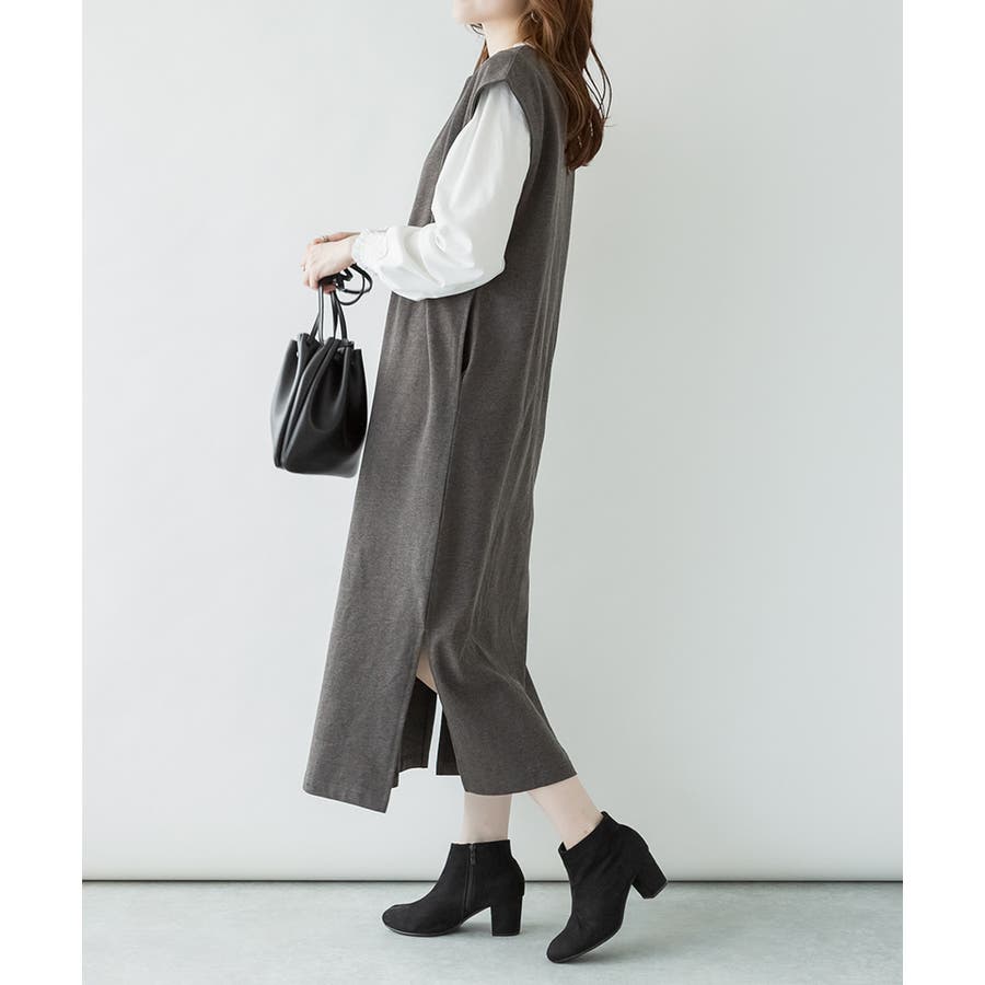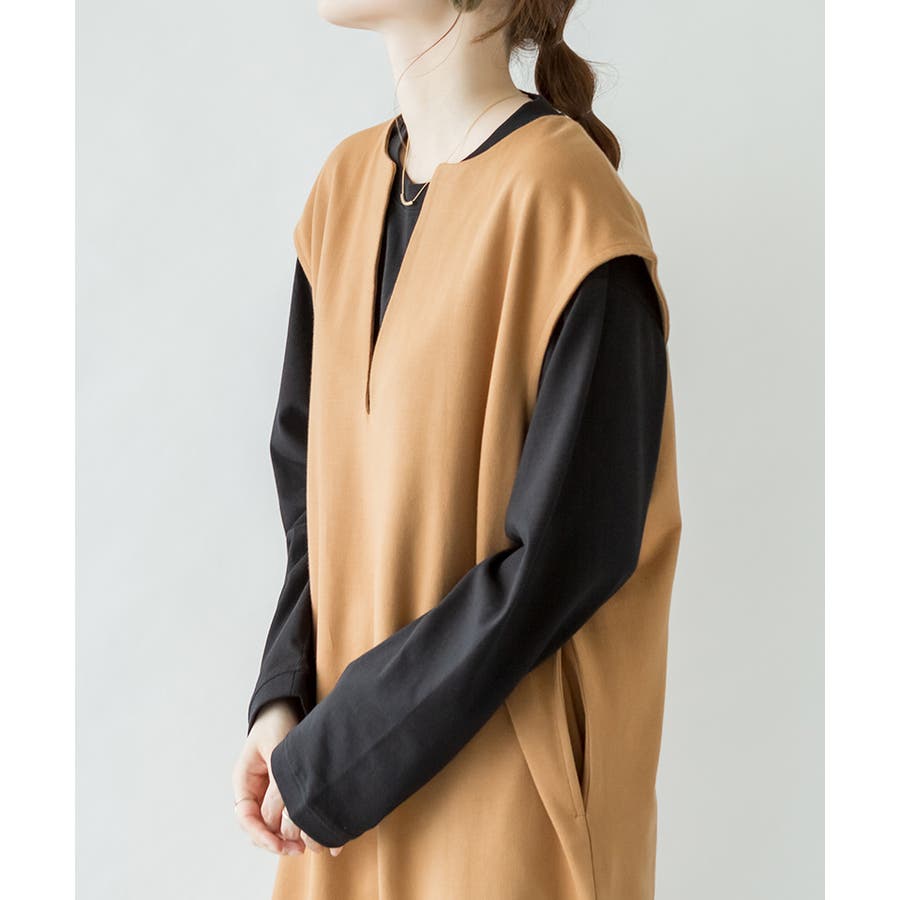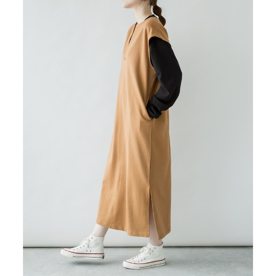 トップスとの合わせが楽しめる、キーネックロングワンピース。