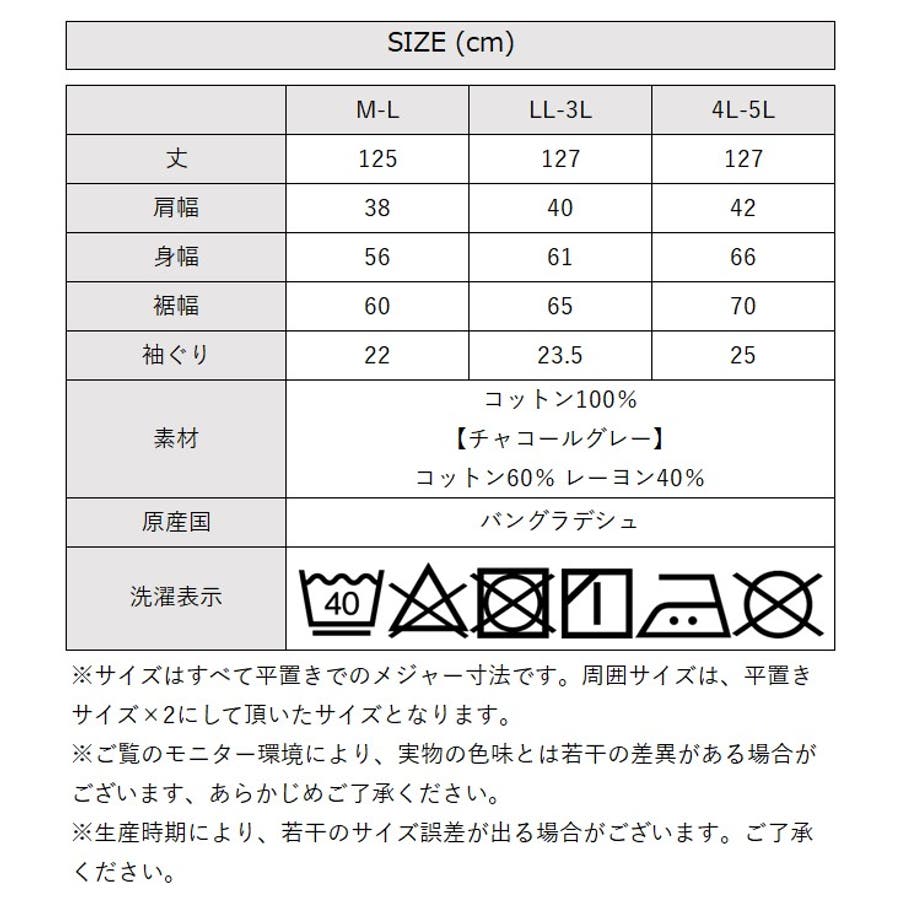 [LL-3Lサイズ]丈:127cm、肩幅:40cm、身幅:61cm、裾幅:65cm、袖ぐり:23.5cm