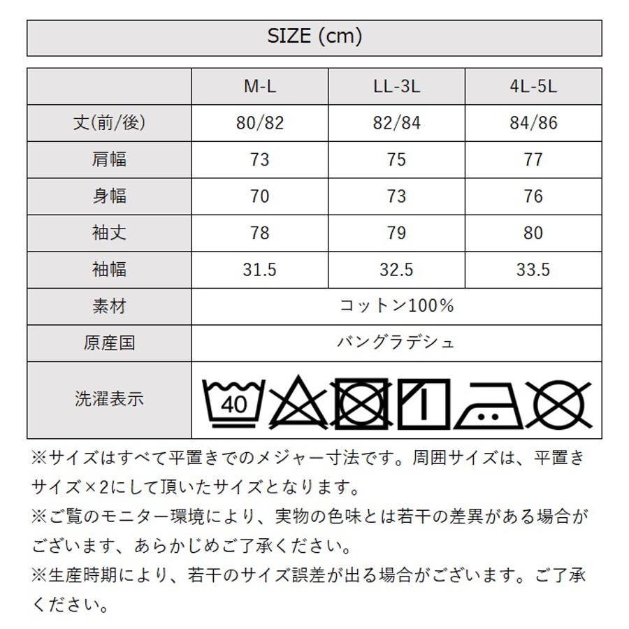 [LL-3Lサイズ]丈(前後):82/84cm、肩幅:75cm、身幅:73cm、袖丈:79cm、袖幅:32.5cm