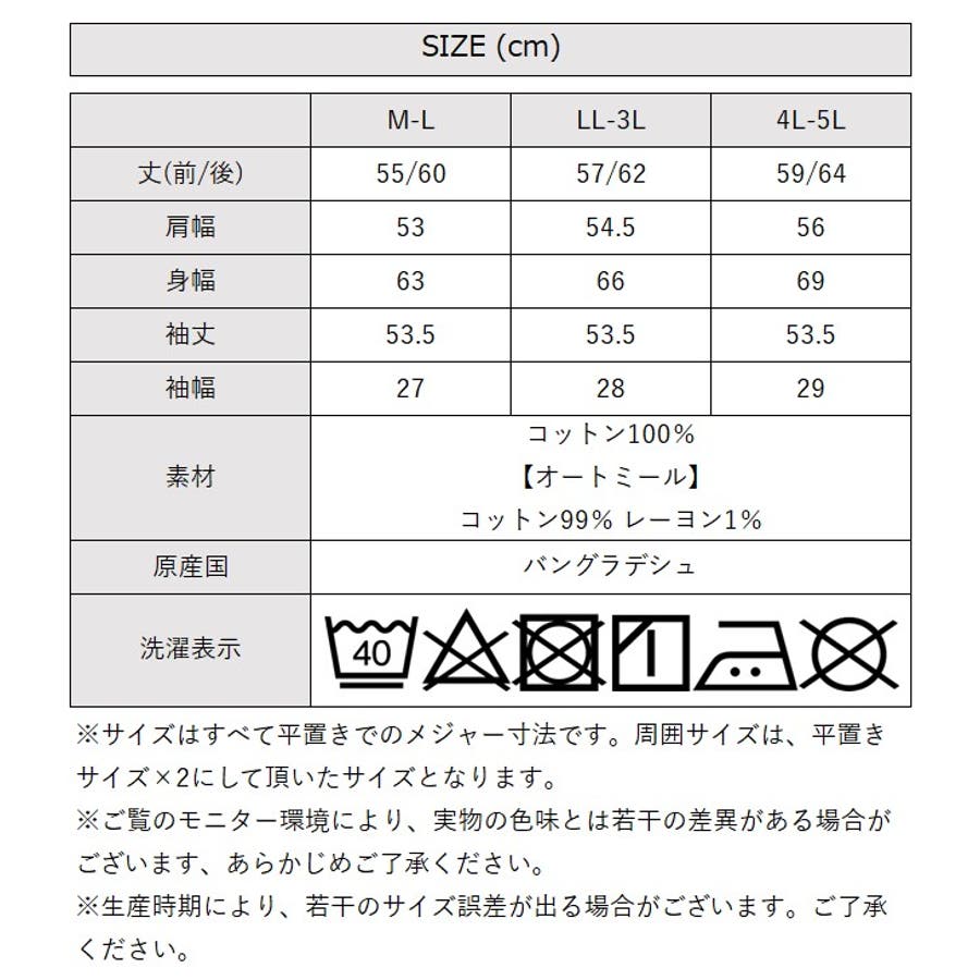 [4L-5Lサイズ]丈(前後):59/64cm、肩幅:56cm、身幅:69cm、袖丈:53.5cm、袖幅:29cm