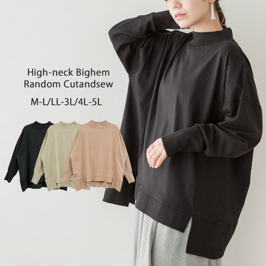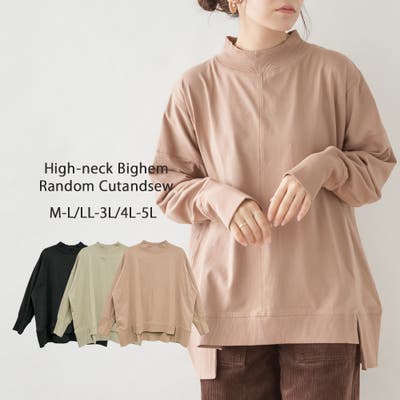 ハイネックビッグヘムランダムカットソー