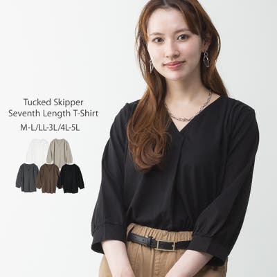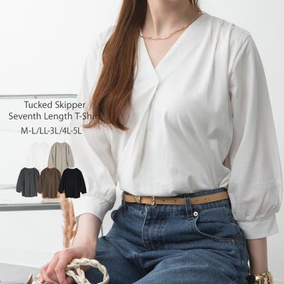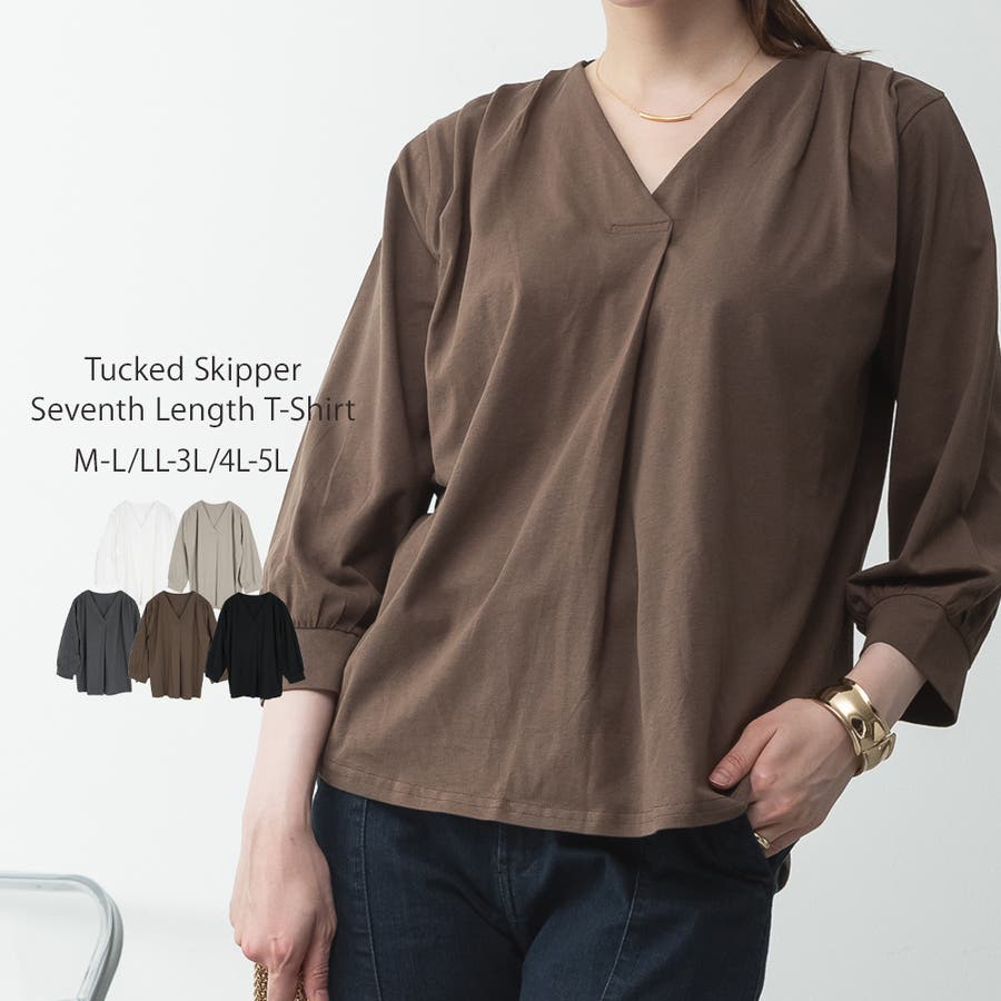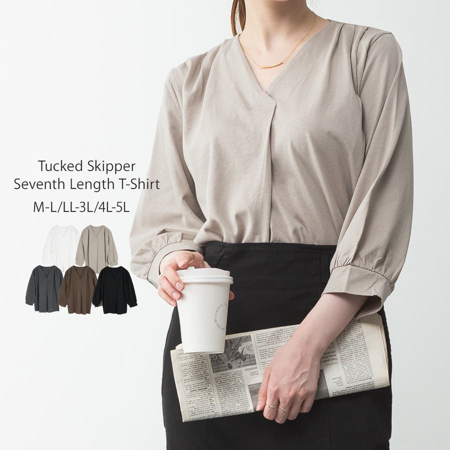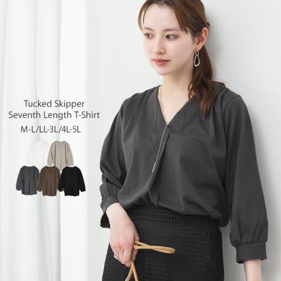 ブラウス風タックスキッパー 七分丈Tシャツ