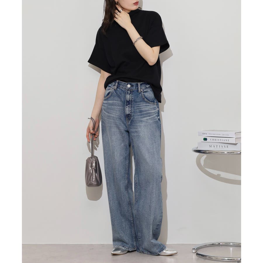 シンプルにカーブデニムパンツ(ジーンズ)やイージーパンツ、ワイドパンツに合わせるカジュアルスタイルも◎