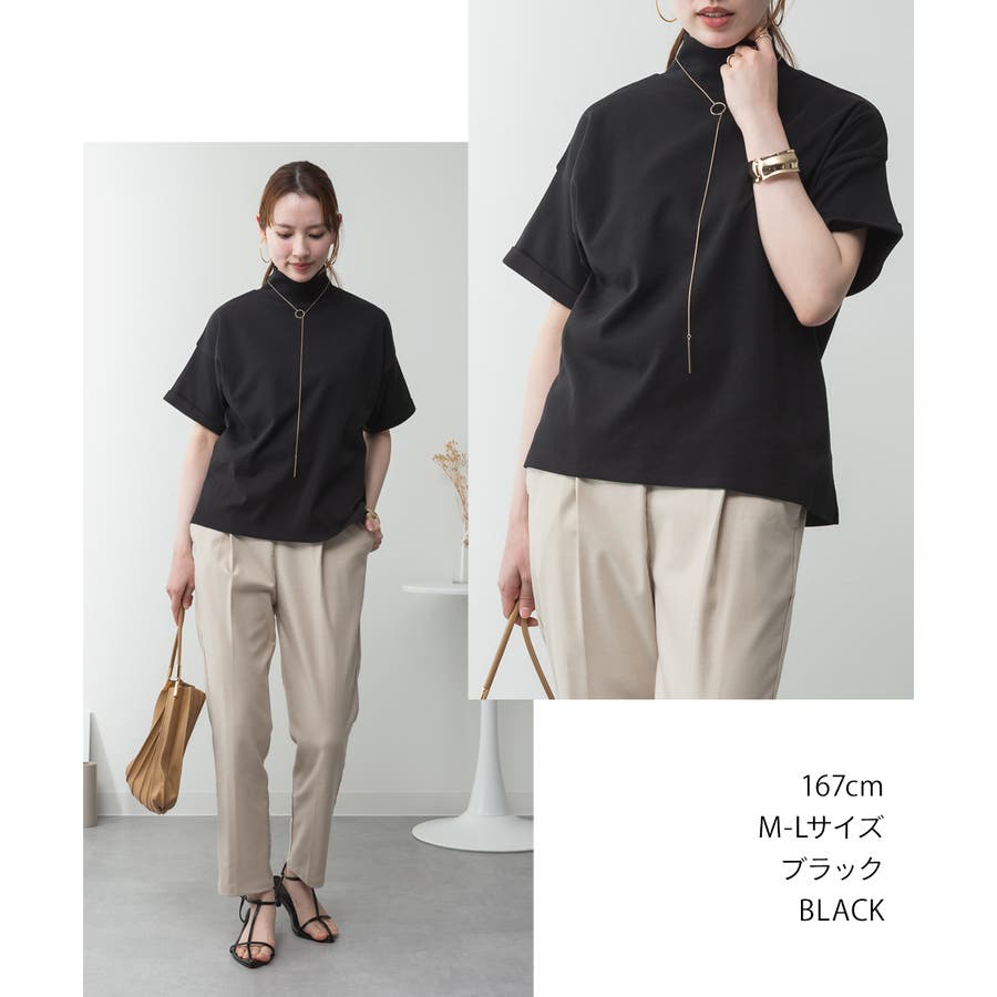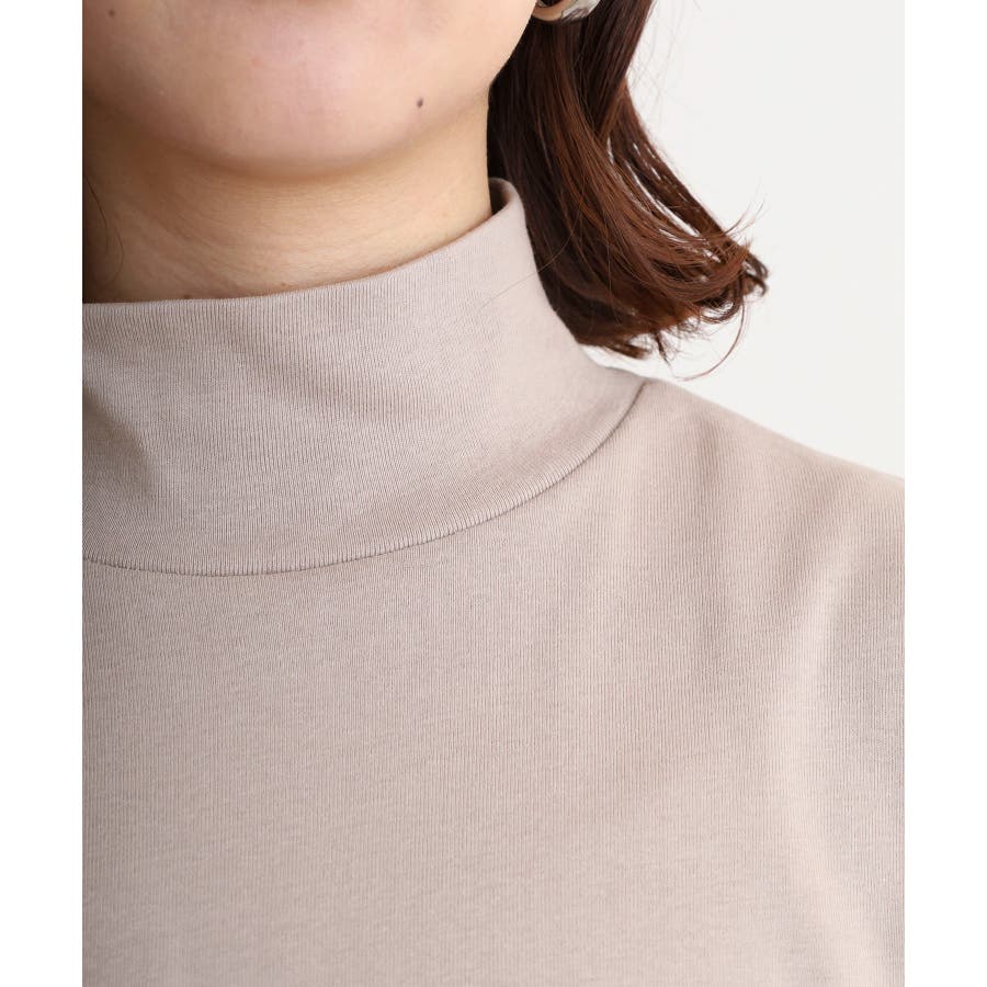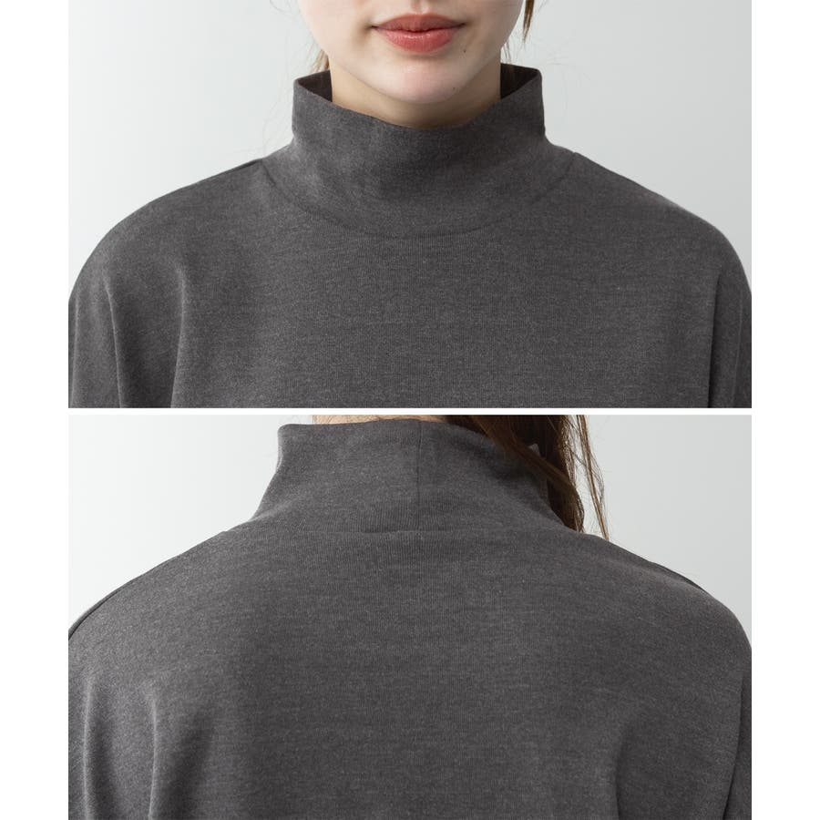 程よい高さのハイネックデザインが首元をすっきりと見せ、1枚での着用はもちろん、レイヤードスタイルにも活躍。
