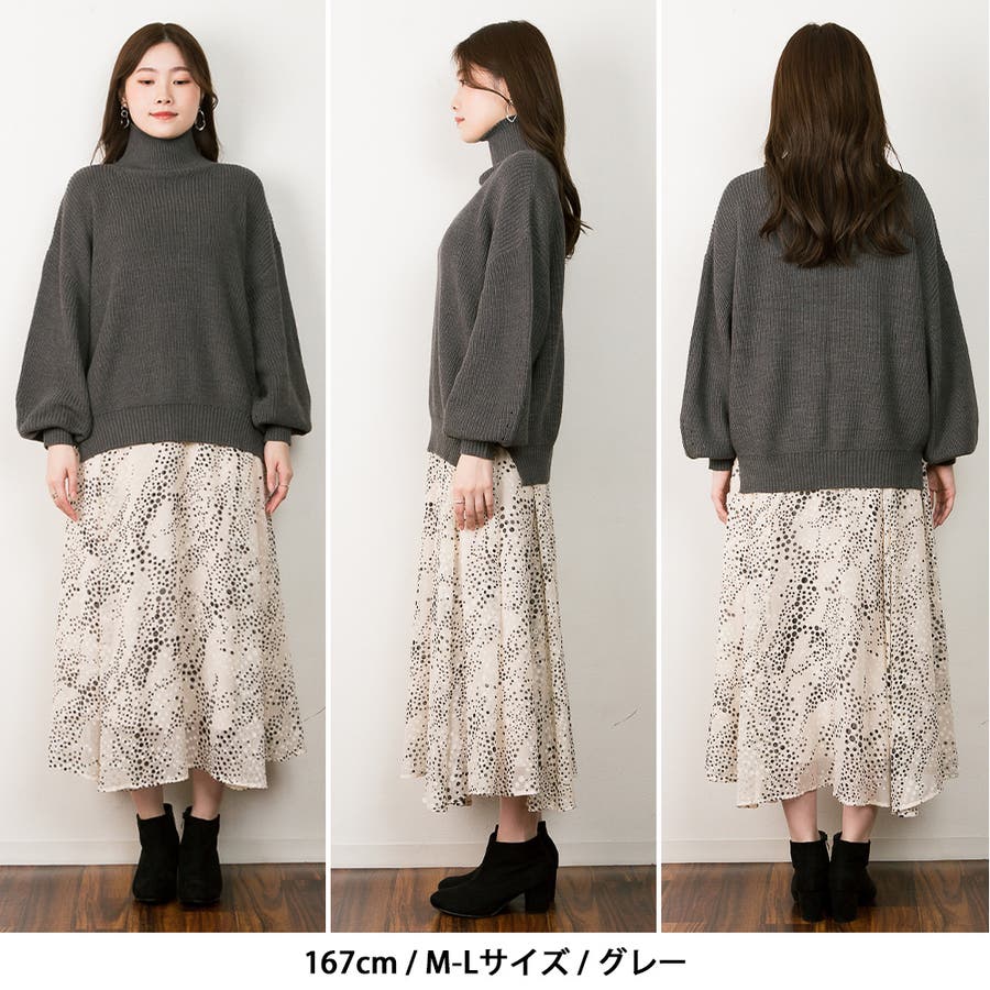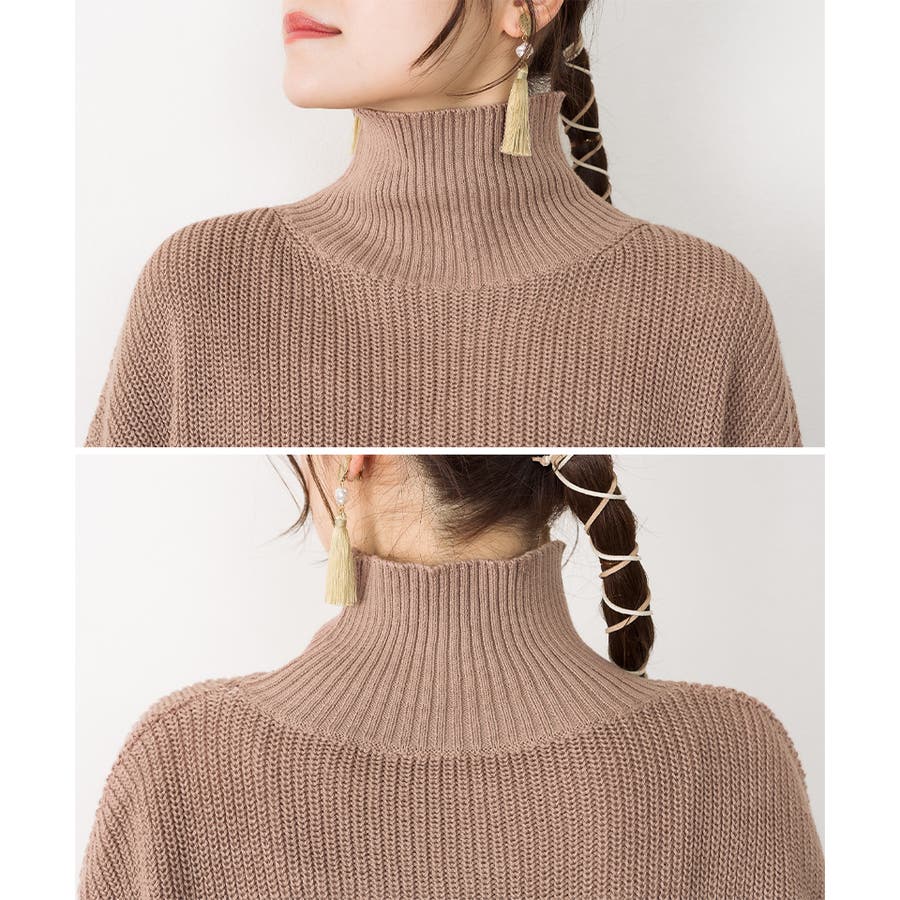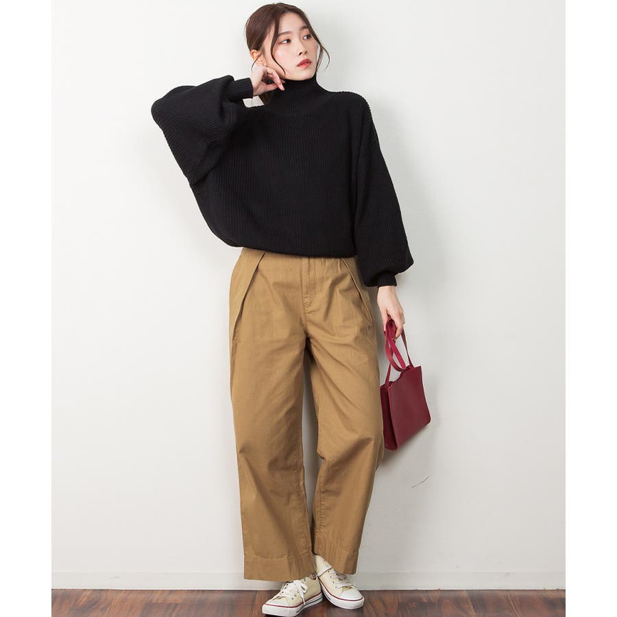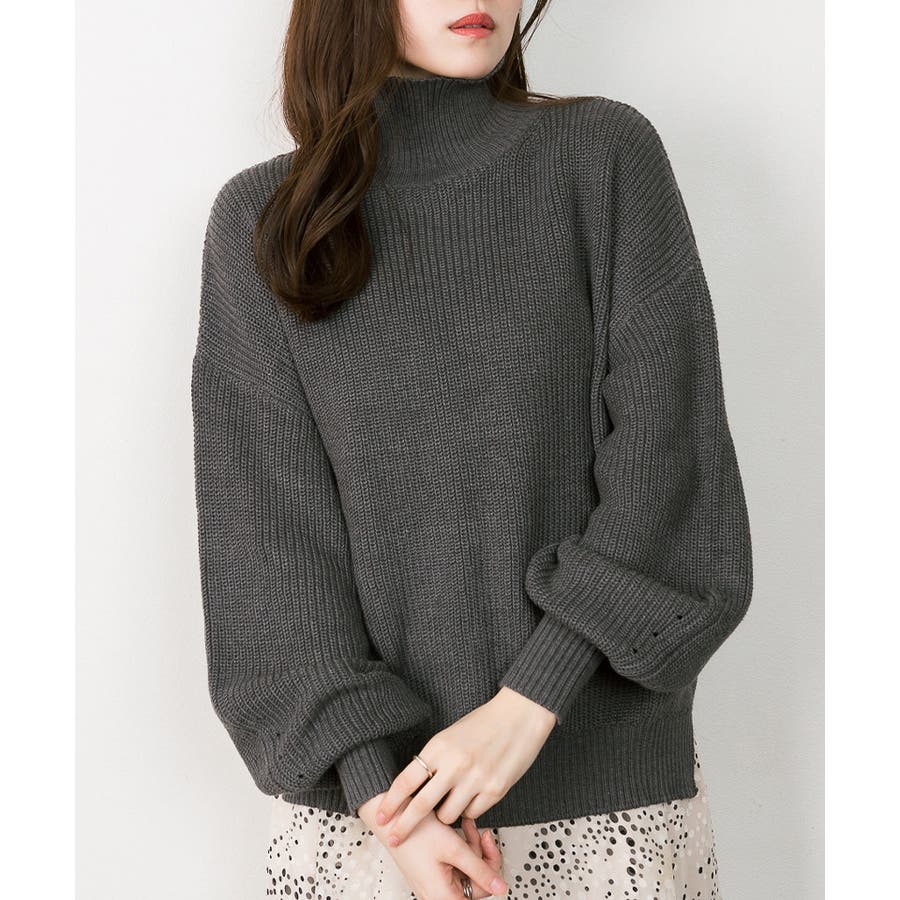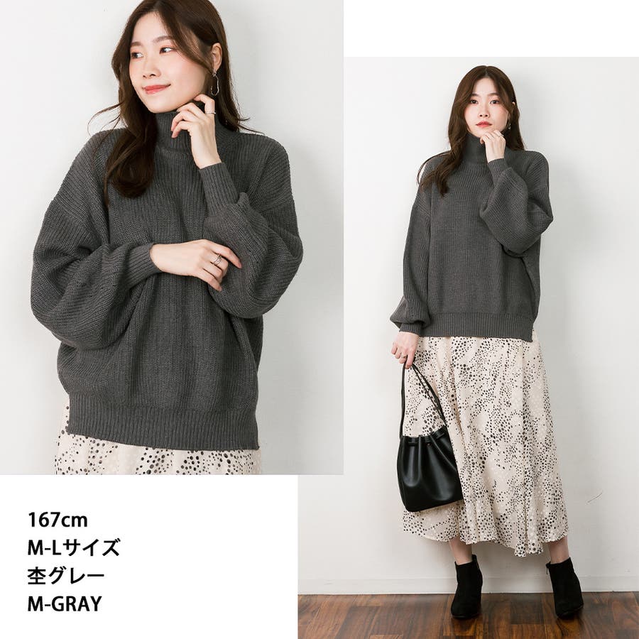 寒い季節に温かさとおしゃれを両立したい方におすすめのタートルネックボリュームニットです。