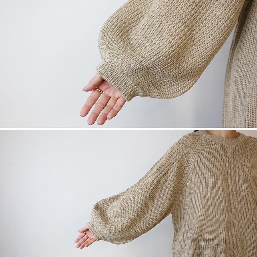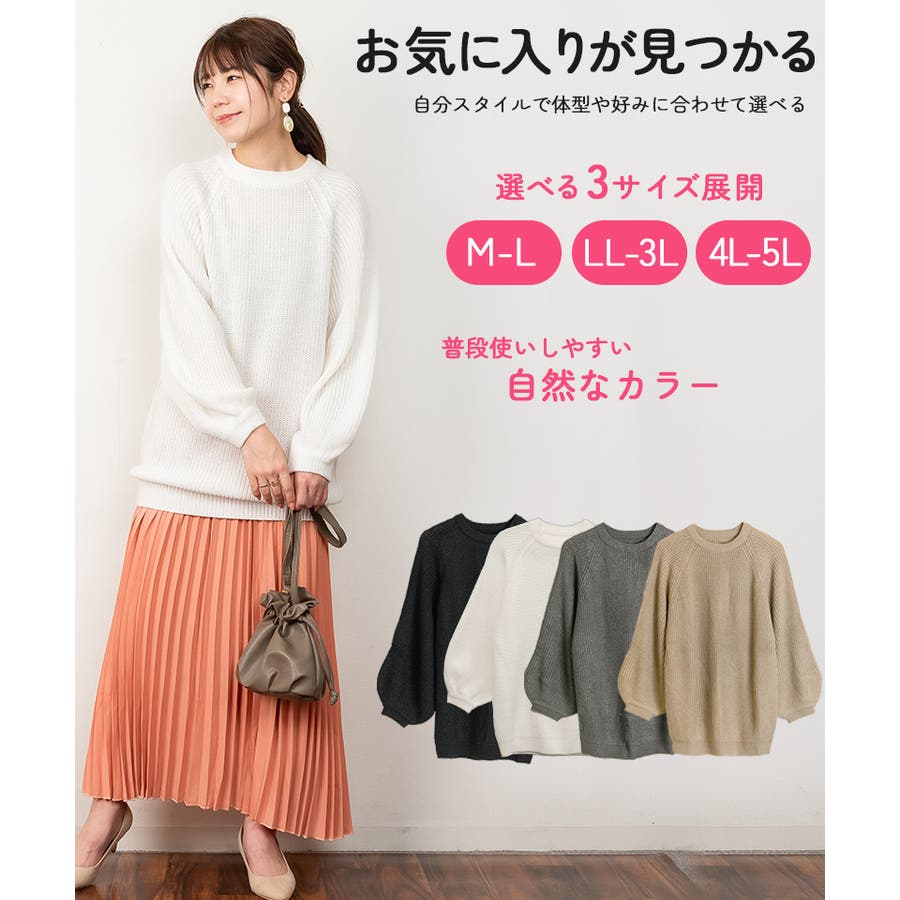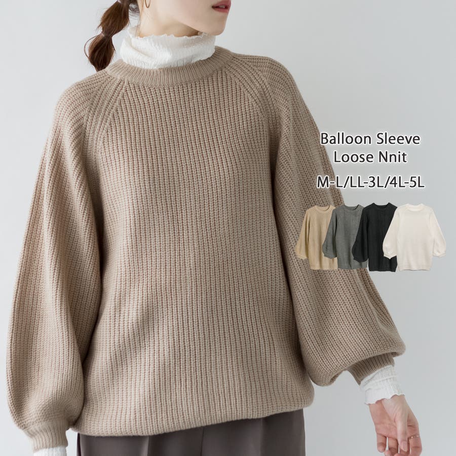 ニット プルオーバー セーター バルーン袖 長袖 ゆるシルエット 冬服 冬コーデ 春コーデ レディース カジュアル ビッグサイズ 体型カバー ビッグシルエット 大きいサイズ M/L/LL/XL/XXL/3L/4Lサイズ ATN-0008