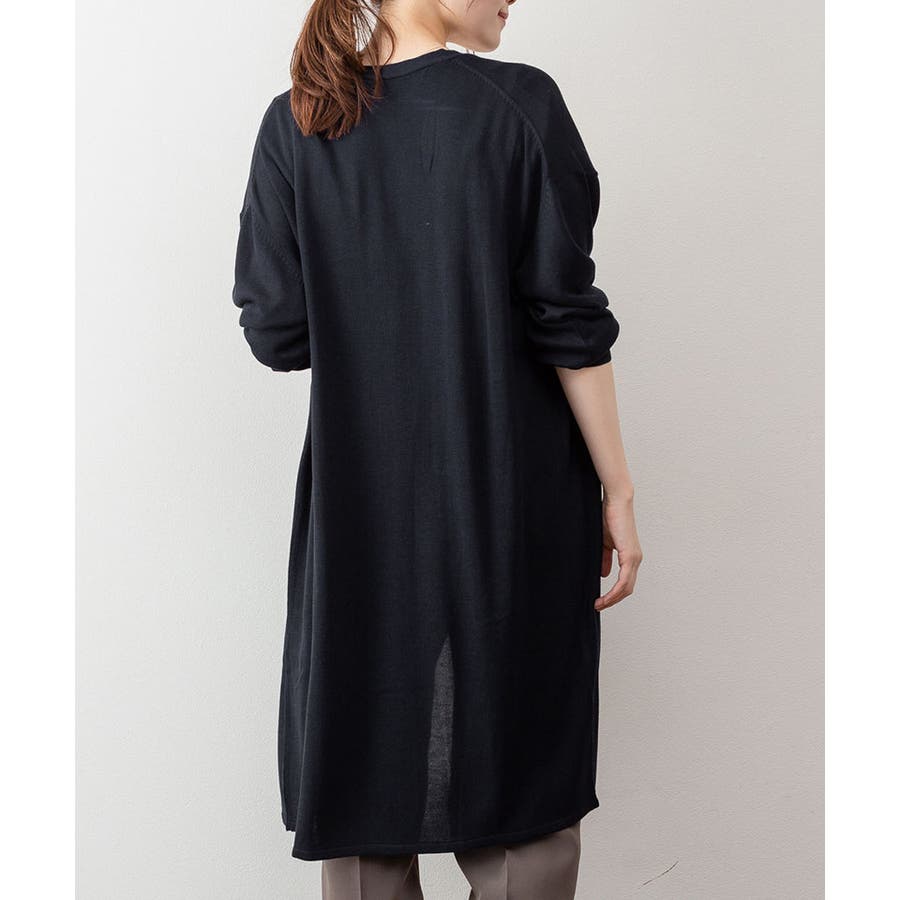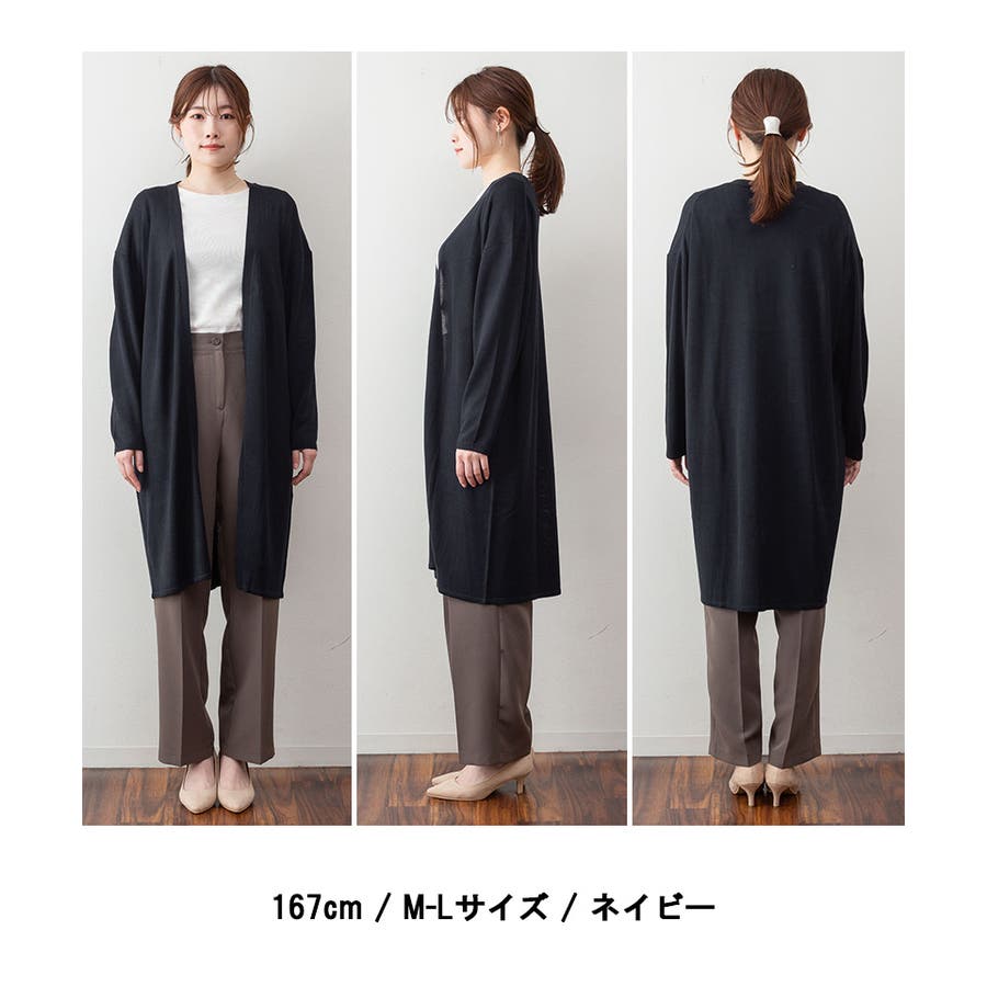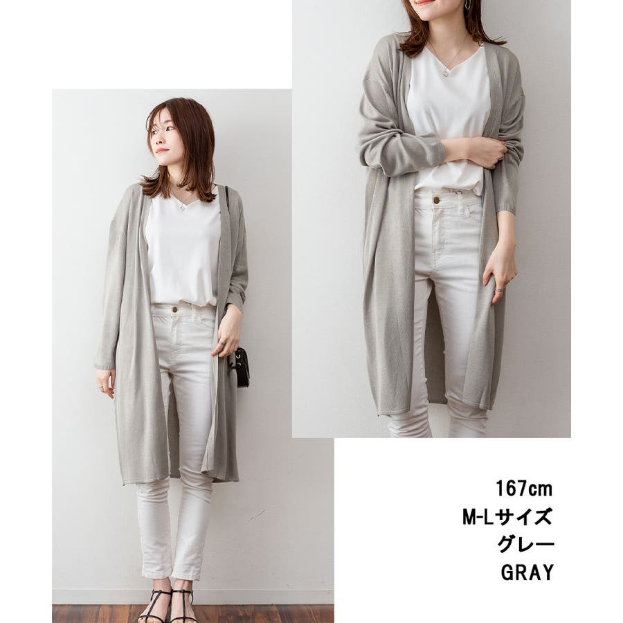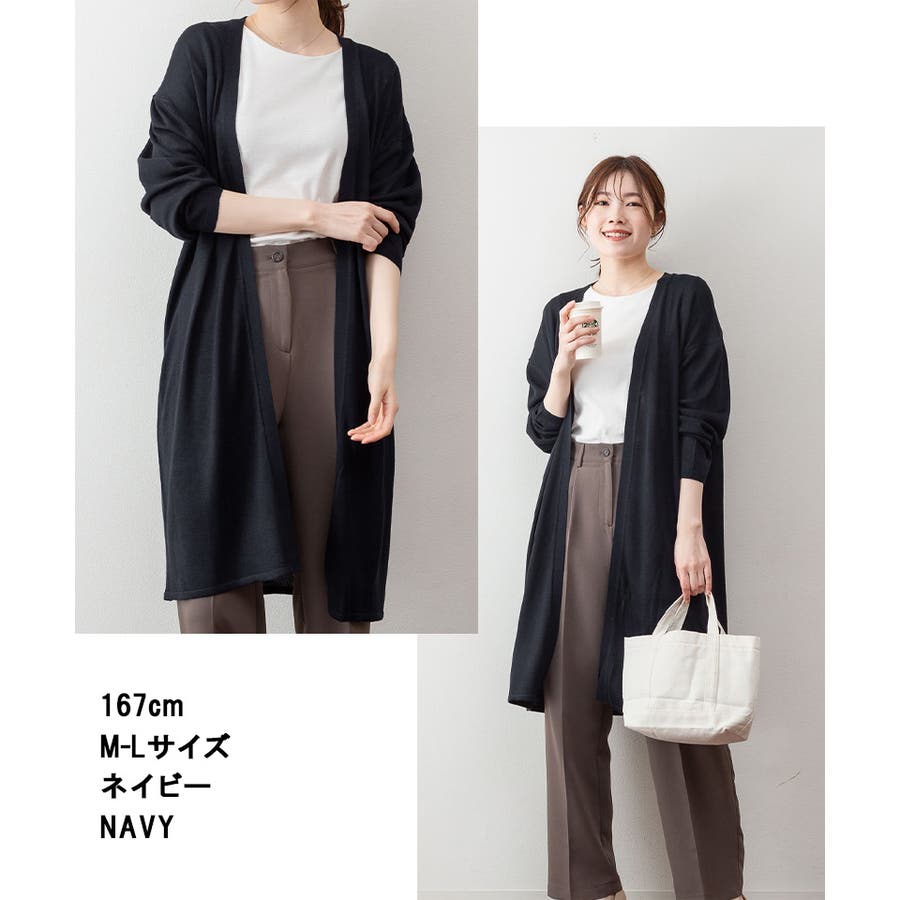 さらに、Vネックデザインが女性らしい印象を与え、ロング丈がスタイルアップ効果を発揮します。