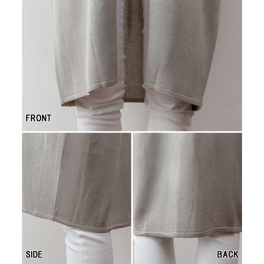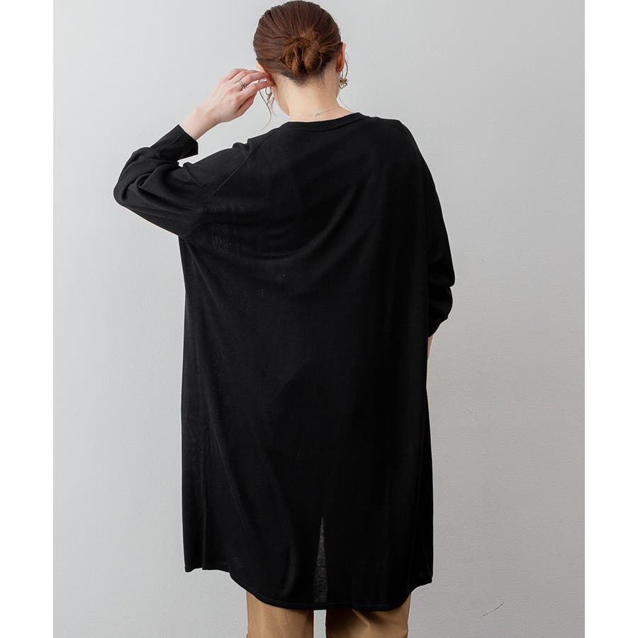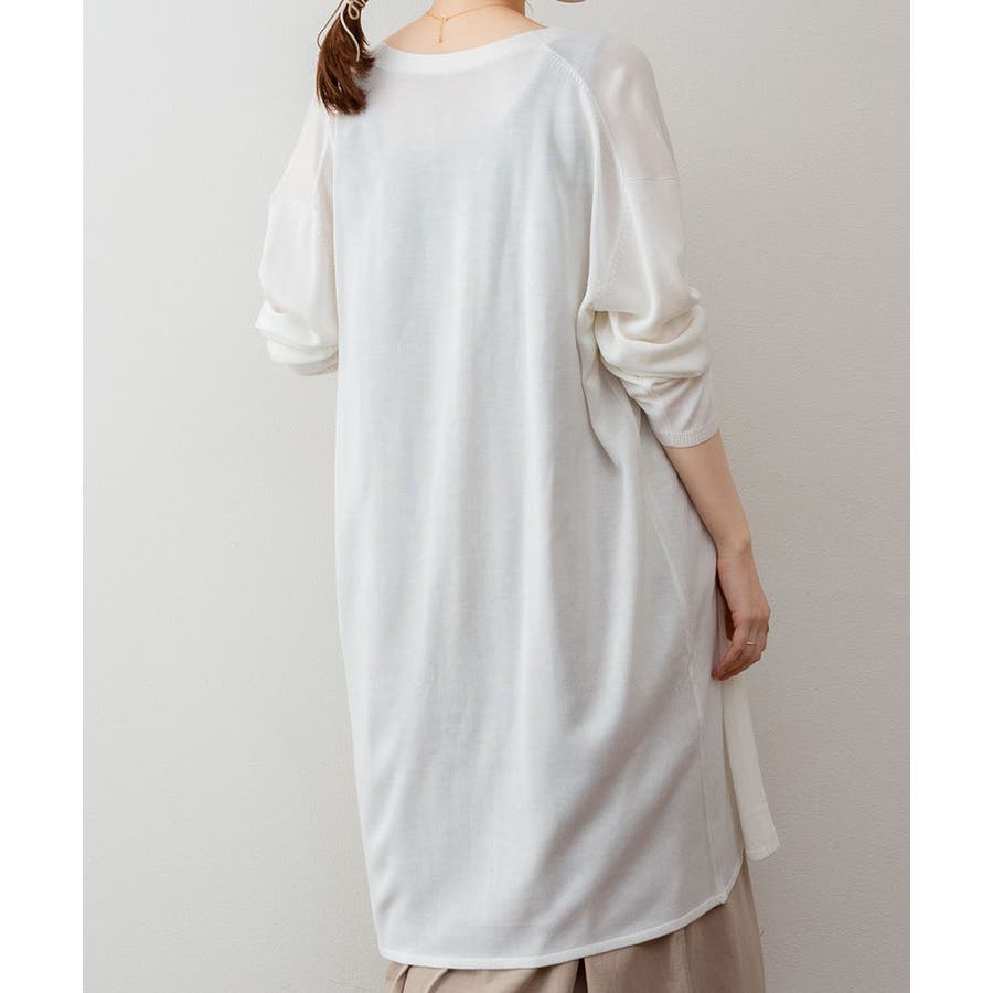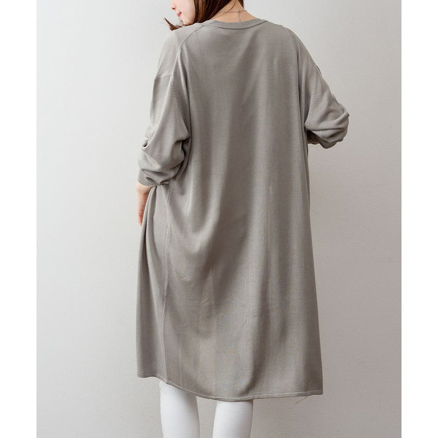 さらに、Vネックデザインが女性らしい印象を与え、ロング丈がスタイルアップ効果を発揮します。
