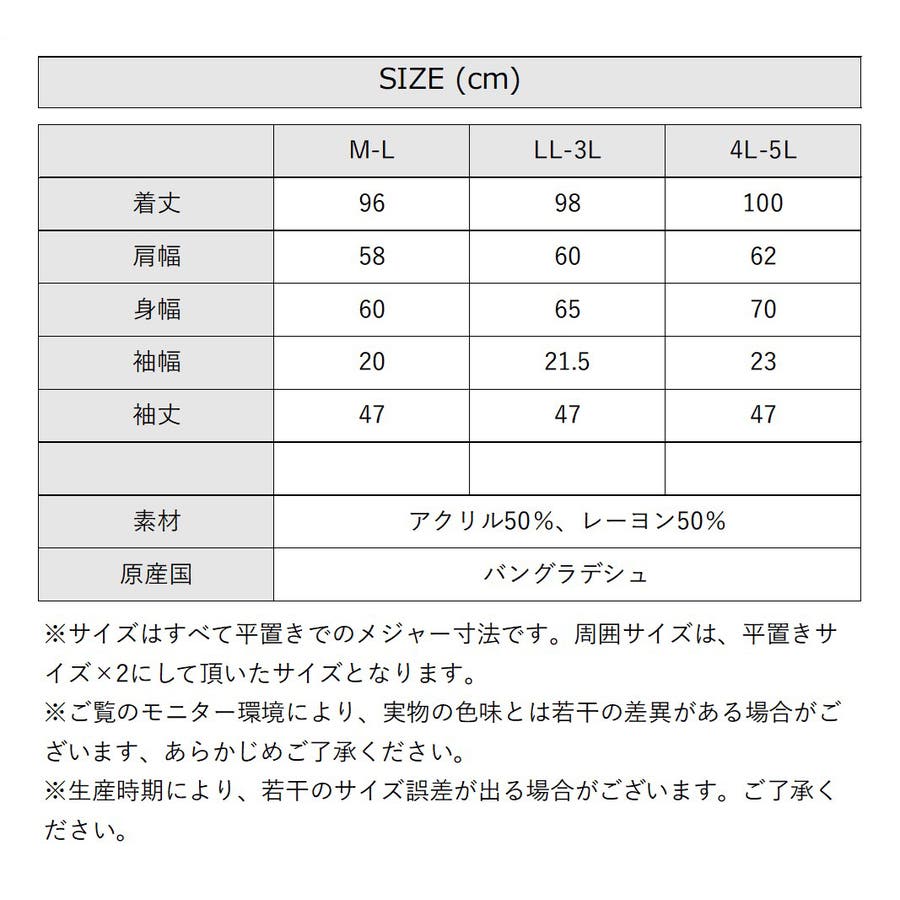 [LL-3Lサイズ]着丈98cm、肩幅60cm、身幅65cm、袖幅21.5cm、袖丈47cm