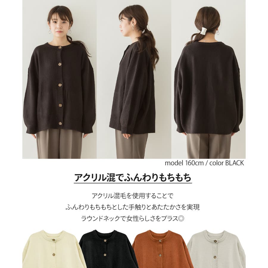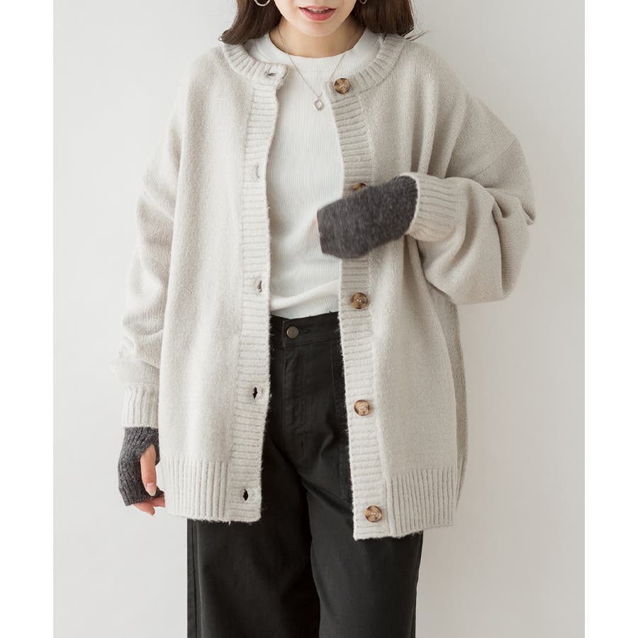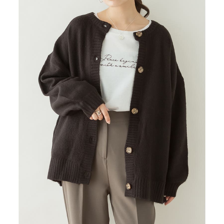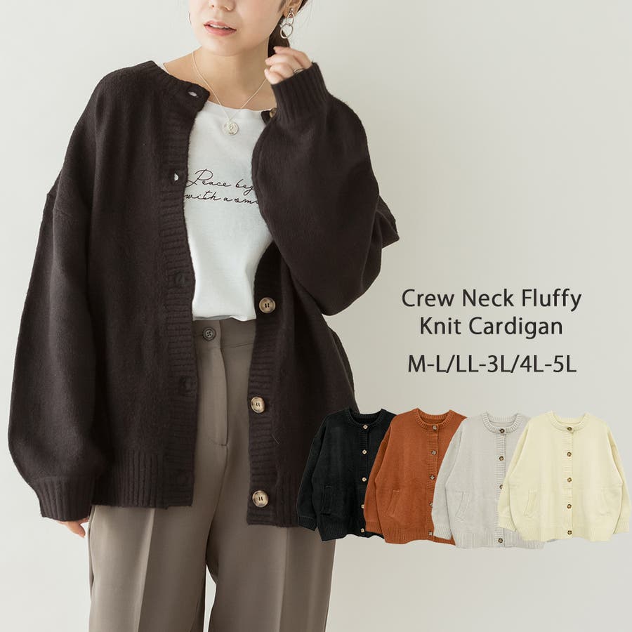 クルーネックふわふわニットカーディガン