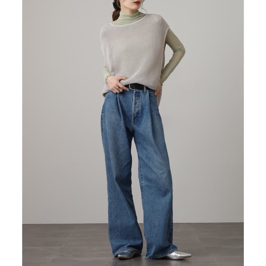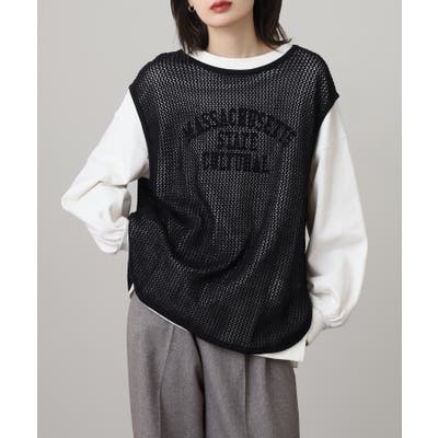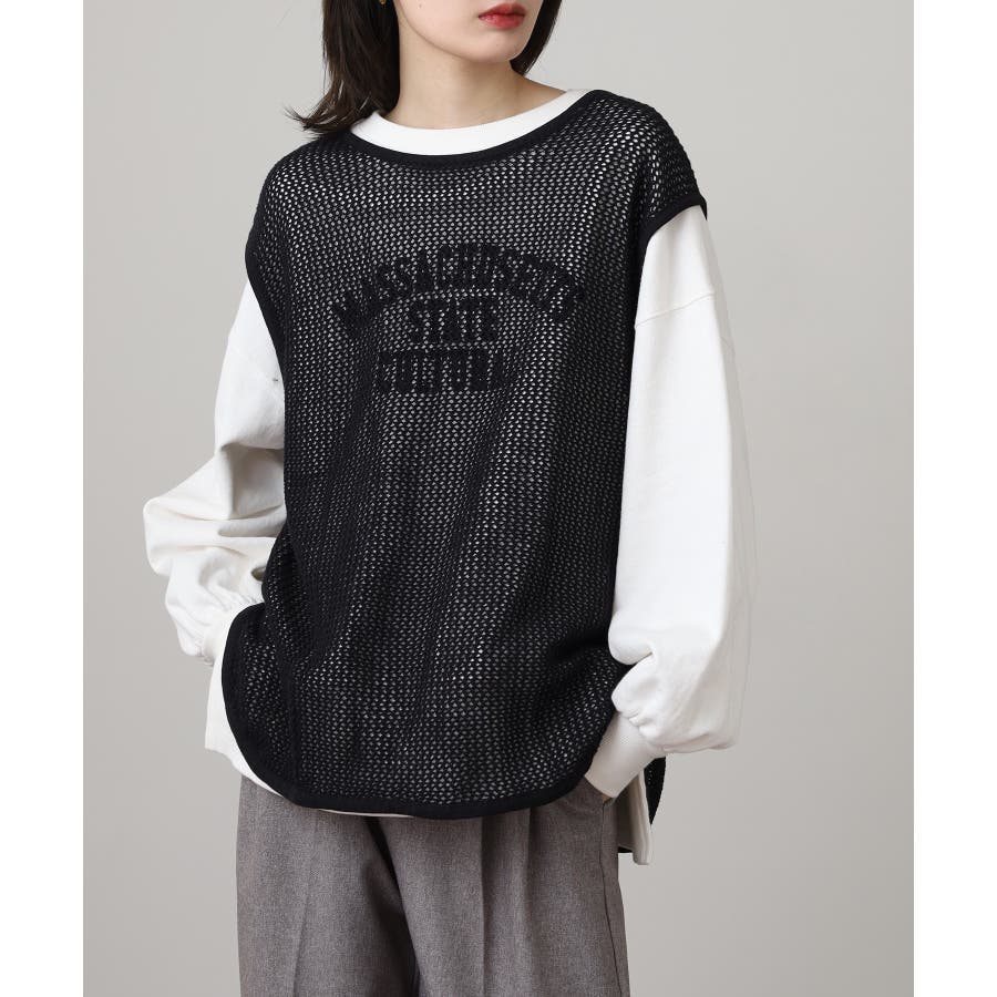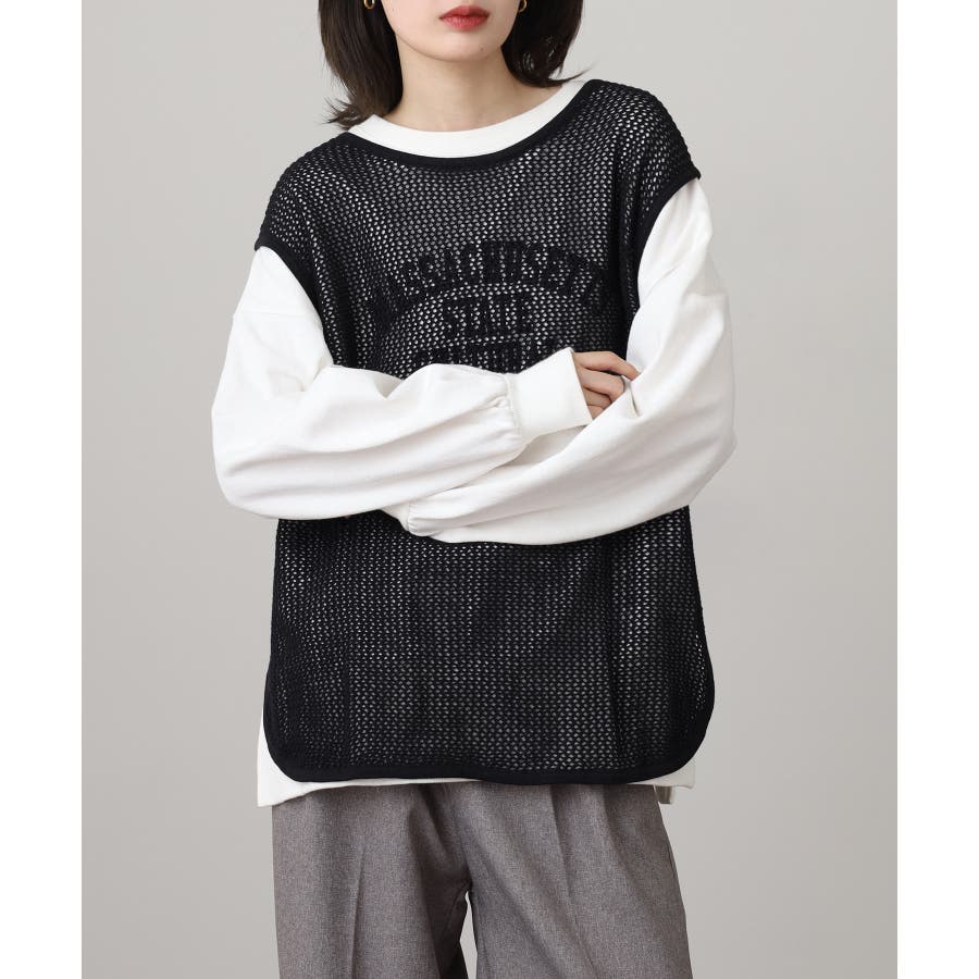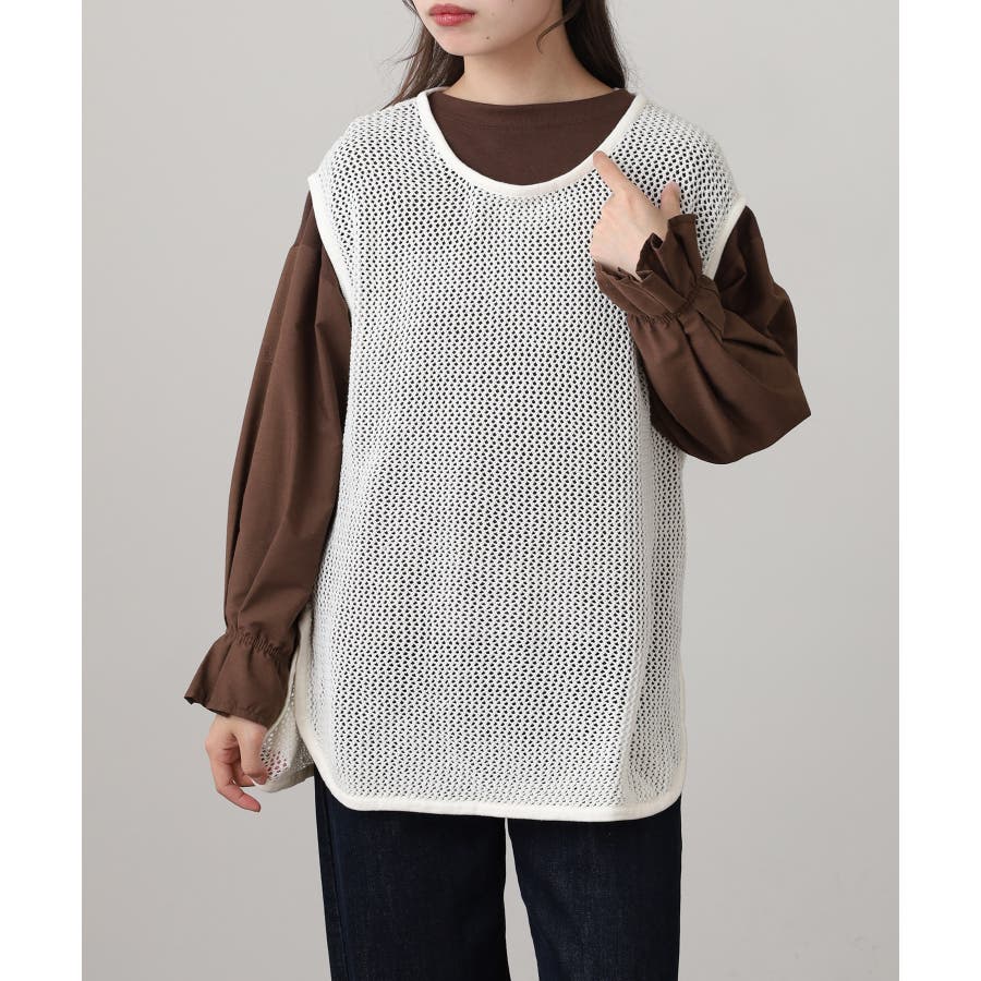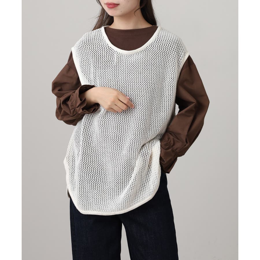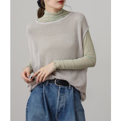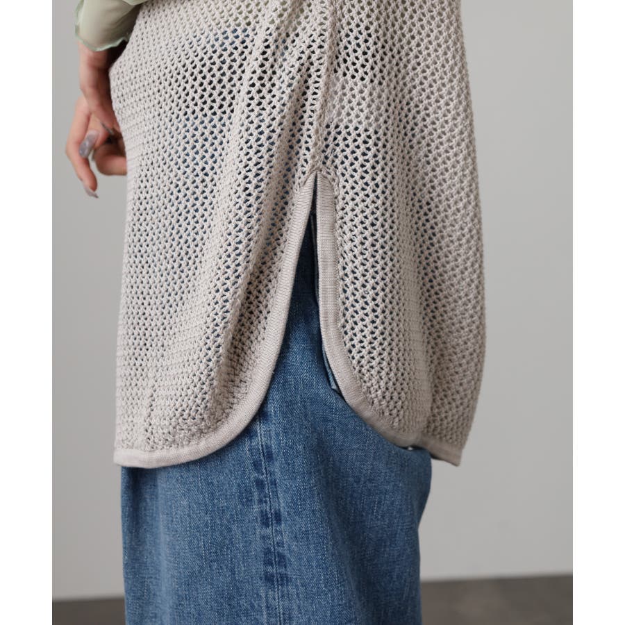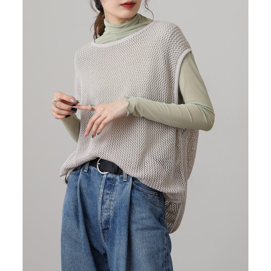 メッシュノースリーブニットトップス