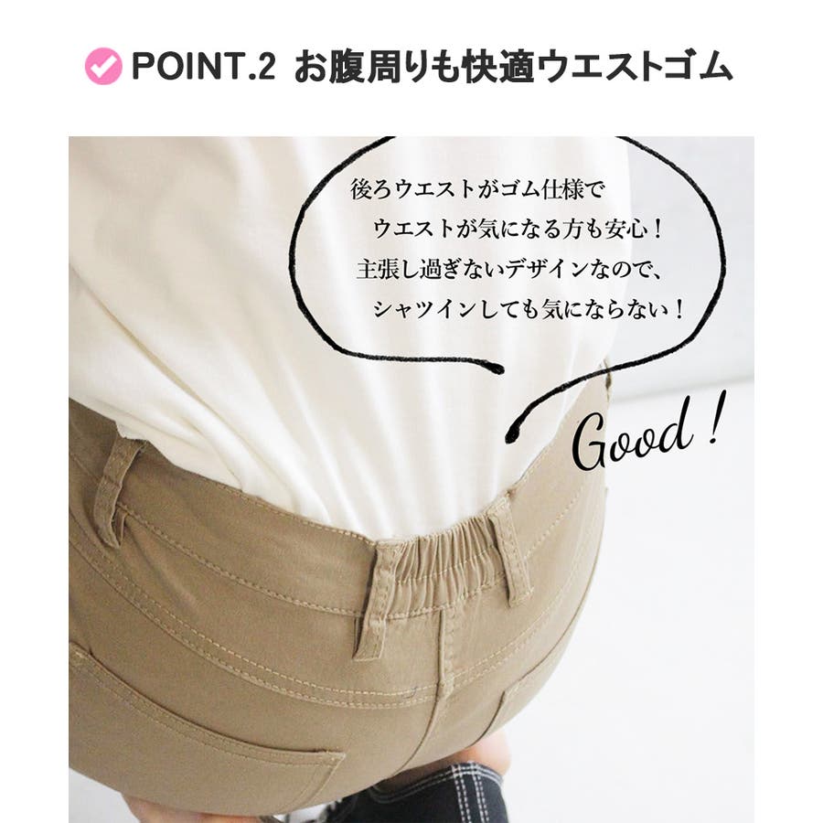 股上の長さ(ウエスト位置)やポケットの深さも程よく、後ろに少し作られたゴムが入ってるとわかるクシュッとした部分も、しゃがんだ時に開かず身体にフィットするのでGOODです♪