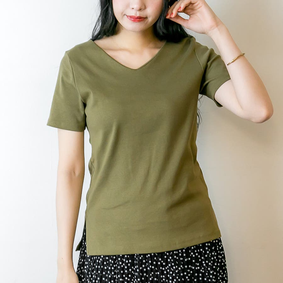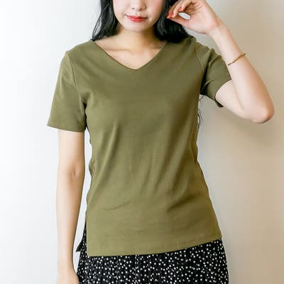 Vネック カーキ